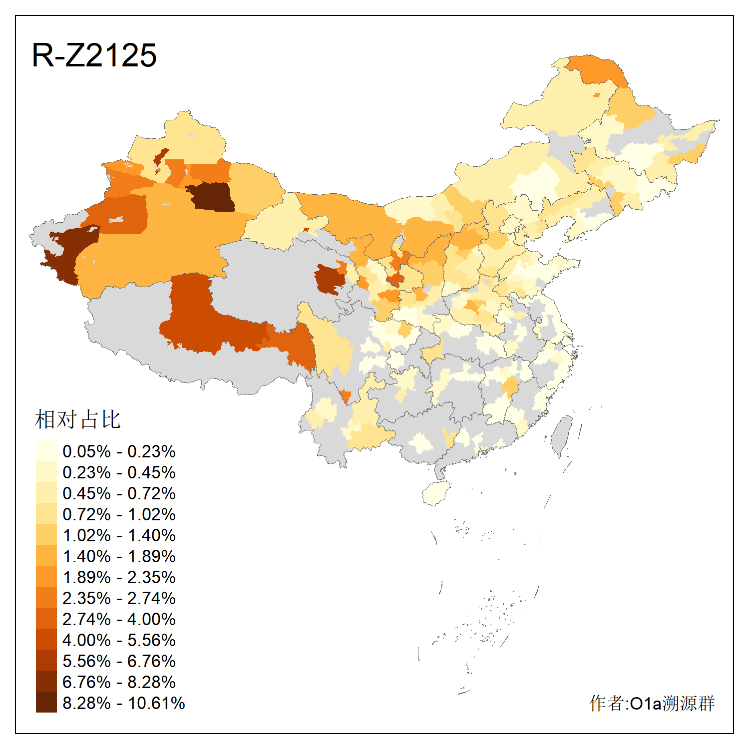 | R_R-Y482_R1_R1a_R-M459_R-M198_R-M417_R-PF6162_R-F992_R-F3105_R-Z2124_R-Z2125_R-Z2123 | 4090 | 0.435% | 767人(含下游)![]() | 594人(不含下游)![]() |