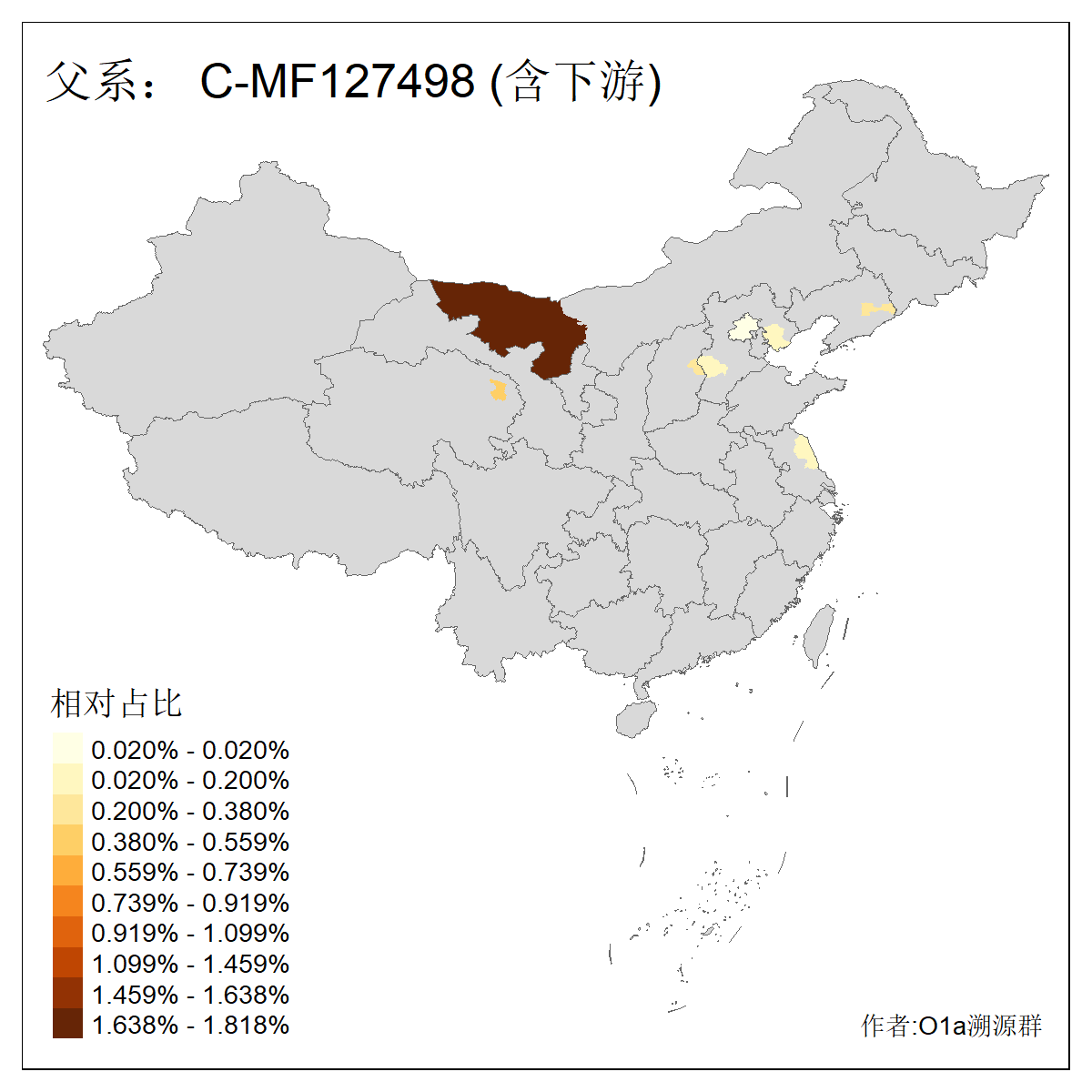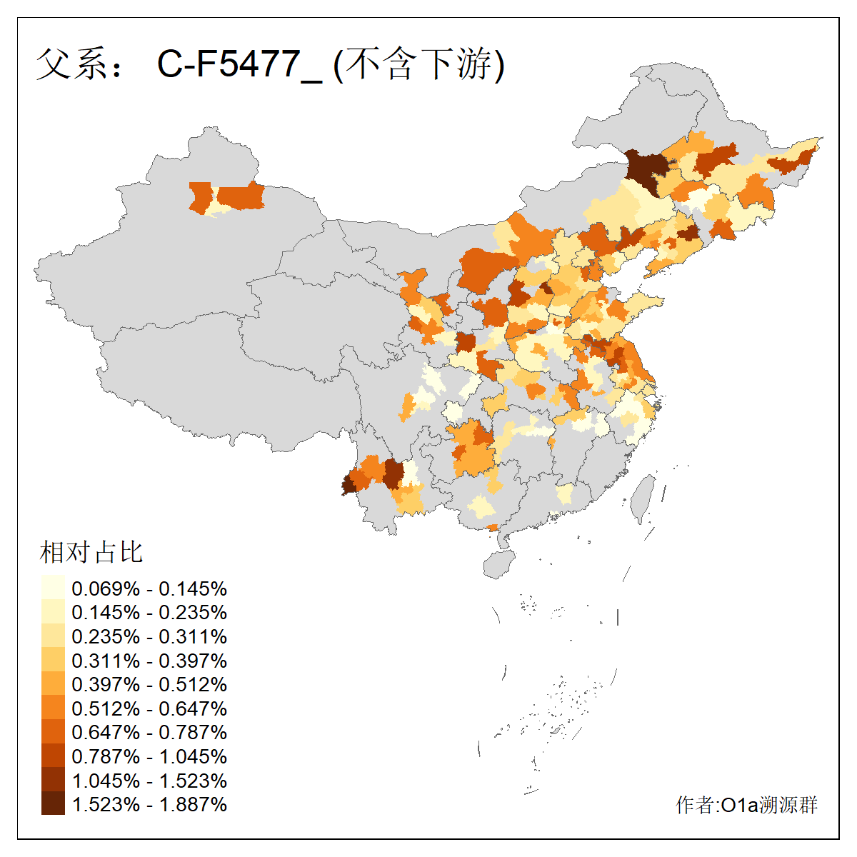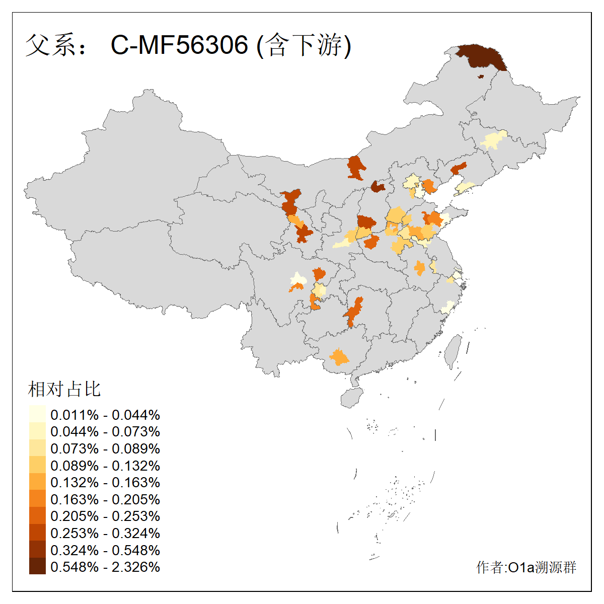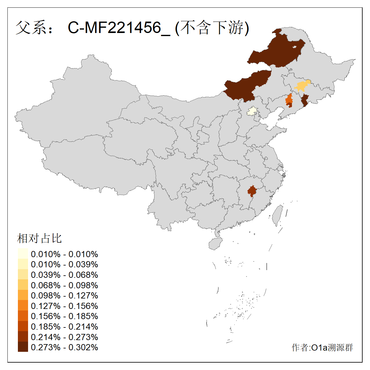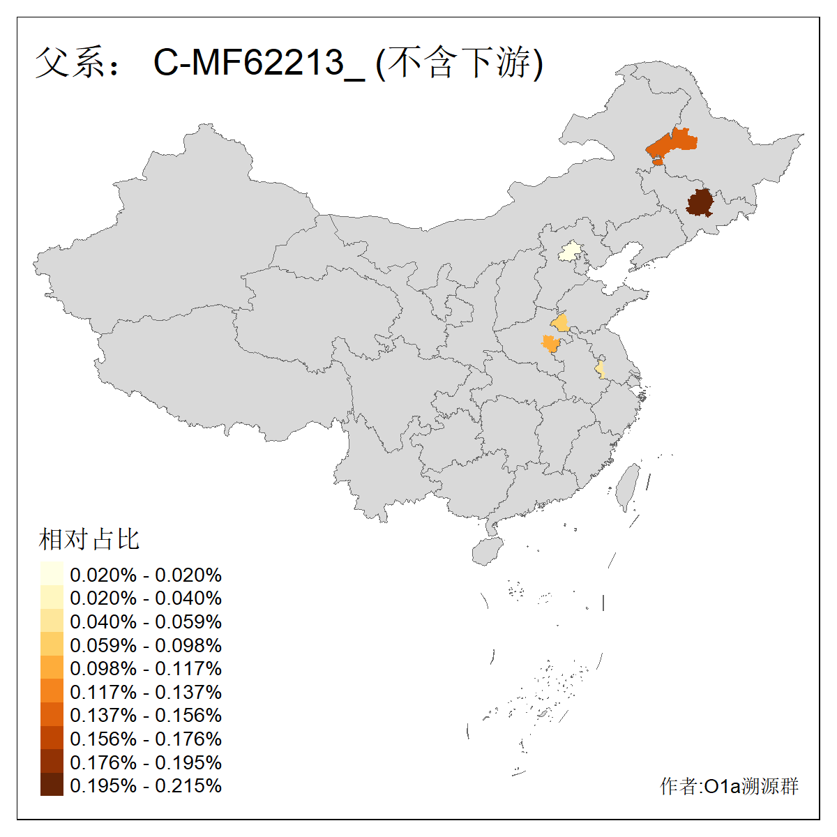 | C-M130_C-M217_C-L1373_C-F3447_C-F1699_C-Y6715_C-M504_C-Y4519 | 4040 | 0.332% | 711人(含下游) 赵:44 李:36 关:29 王:26 张:24 吴:20 阿:16 马:16 刘:14 白:14 艾:14 何:13 巴:12 哈:11 ![]() | 40人(不含下游) 赵:6 董:5 王:4 童:3 恒:2 白:2 佟:1 傅:1 呼:1 奥:1 崔:1 张:1 李:1 焦:1 ![]() |