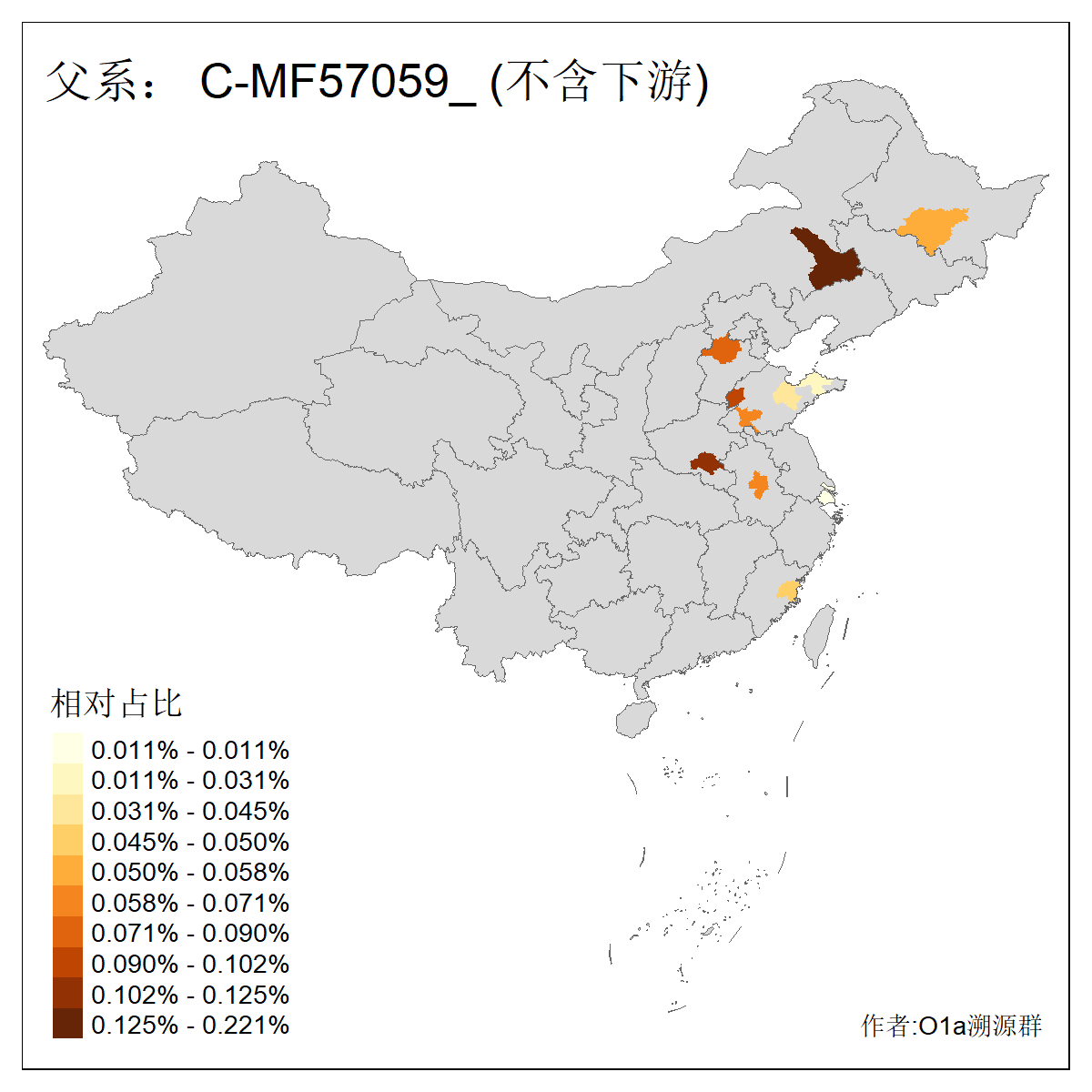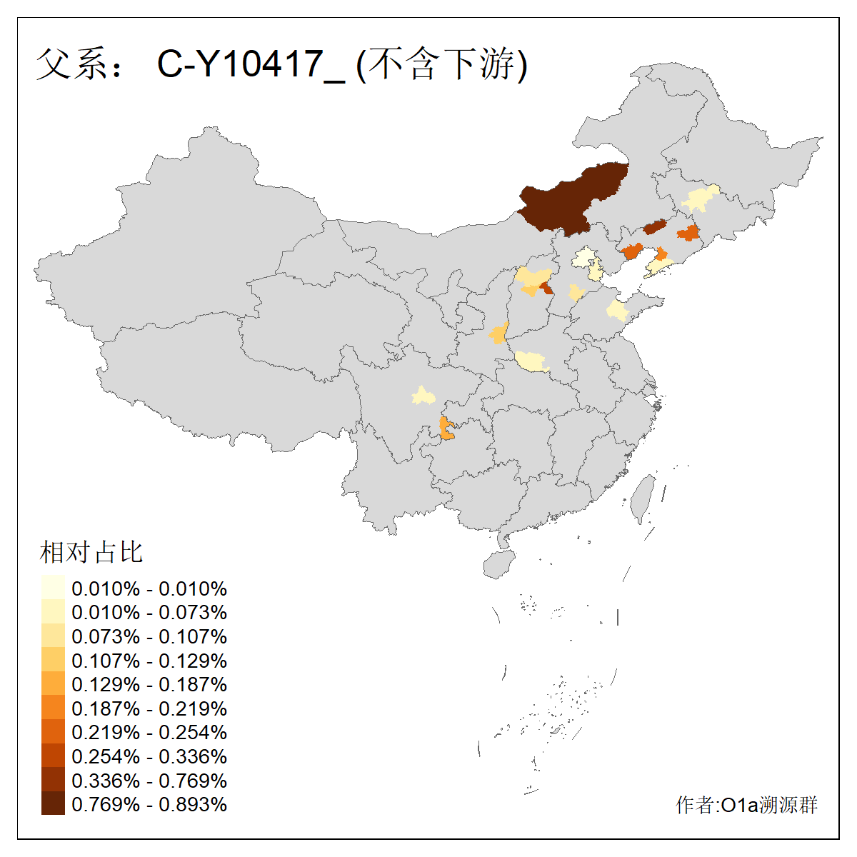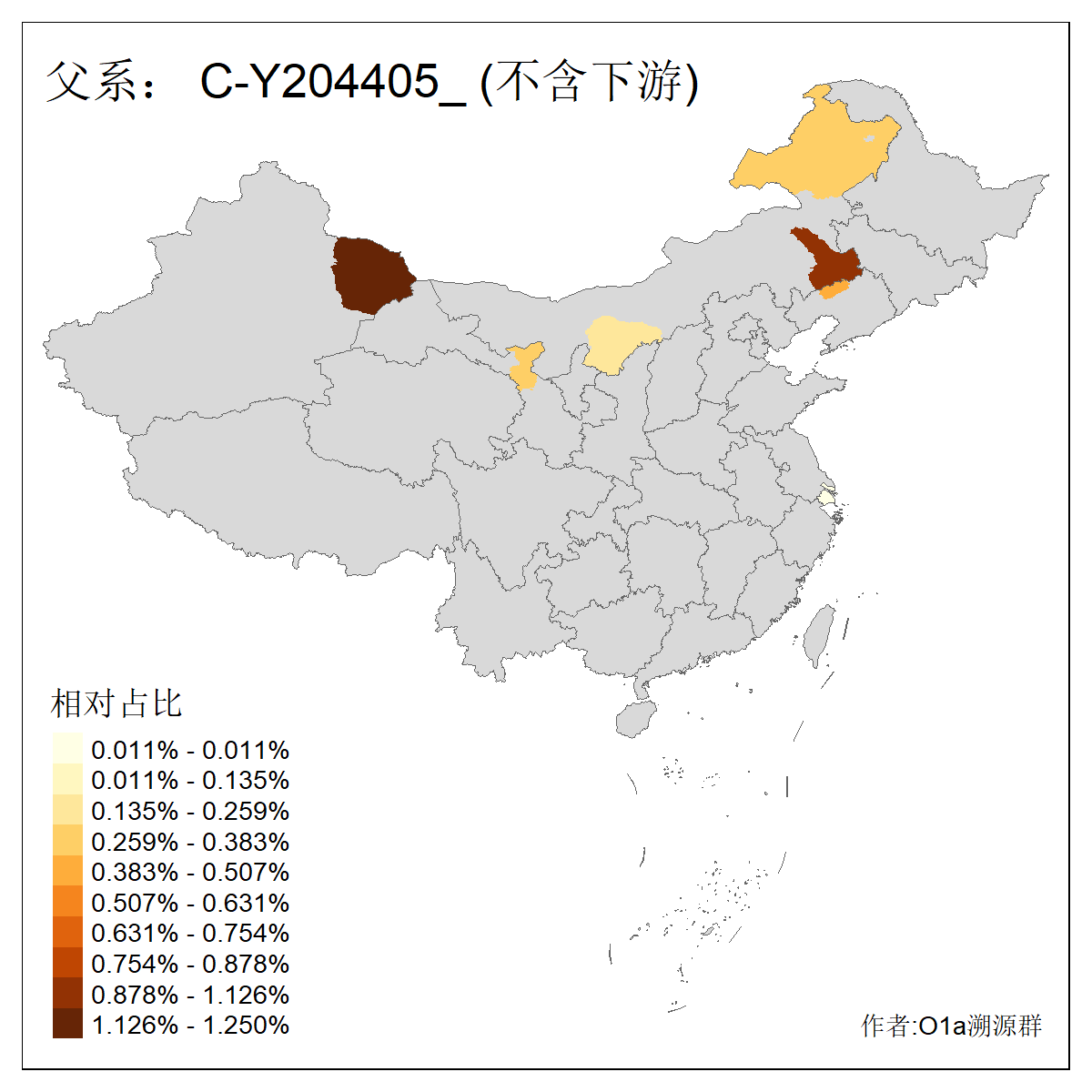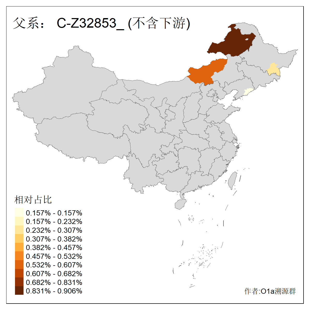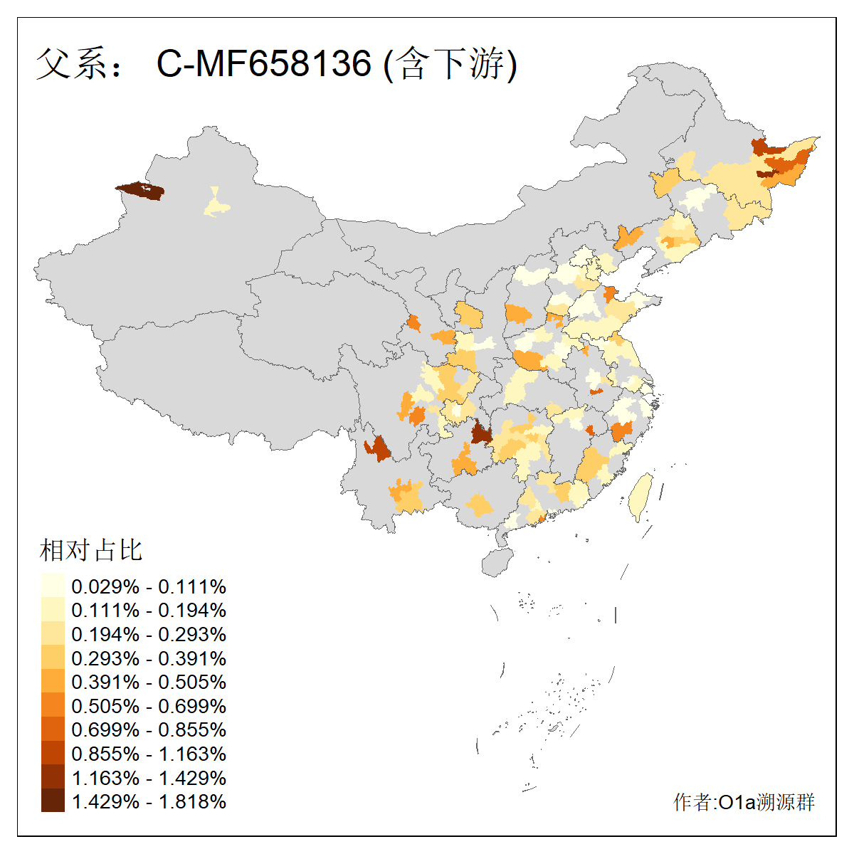 | C-M130_C-M217_C-L1373_C-F3447_C-F1699_C-Y6715_C-M504_C-Y4519 | 4040 | 0.332% | 711人(含下游) 赵:44 李:36 关:29 王:26 张:24 吴:20 阿:16 马:16 刘:14 白:14 艾:14 何:13 巴:12 哈:11 ![]() | 40人(不含下游) 赵:6 董:5 王:4 童:3 恒:2 白:2 佟:1 傅:1 呼:1 奥:1 崔:1 张:1 李:1 焦:1 ![]() |