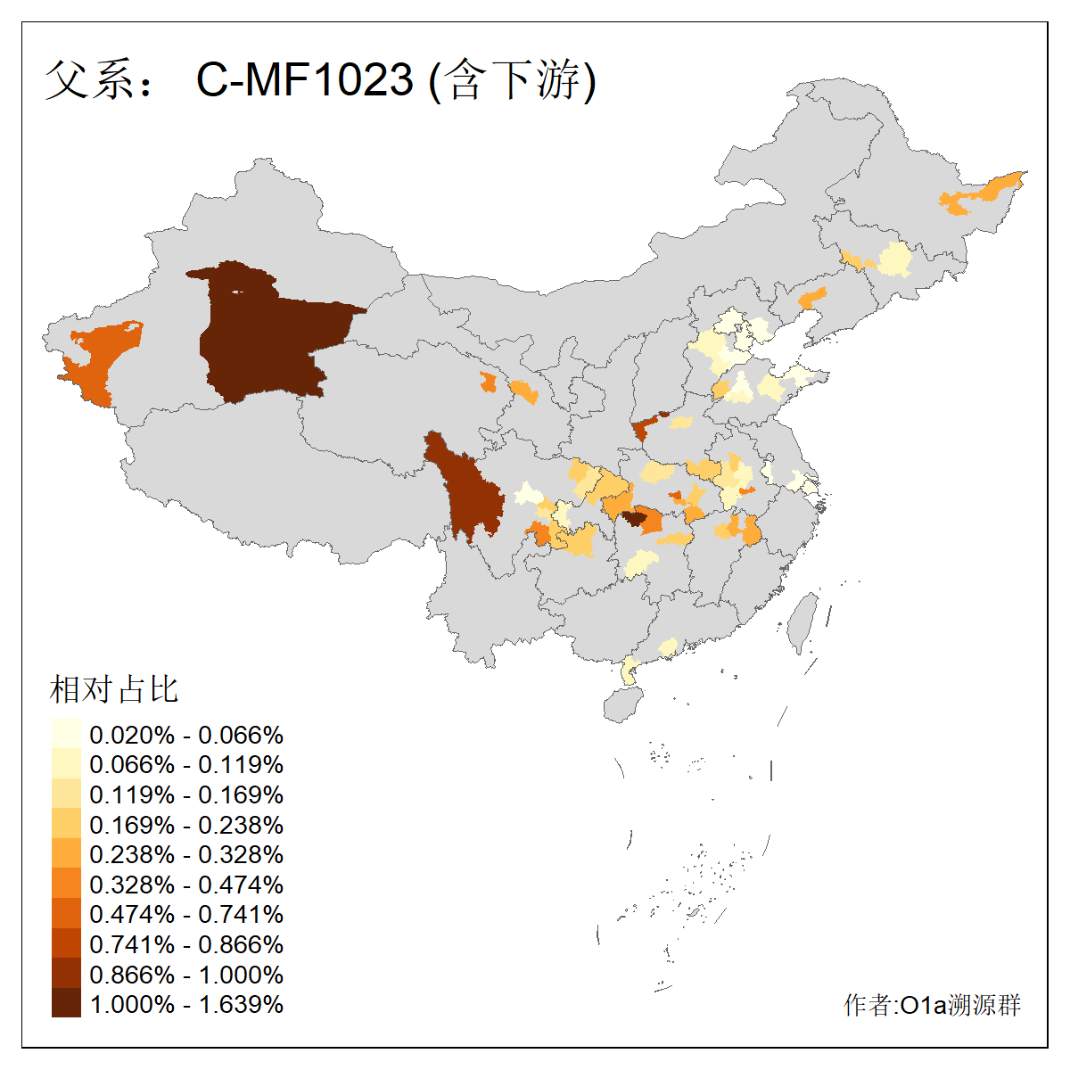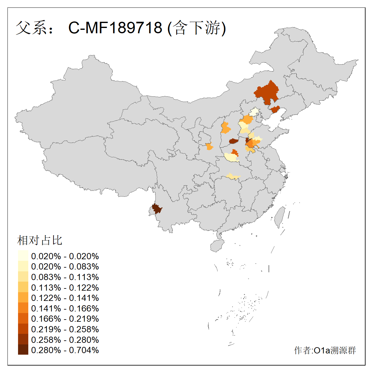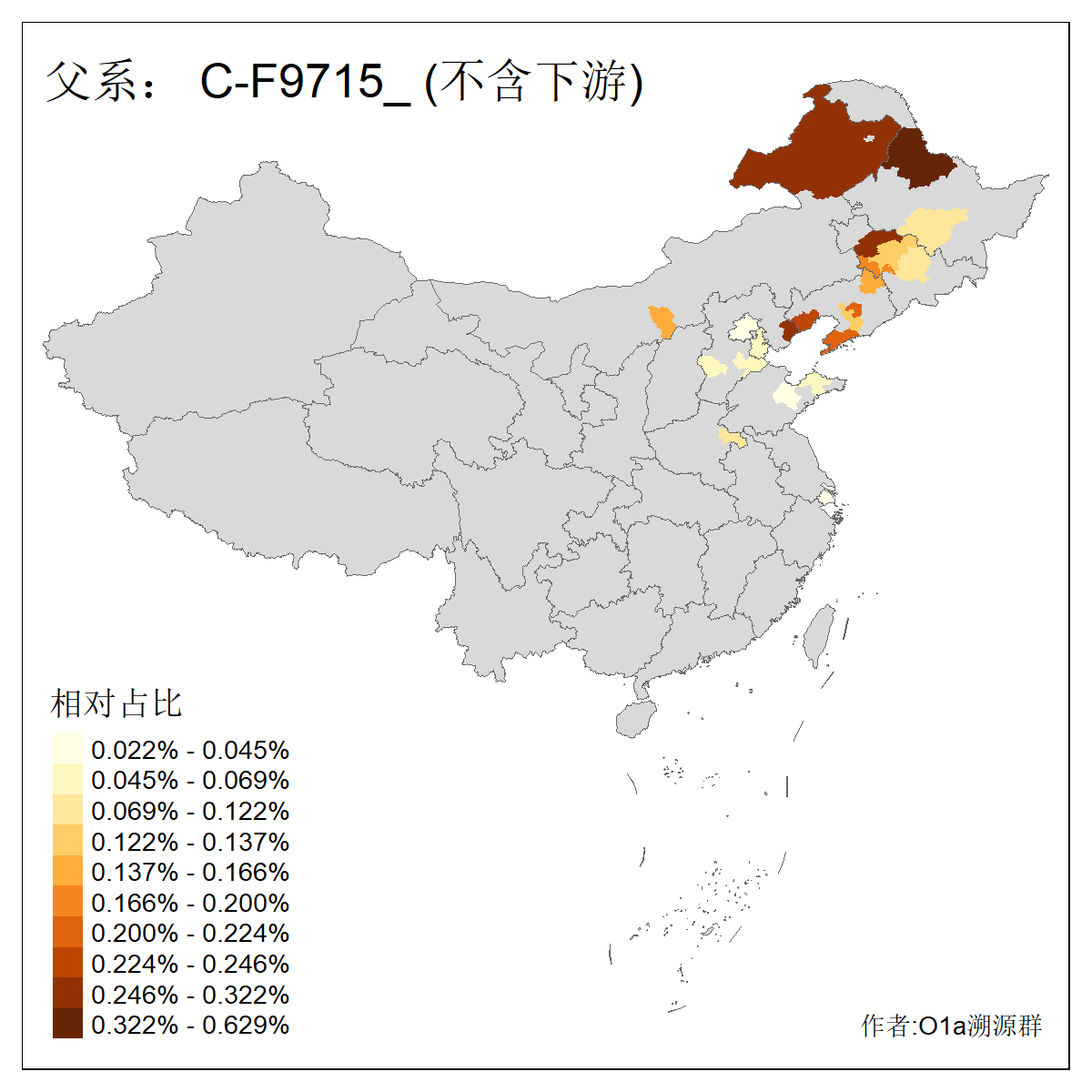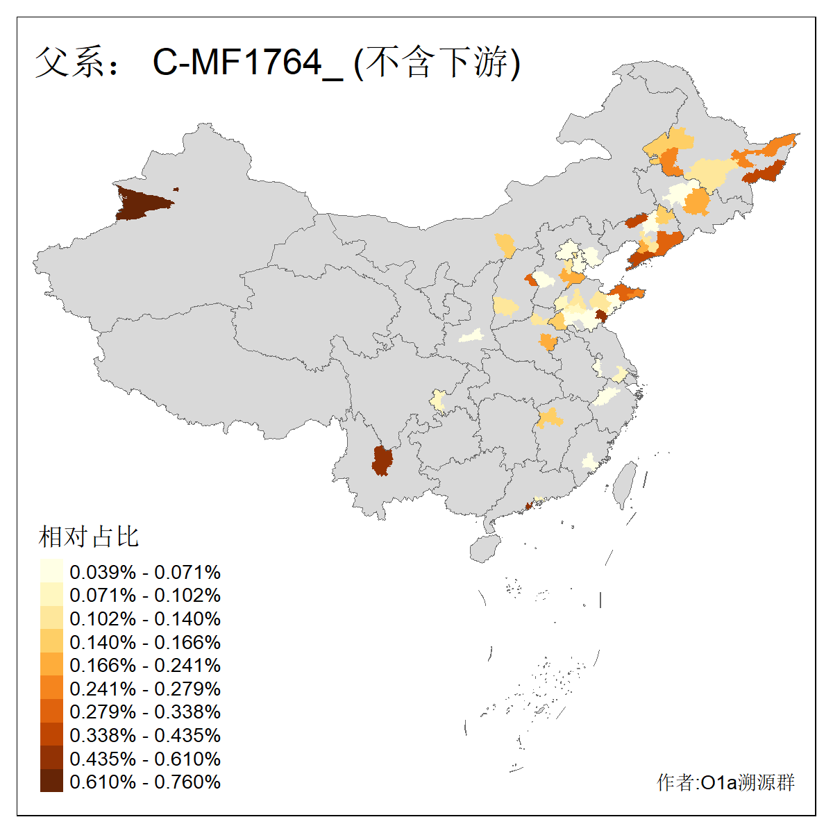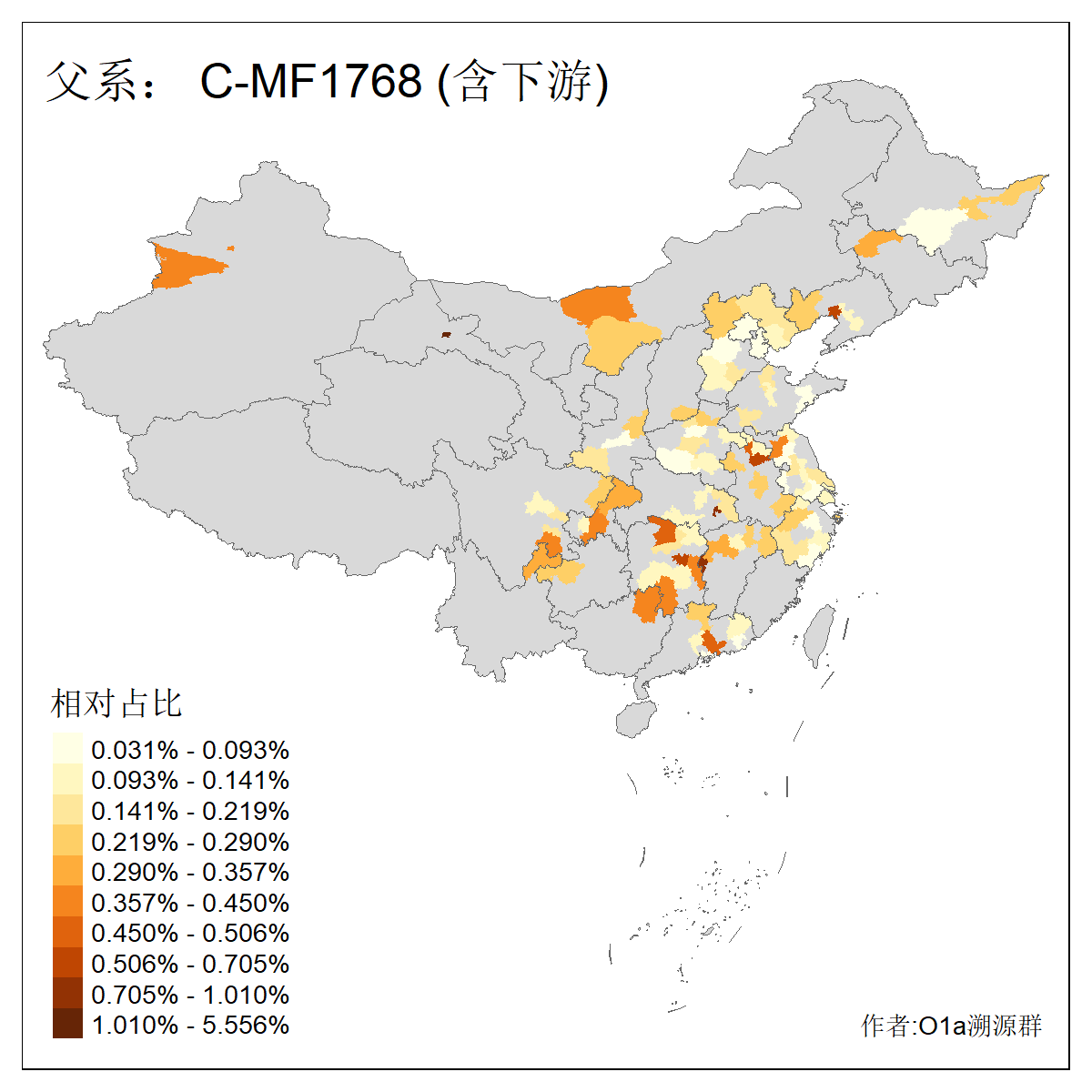 | C-M130_C-M217_C-L1373_C-F3447_C-F1699_C-Y6715_C-M504_C-Y4519 | 4040 | 0.332% | 711人(含下游) 赵:44 李:36 关:29 王:26 张:24 吴:20 阿:16 马:16 刘:14 白:14 艾:14 何:13 巴:12 哈:11 ![]() | 40人(不含下游) 赵:6 董:5 王:4 童:3 恒:2 白:2 佟:1 傅:1 呼:1 奥:1 崔:1 张:1 李:1 焦:1 ![]() |