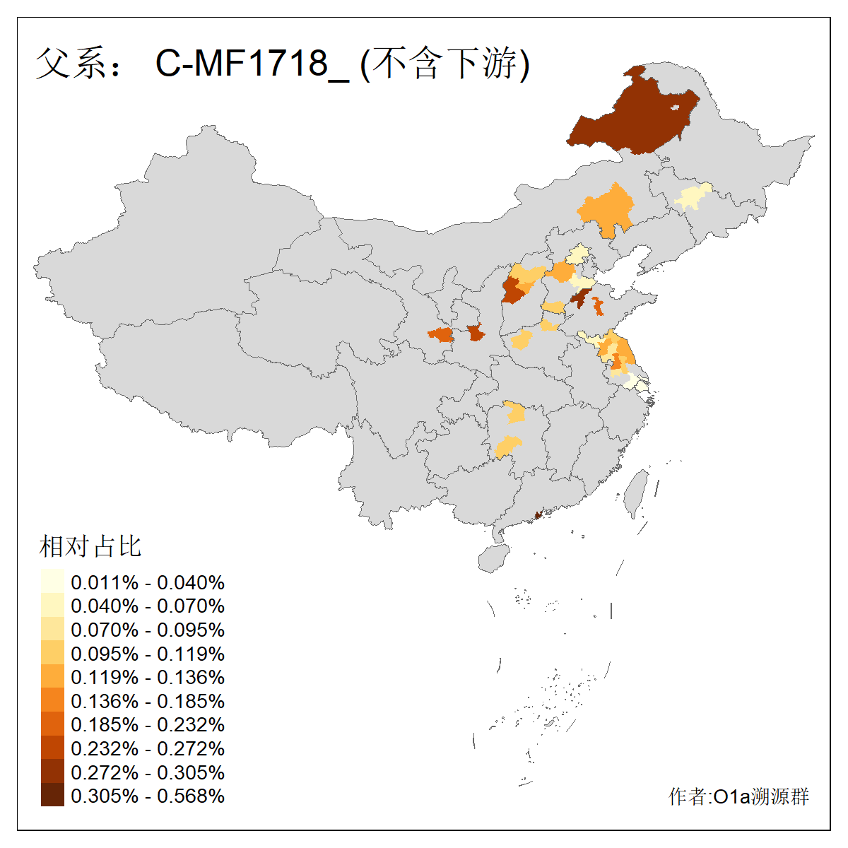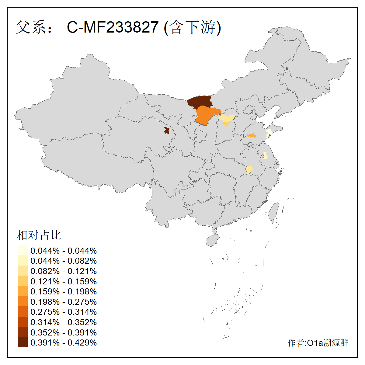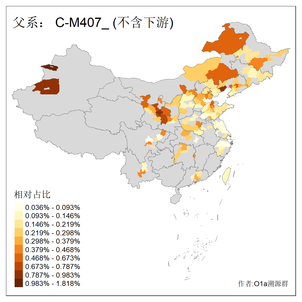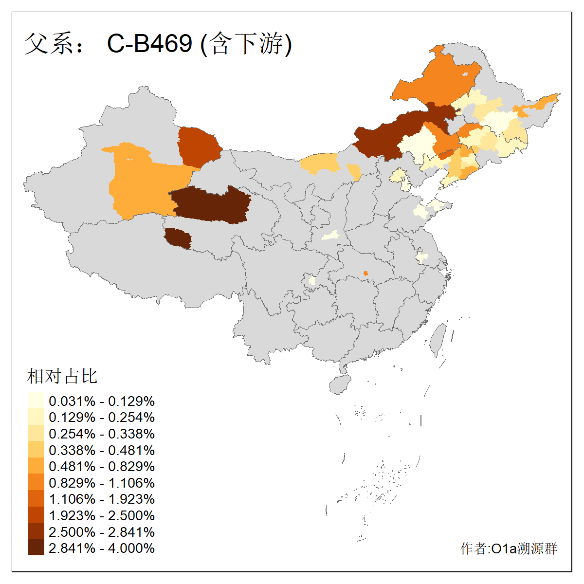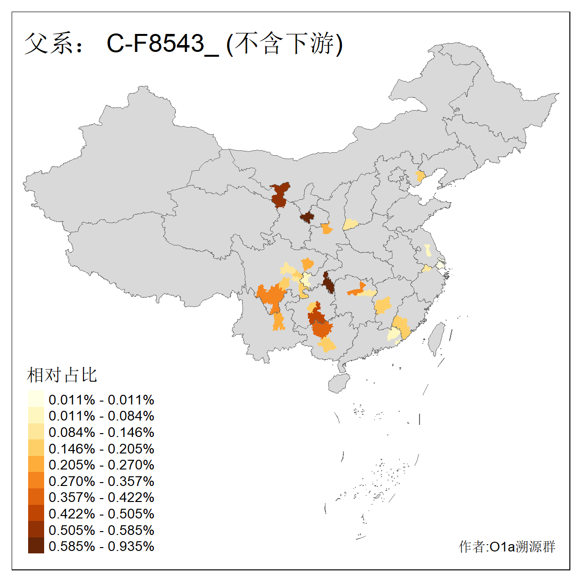 | C-M130_C-M217_C-L1373_C-F3447_C-F1699_C-Y6715_C-M504_C-Y4519 | 4040 | 0.332% | 711人(含下游) 赵:44 李:36 关:29 王:26 张:24 吴:20 阿:16 马:16 刘:14 白:14 艾:14 何:13 巴:12 哈:11 ![]() | 40人(不含下游) 赵:6 董:5 王:4 童:3 恒:2 白:2 佟:1 傅:1 呼:1 奥:1 崔:1 张:1 李:1 焦:1 ![]() |