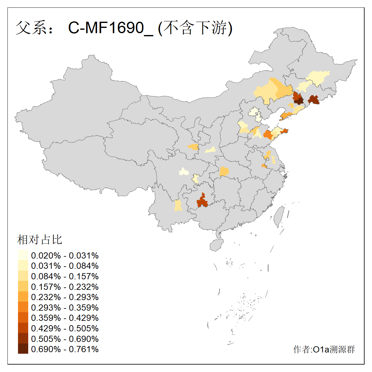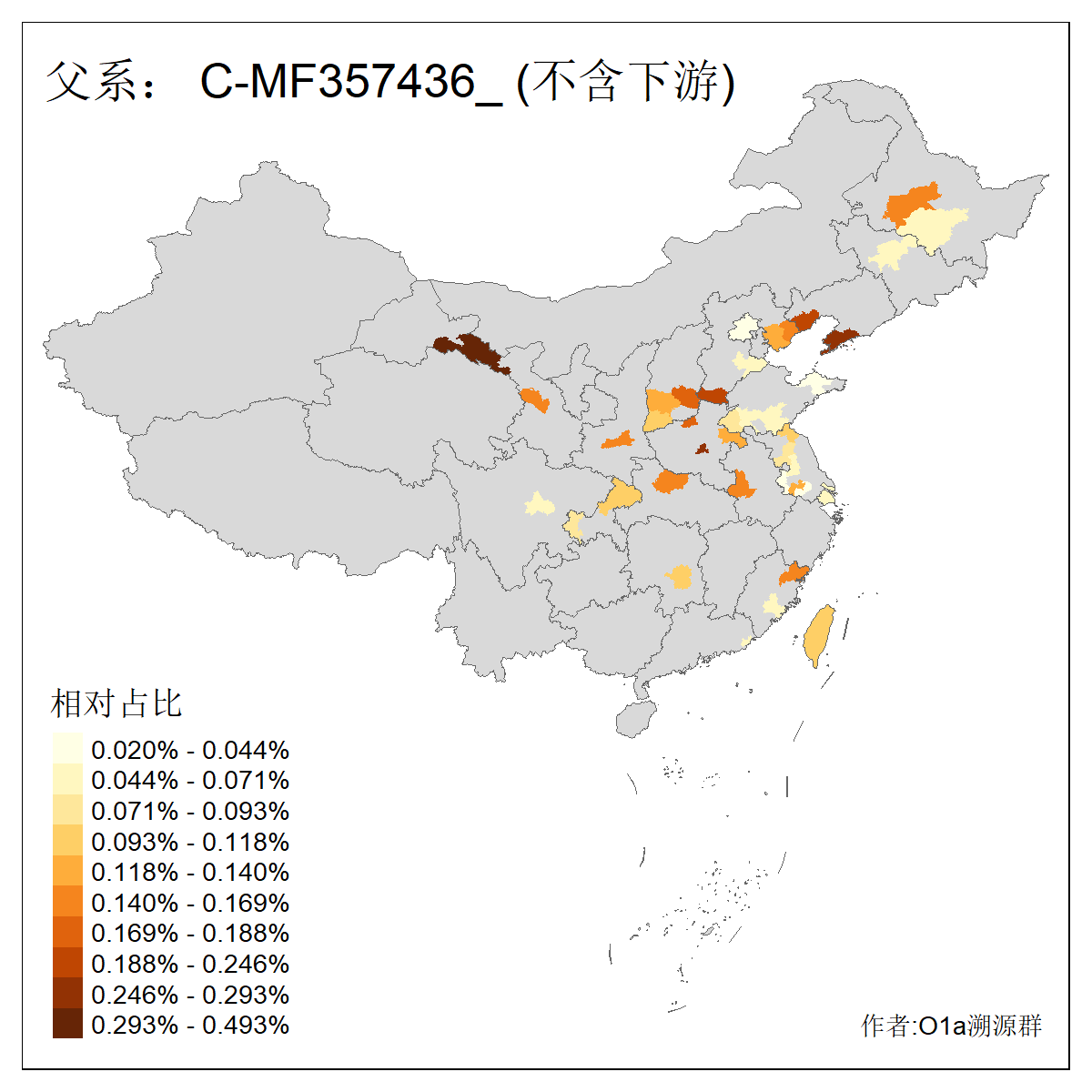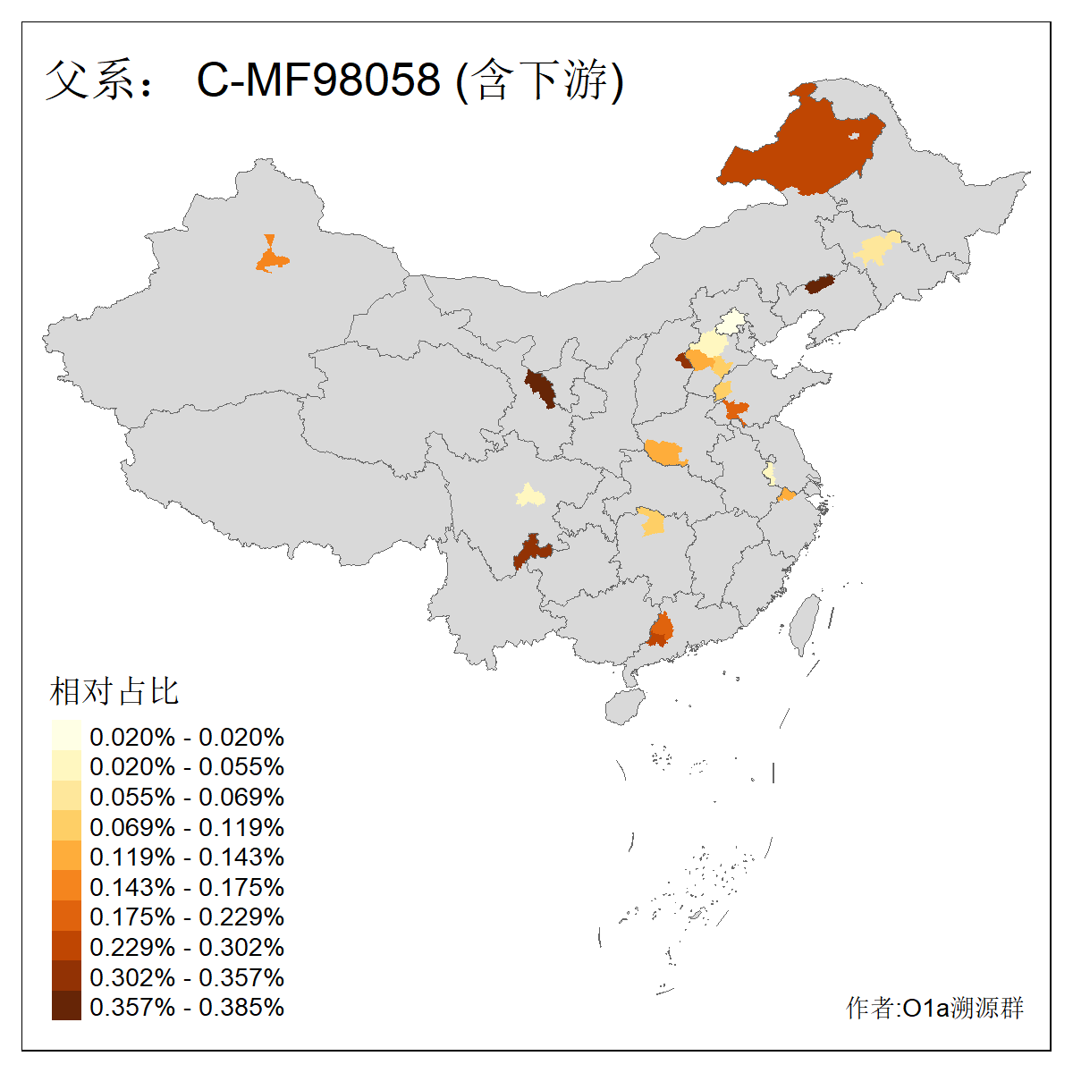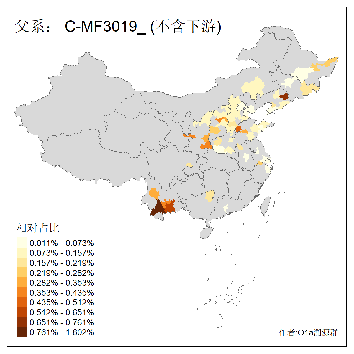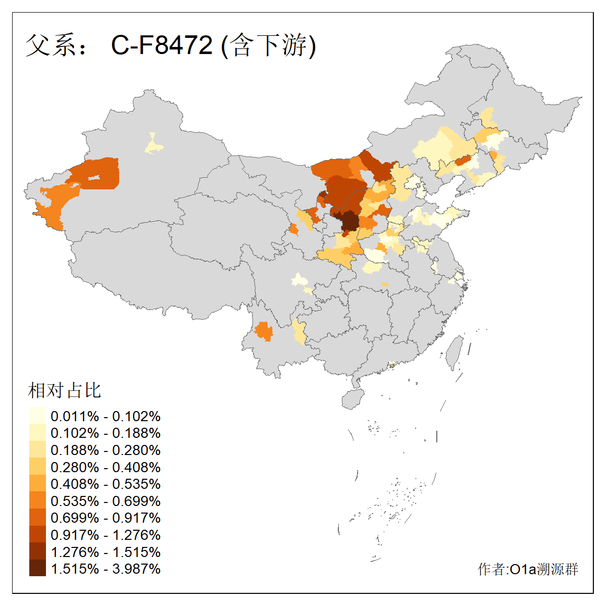 | C-M130_C-M217_C-L1373_C-F3447_C-F1699_C-Y6715_C-M504_C-Y4519 | 4040 | 0.332% | 711人(含下游) 赵:44 李:36 关:29 王:26 张:24 吴:20 阿:16 马:16 刘:14 白:14 艾:14 何:13 巴:12 哈:11 ![]() | 40人(不含下游) 赵:6 董:5 王:4 童:3 恒:2 白:2 佟:1 傅:1 呼:1 奥:1 崔:1 张:1 李:1 焦:1 ![]() |