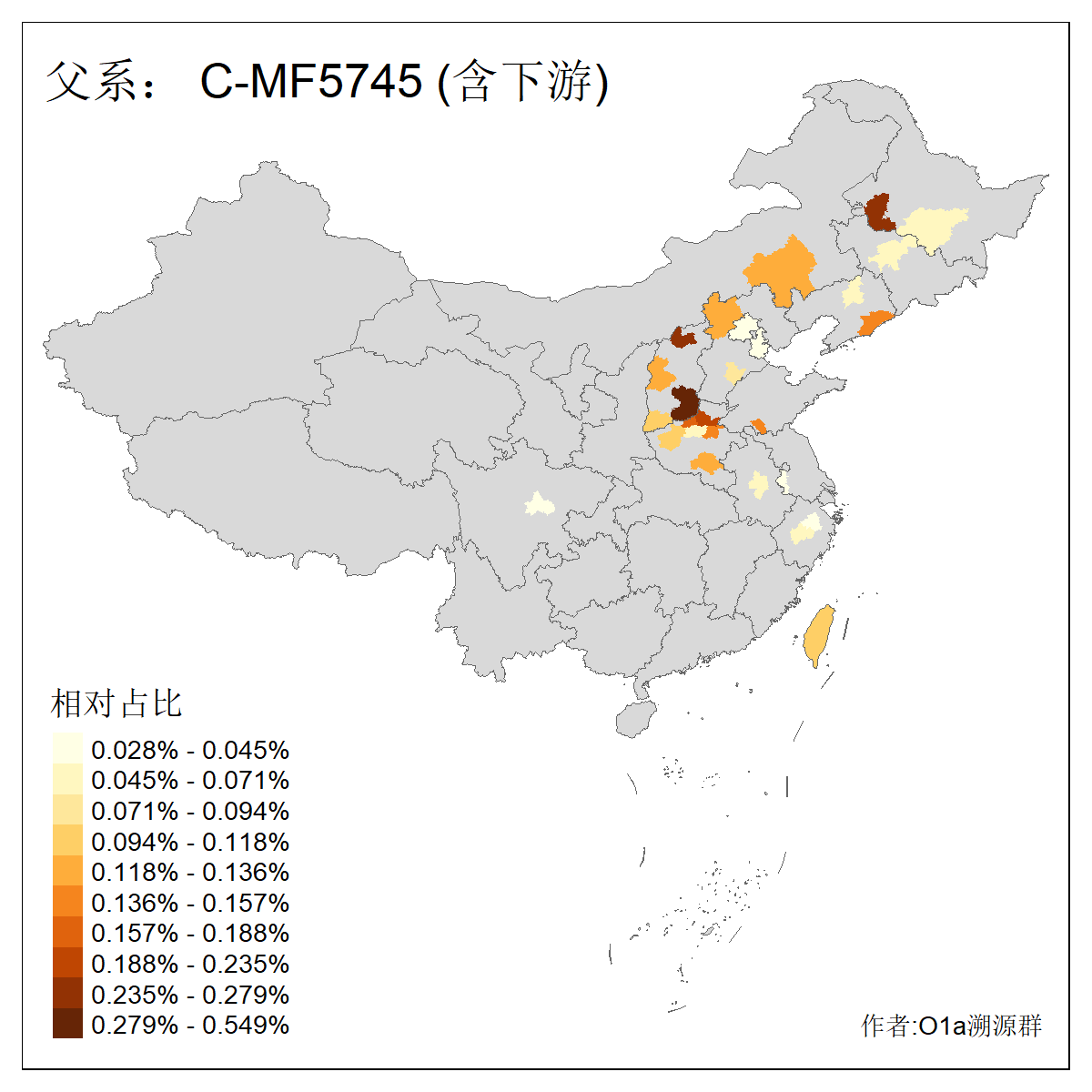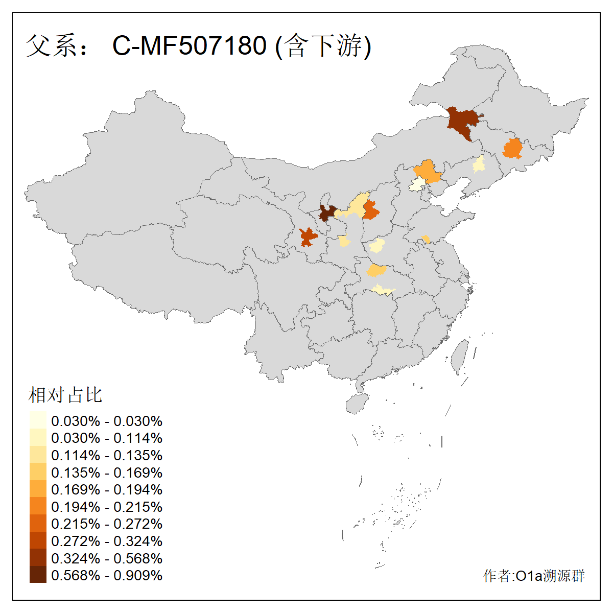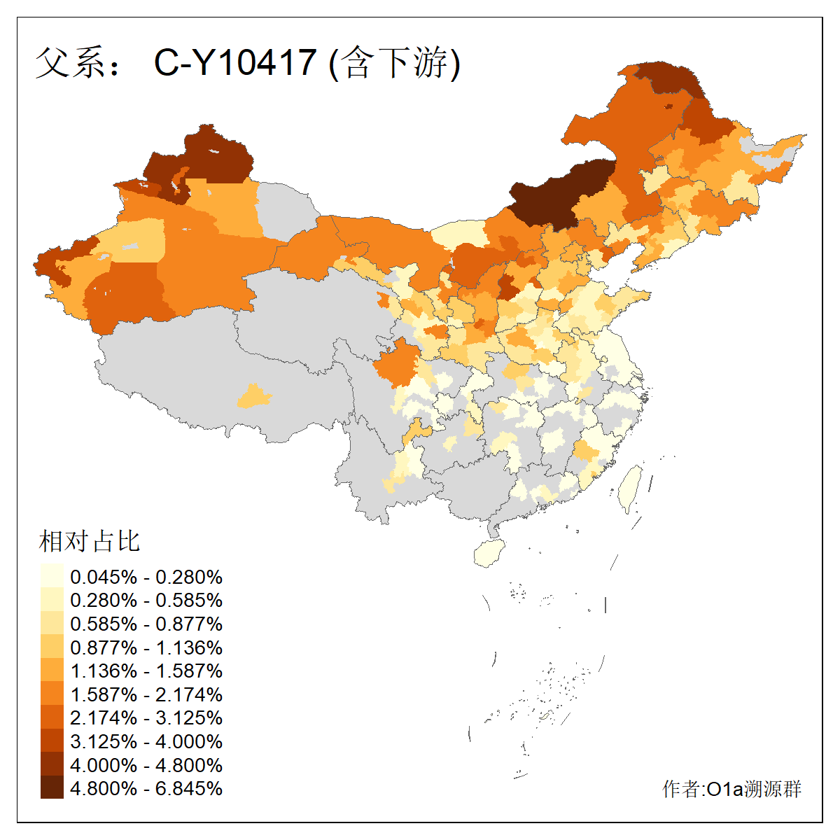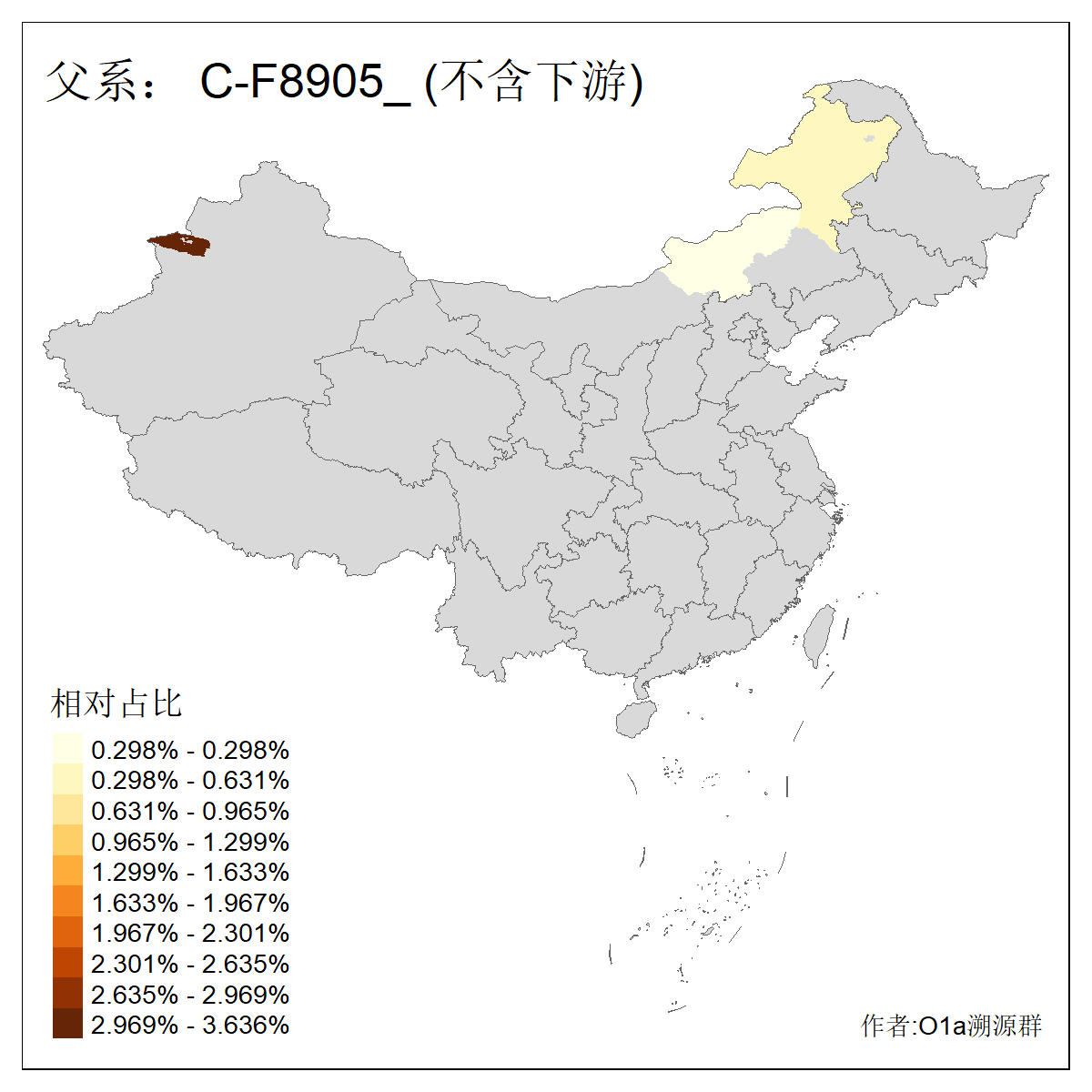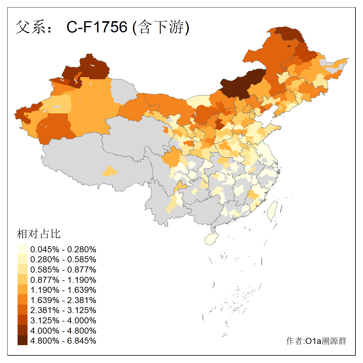 | C-M130_C-M217_C-L1373_C-F3447_C-F1699_C-Y6715_C-M504_C-Y4519 | 4040 | 0.332% | 711人(含下游) 赵:44 李:36 关:29 王:26 张:24 吴:20 阿:16 马:16 刘:14 白:14 艾:14 何:13 巴:12 哈:11 ![]() | 40人(不含下游) 赵:6 董:5 王:4 童:3 恒:2 白:2 佟:1 傅:1 呼:1 奥:1 崔:1 张:1 李:1 焦:1 ![]() |