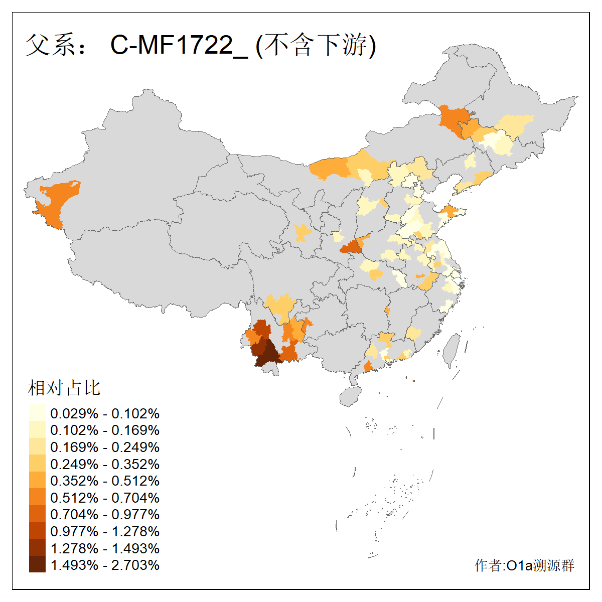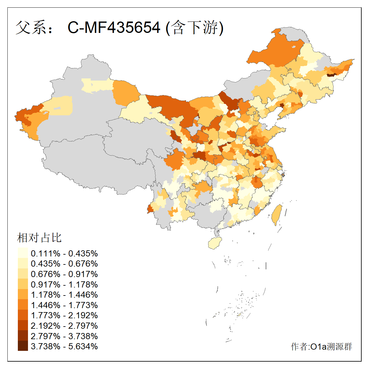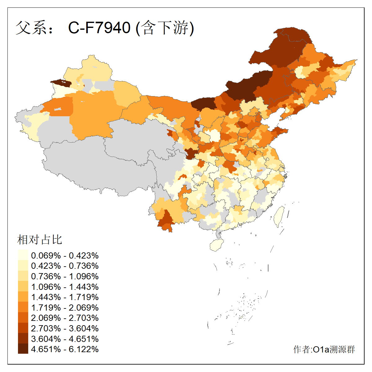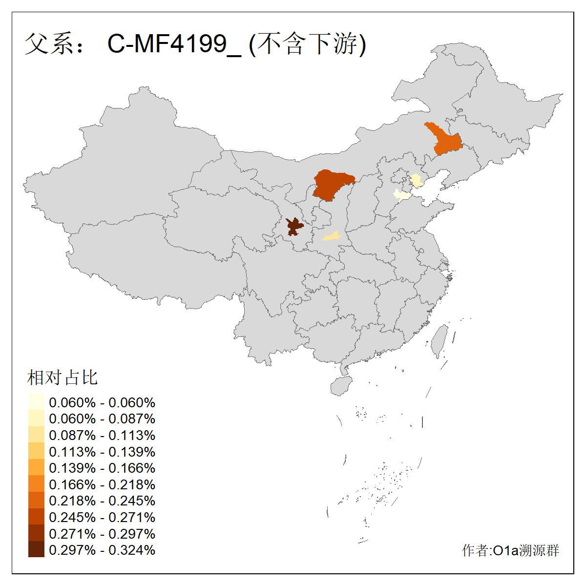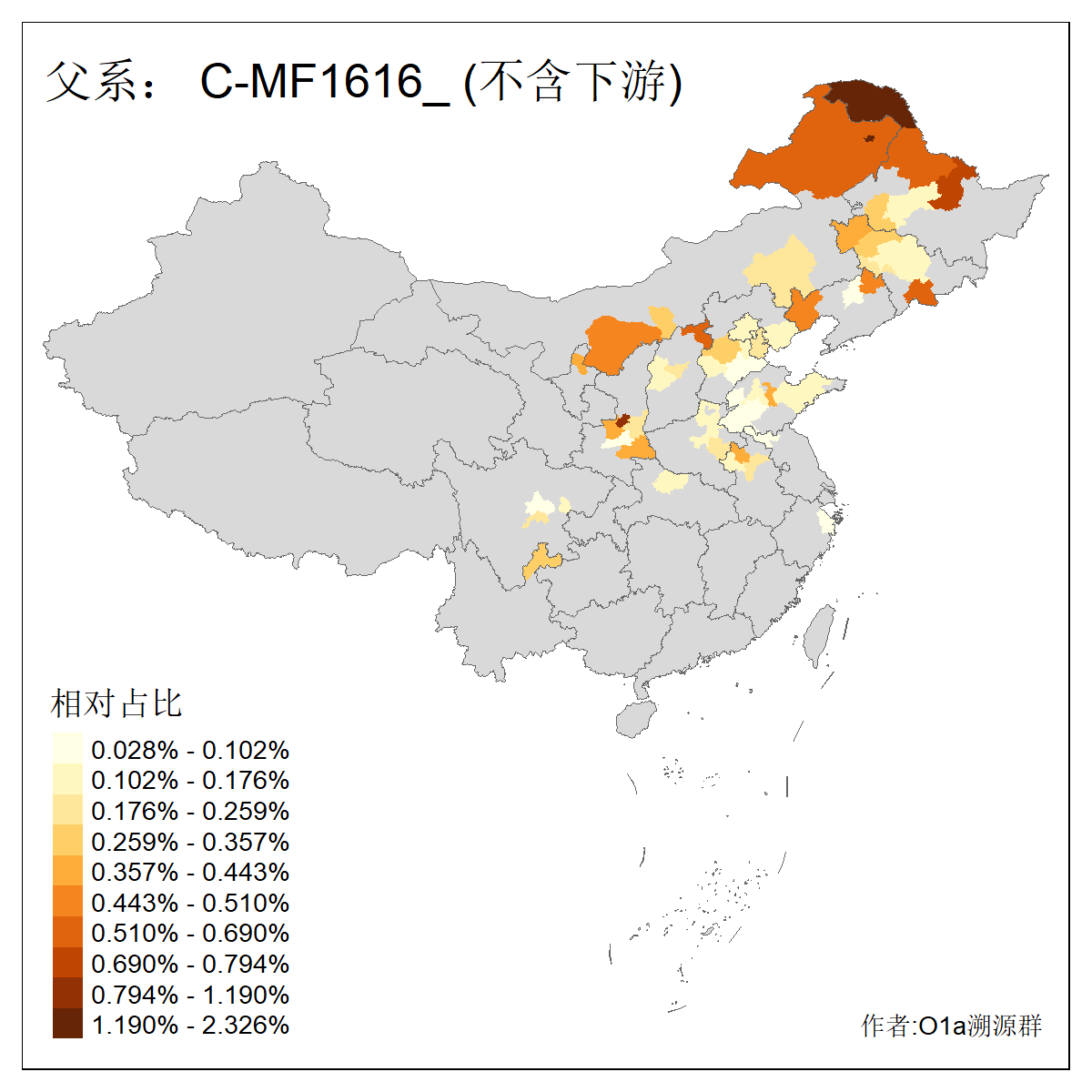 | C-M130_C-M217_C-L1373_C-F3447_C-F1699_C-Y6715_C-M504_C-Y4519 | 4040 | 0.332% | 711人(含下游) 赵:44 李:36 关:29 王:26 张:24 吴:20 阿:16 马:16 刘:14 白:14 艾:14 何:13 巴:12 哈:11 ![]() | 40人(不含下游) 赵:6 董:5 王:4 童:3 恒:2 白:2 佟:1 傅:1 呼:1 奥:1 崔:1 张:1 李:1 焦:1 ![]() |