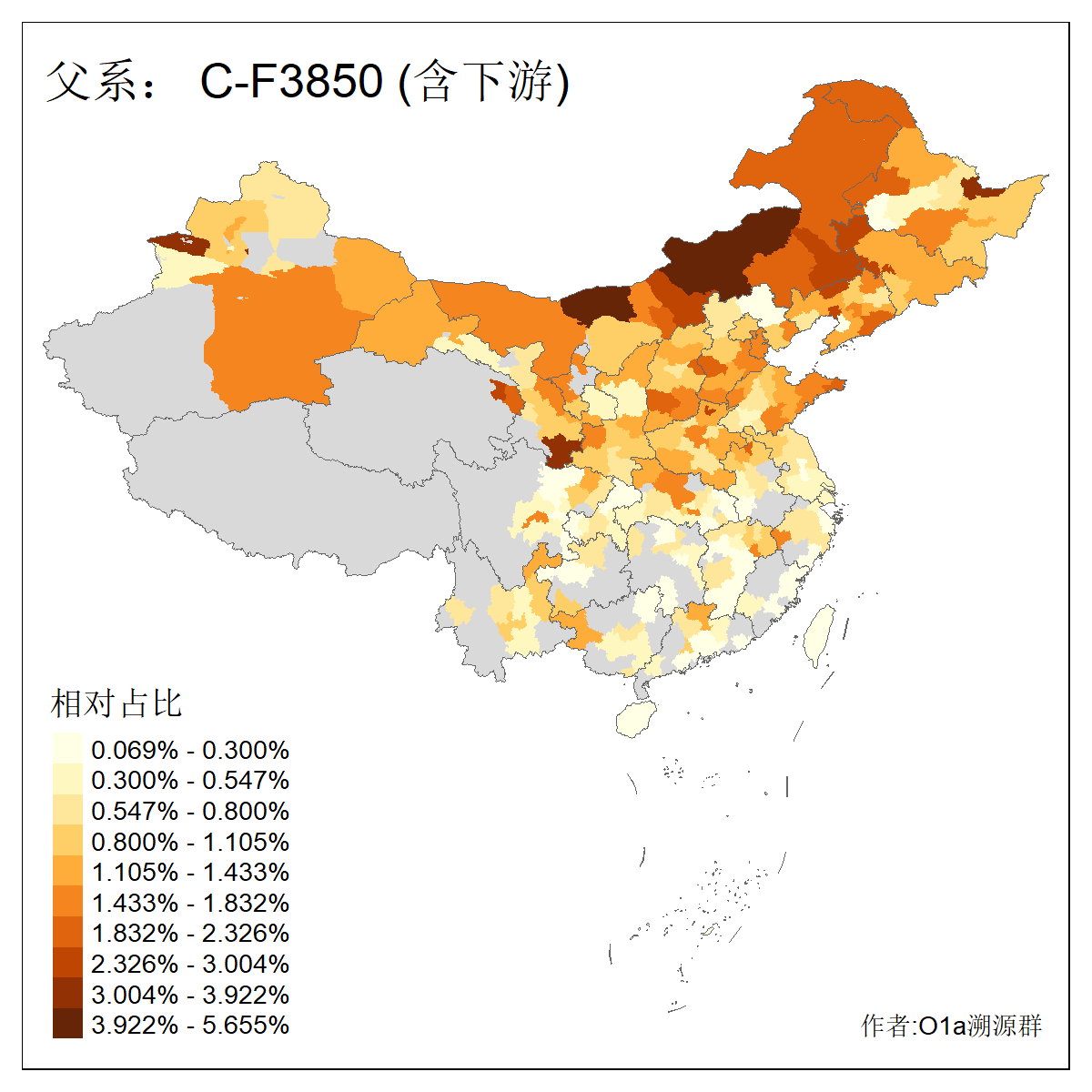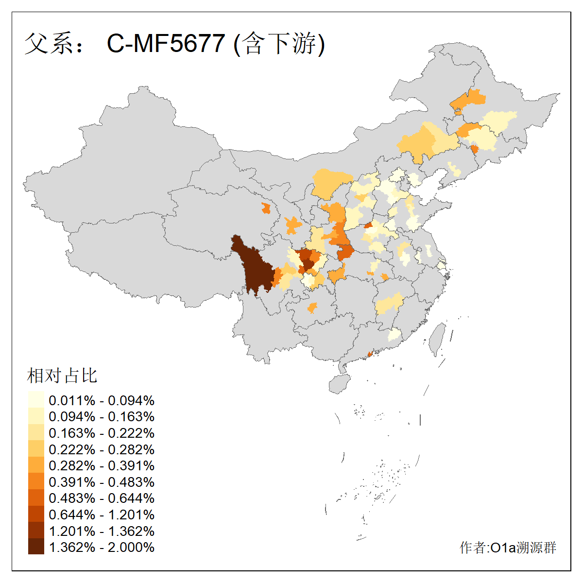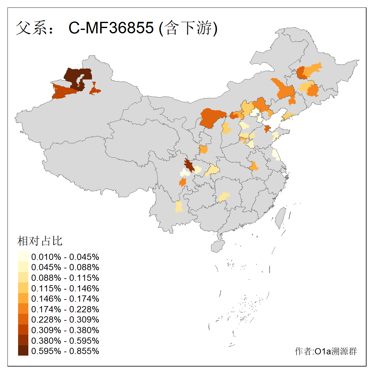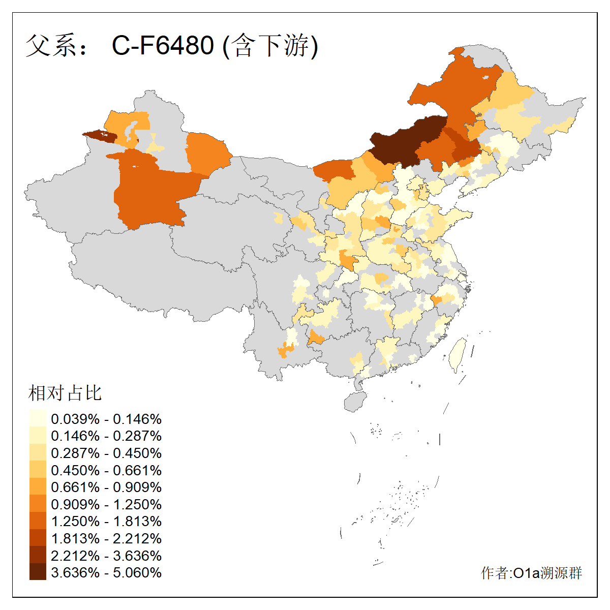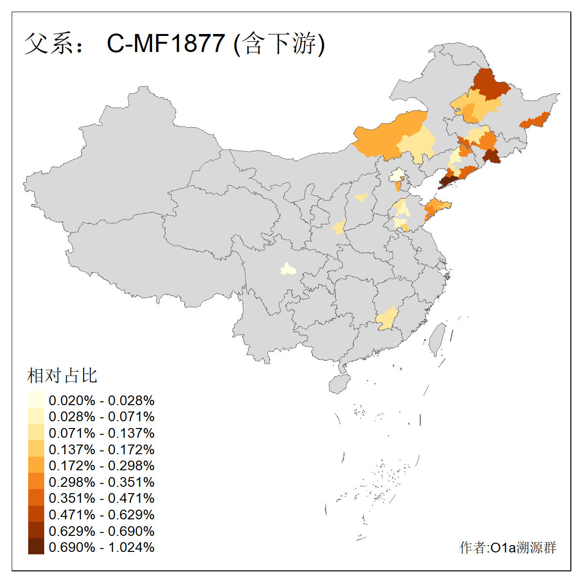 | C-M130_C-M217_C-L1373_C-F3447_C-F1699_C-Y6715_C-M504_C-Y4519 | 4040 | 0.332% | 711人(含下游) 赵:44 李:36 关:29 王:26 张:24 吴:20 阿:16 马:16 刘:14 白:14 艾:14 何:13 巴:12 哈:11 ![]() | 40人(不含下游) 赵:6 董:5 王:4 童:3 恒:2 白:2 佟:1 傅:1 呼:1 奥:1 崔:1 张:1 李:1 焦:1 ![]() |