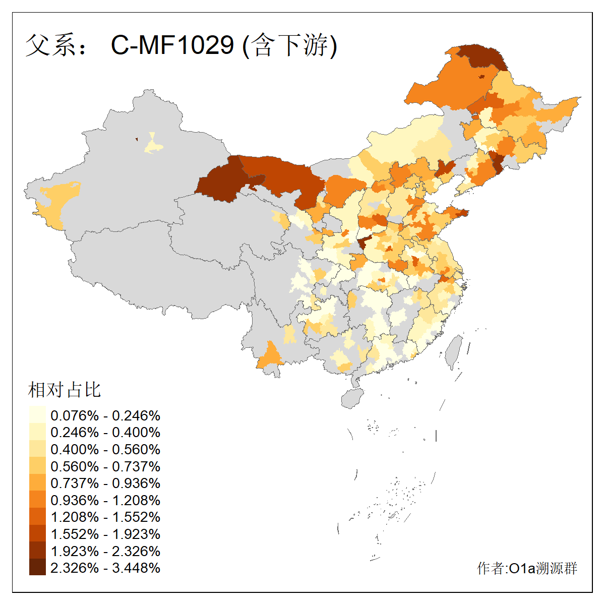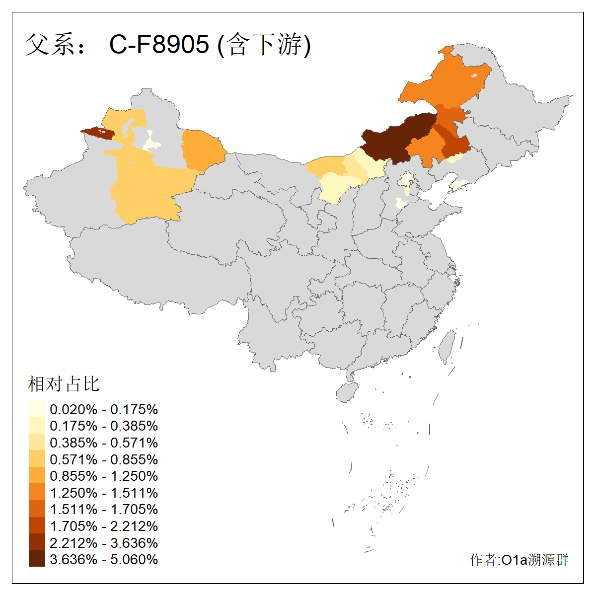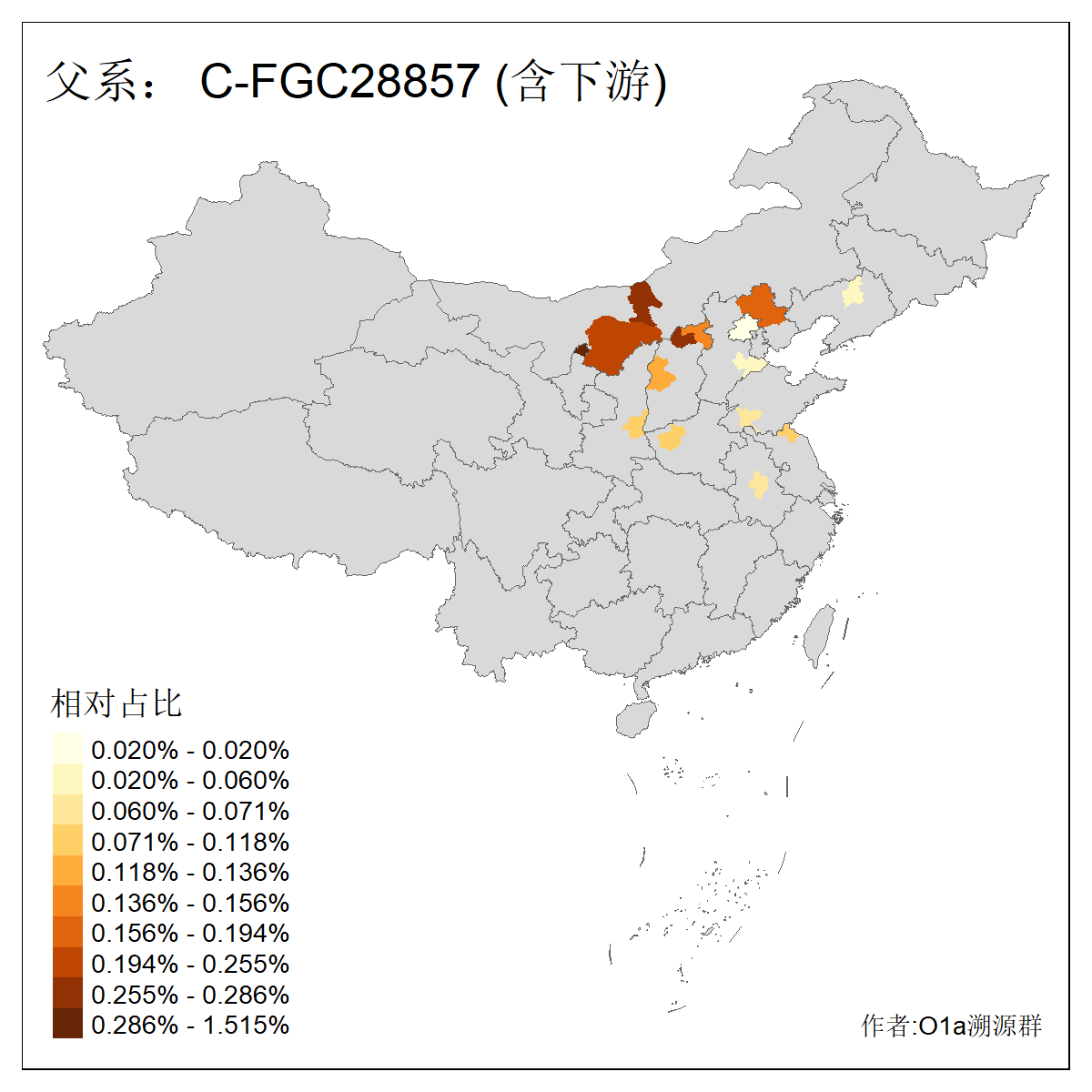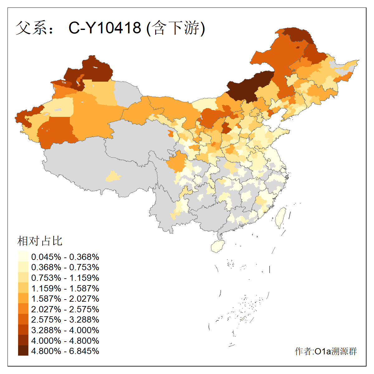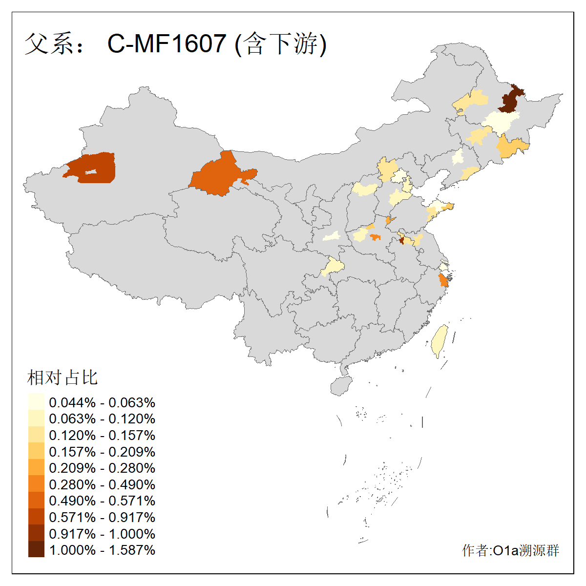 | C-M130_C-M217_C-L1373_C-F3447_C-F1699_C-Y6715_C-M504_C-Y4519 | 4040 | 0.332% | 711人(含下游) 赵:44 李:36 关:29 王:26 张:24 吴:20 阿:16 马:16 刘:14 白:14 艾:14 何:13 巴:12 哈:11 ![]() | 40人(不含下游) 赵:6 董:5 王:4 童:3 恒:2 白:2 佟:1 傅:1 呼:1 奥:1 崔:1 张:1 李:1 焦:1 ![]() |