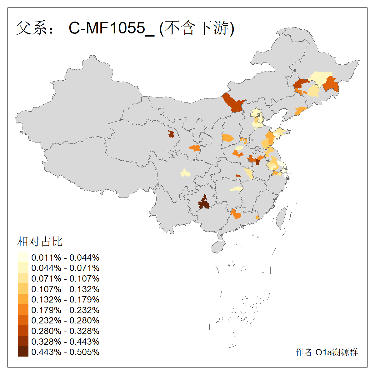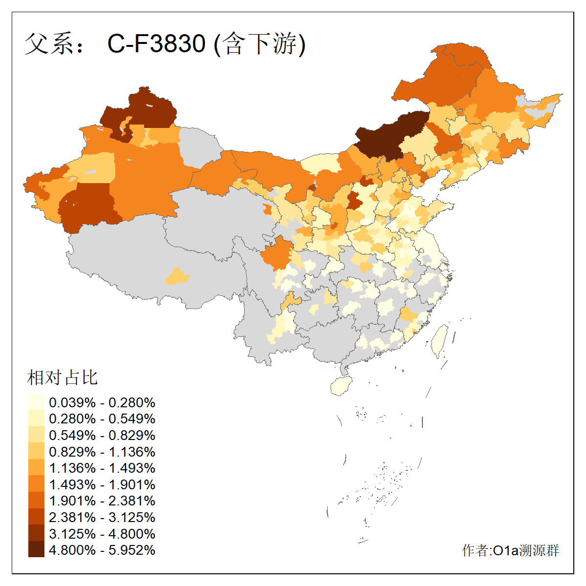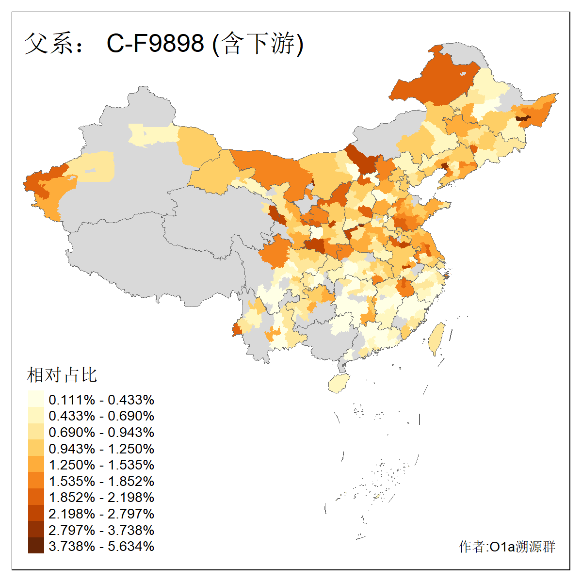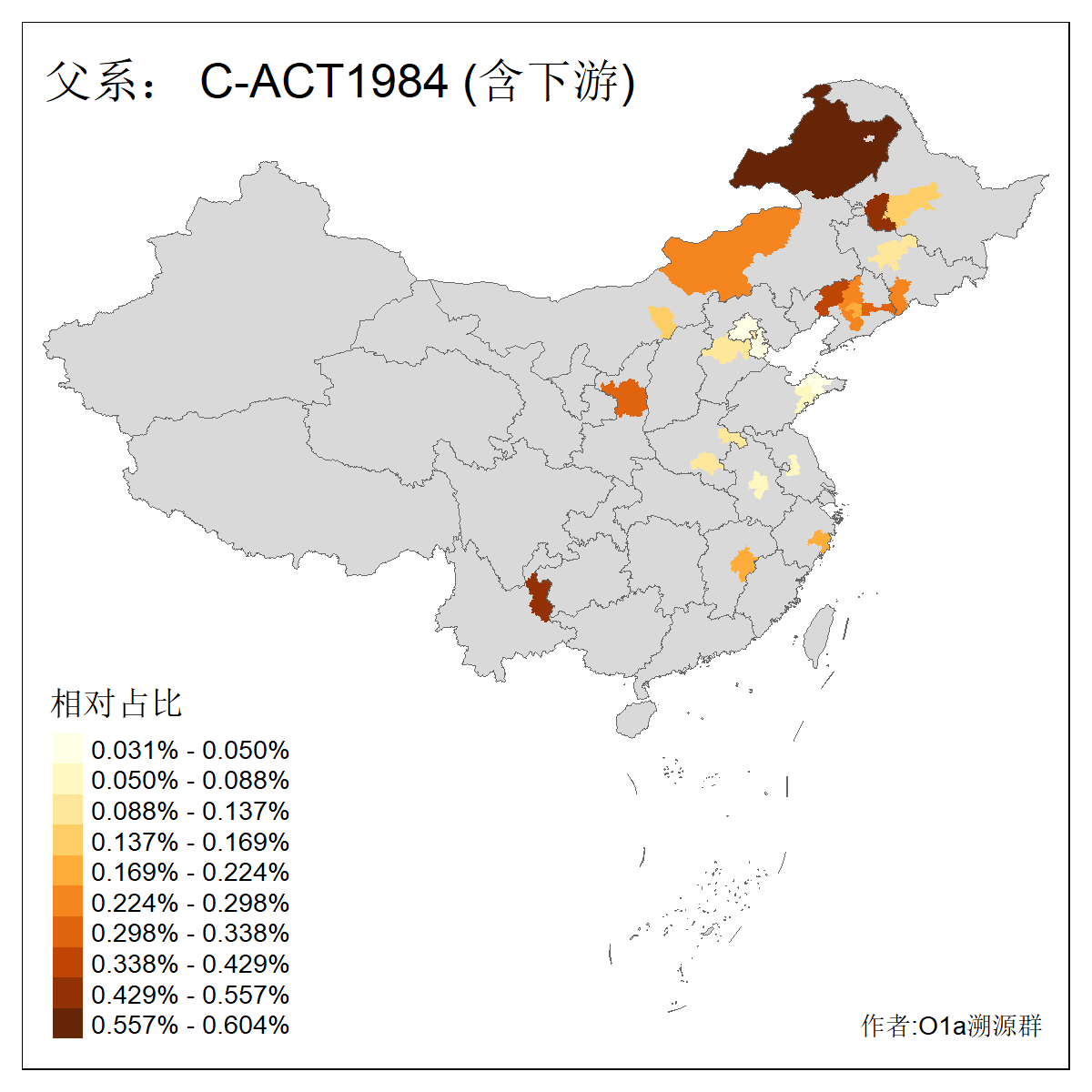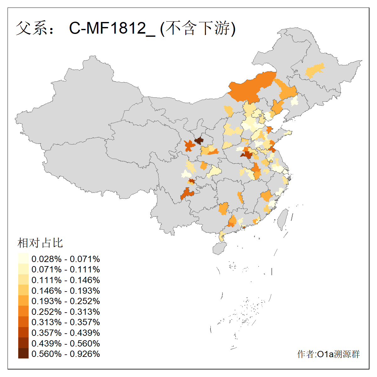 | C-M130_C-M217_C-L1373_C-F3447_C-F1699_C-Y6715_C-M504_C-Y4519 | 4040 | 0.332% | 711人(含下游) 赵:44 李:36 关:29 王:26 张:24 吴:20 阿:16 马:16 刘:14 白:14 艾:14 何:13 巴:12 哈:11 ![]() | 40人(不含下游) 赵:6 董:5 王:4 童:3 恒:2 白:2 佟:1 傅:1 呼:1 奥:1 崔:1 张:1 李:1 焦:1 ![]() |