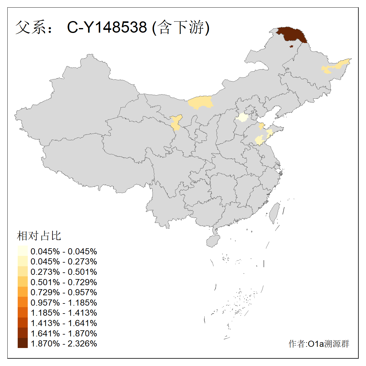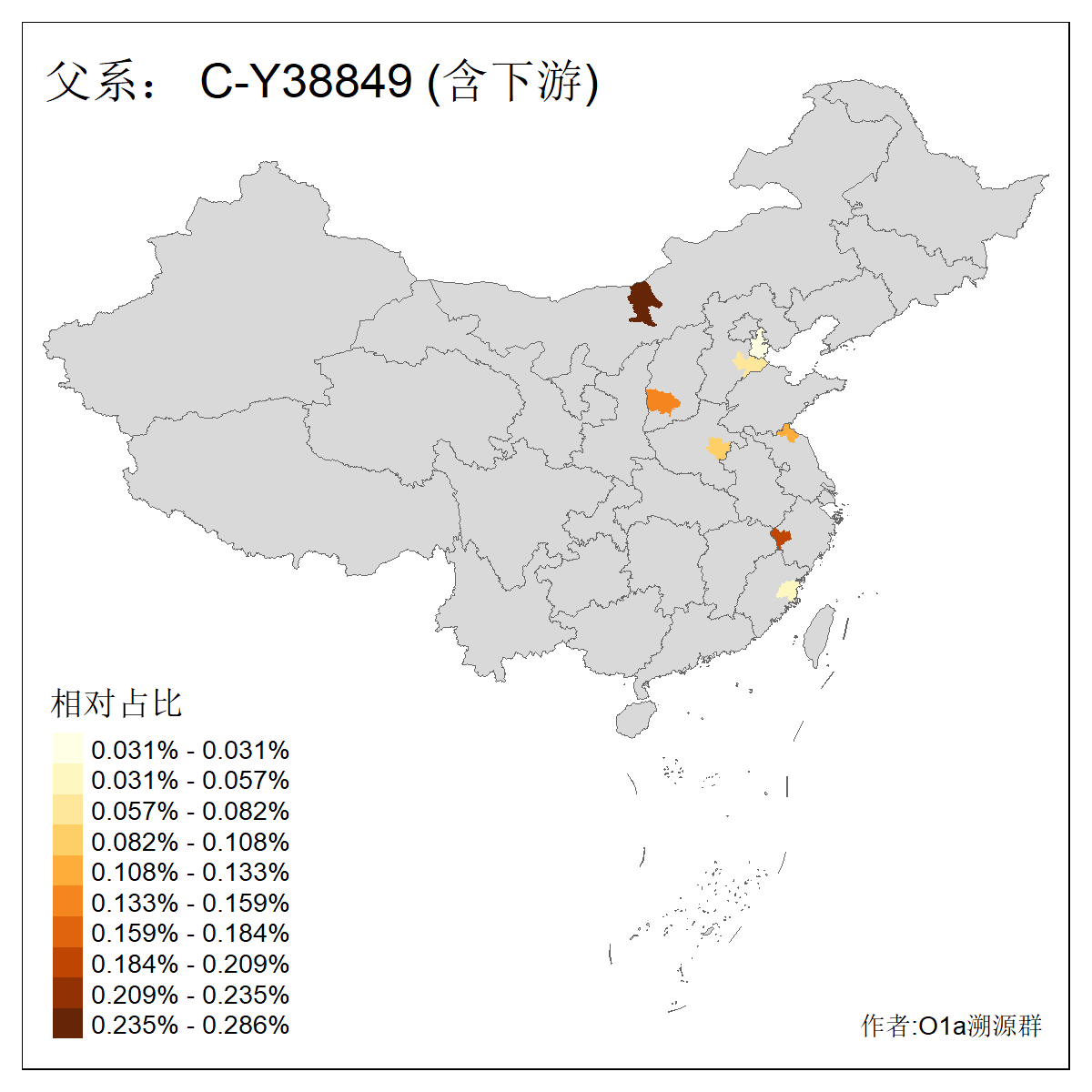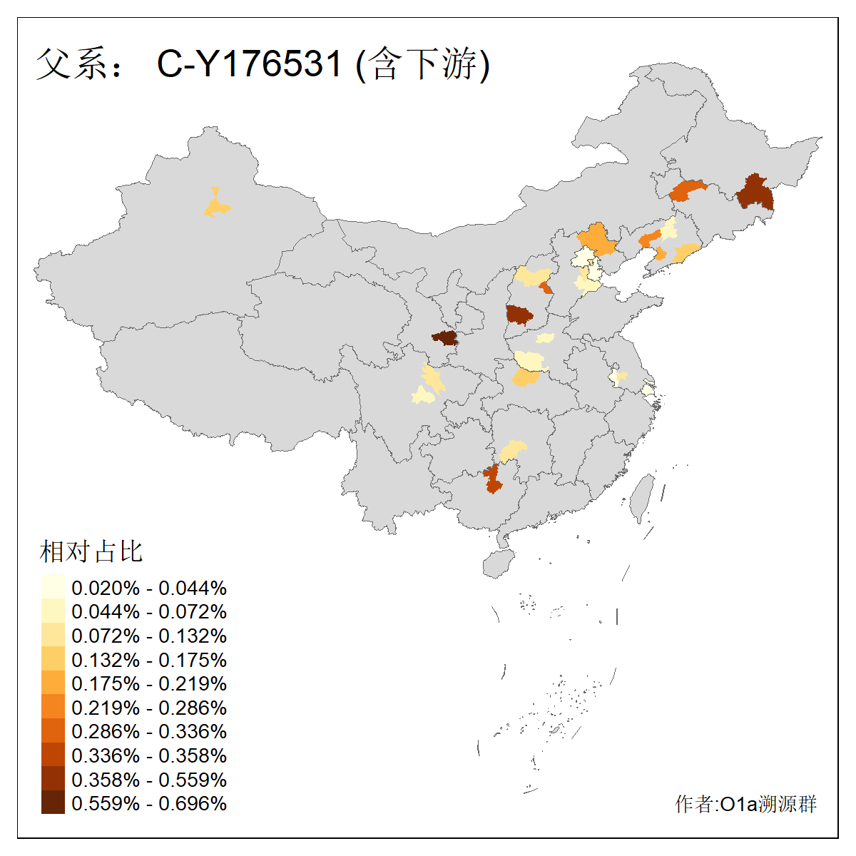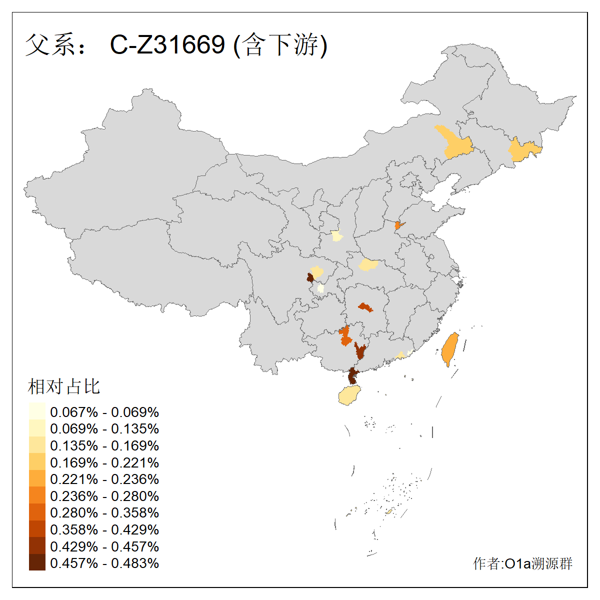 | C-M130_C-M217_C-L1373_C-F3447_C-F1699_C-Y6715_C-M48_C-M86_C-SK1061_C-B469 | 2160 | 0.041% | 116人(含下游) 吴:13 白:9 何:5 张:5 包:4 李:4 阿:4 陶:4 付:3 关:3 赵:3 乌:2 卜:2 叶:2 ![]() | 14人(不含下游) 孙:2 白:2 代:1 全:1 凯:1 吴:1 张:1 李:1 赵:1 陈:1 额:1 高:1 ![]() |