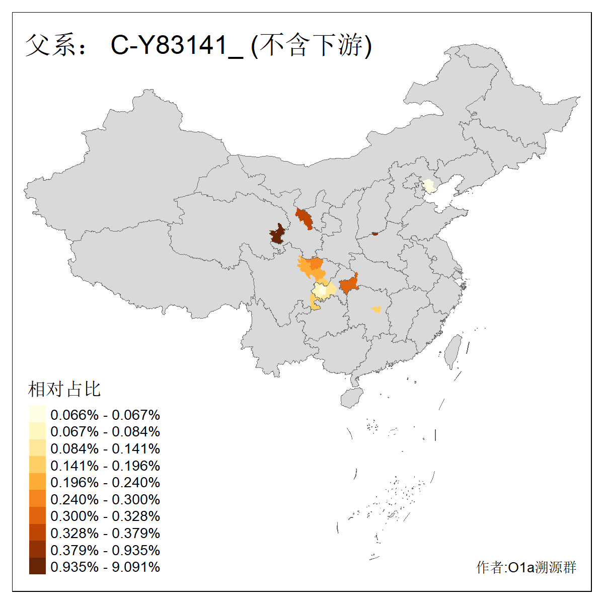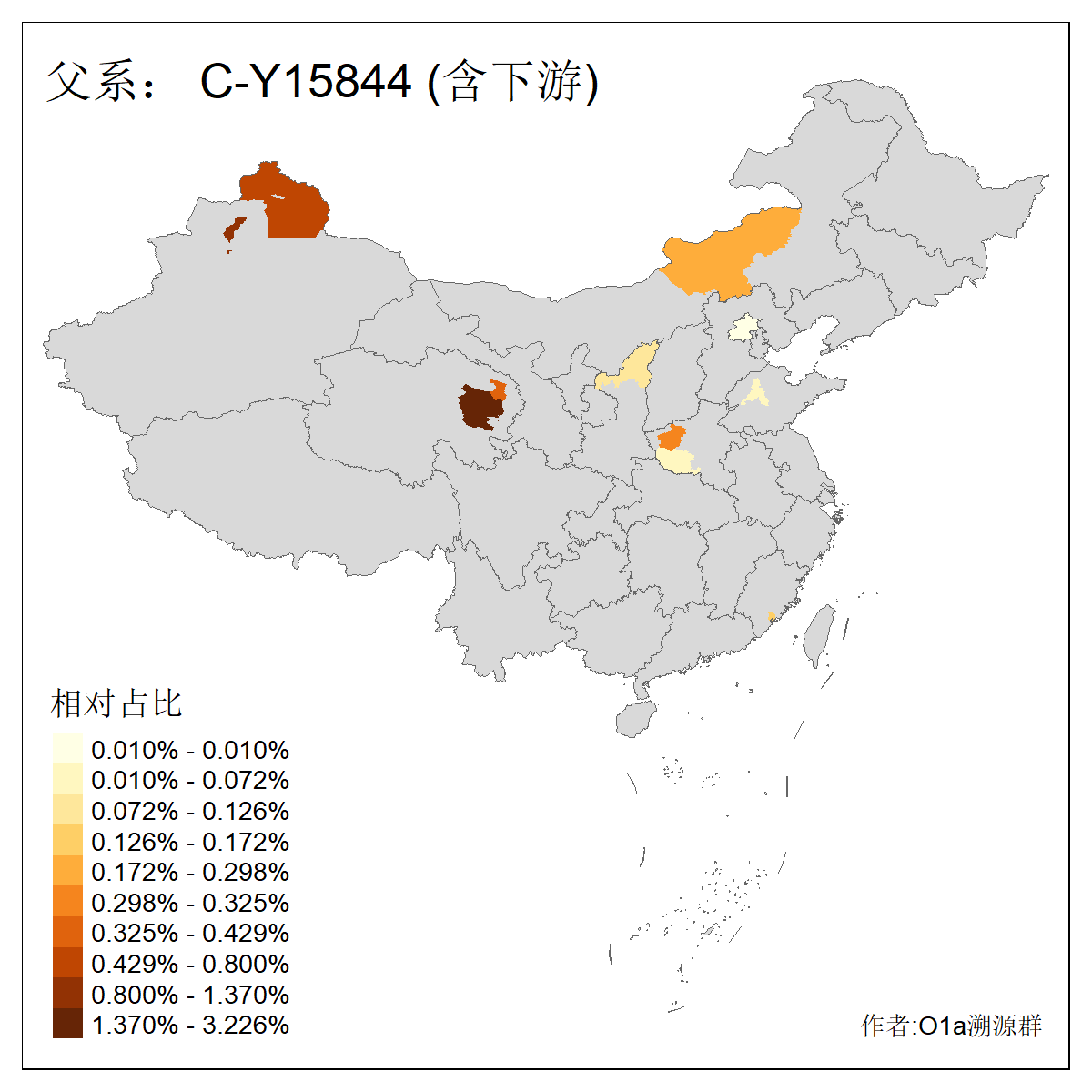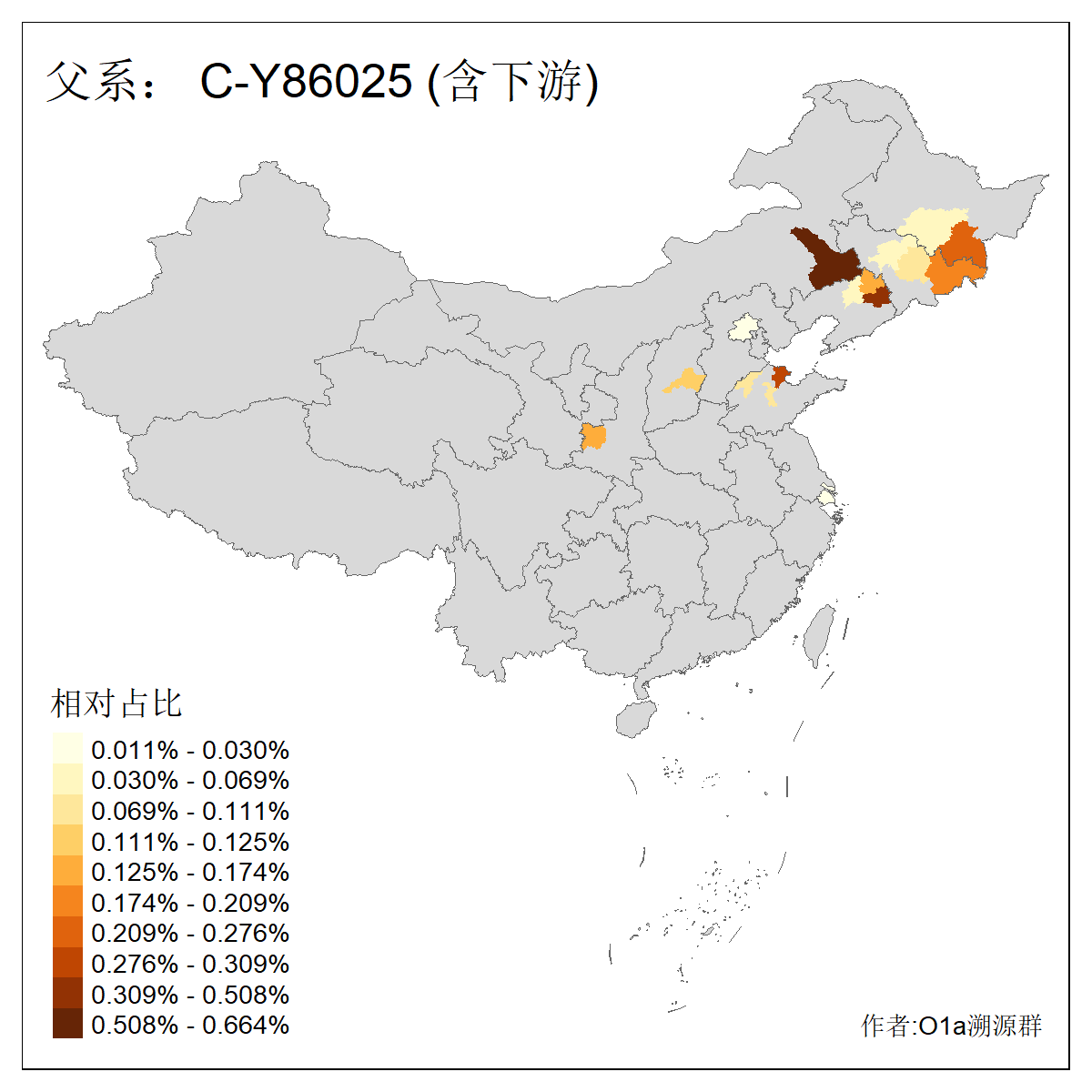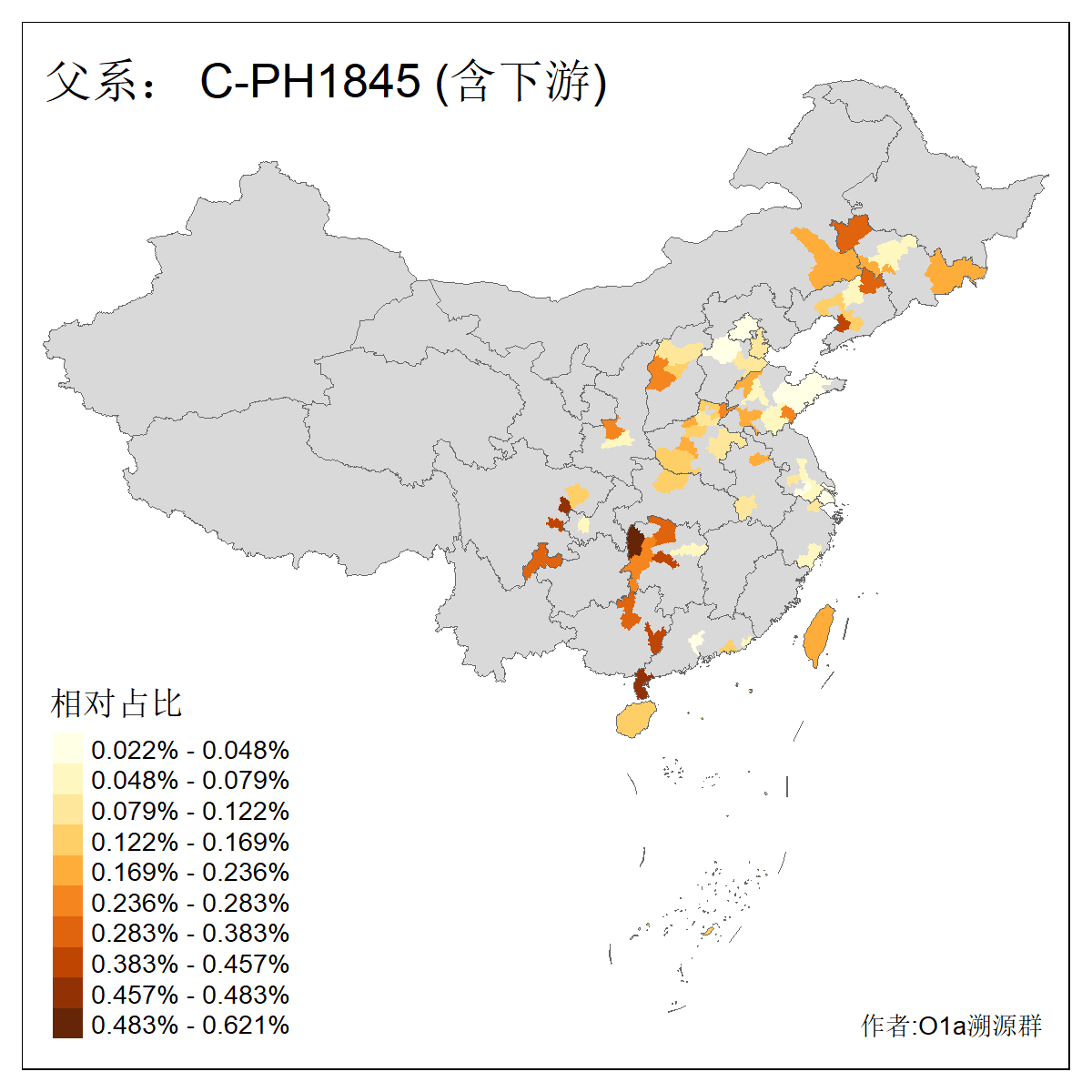 | C-M130_C-M217_C-L1373_C-F3447_C-F1699_C-Y6715_C-M48_C-M86_C-SK1061_C-B469 | 2160 | 0.041% | 116人(含下游) 吴:13 白:9 何:5 张:5 包:4 李:4 阿:4 陶:4 付:3 关:3 赵:3 乌:2 卜:2 叶:2 ![]() | 14人(不含下游) 孙:2 白:2 代:1 全:1 凯:1 吴:1 张:1 李:1 赵:1 陈:1 额:1 高:1 ![]() |