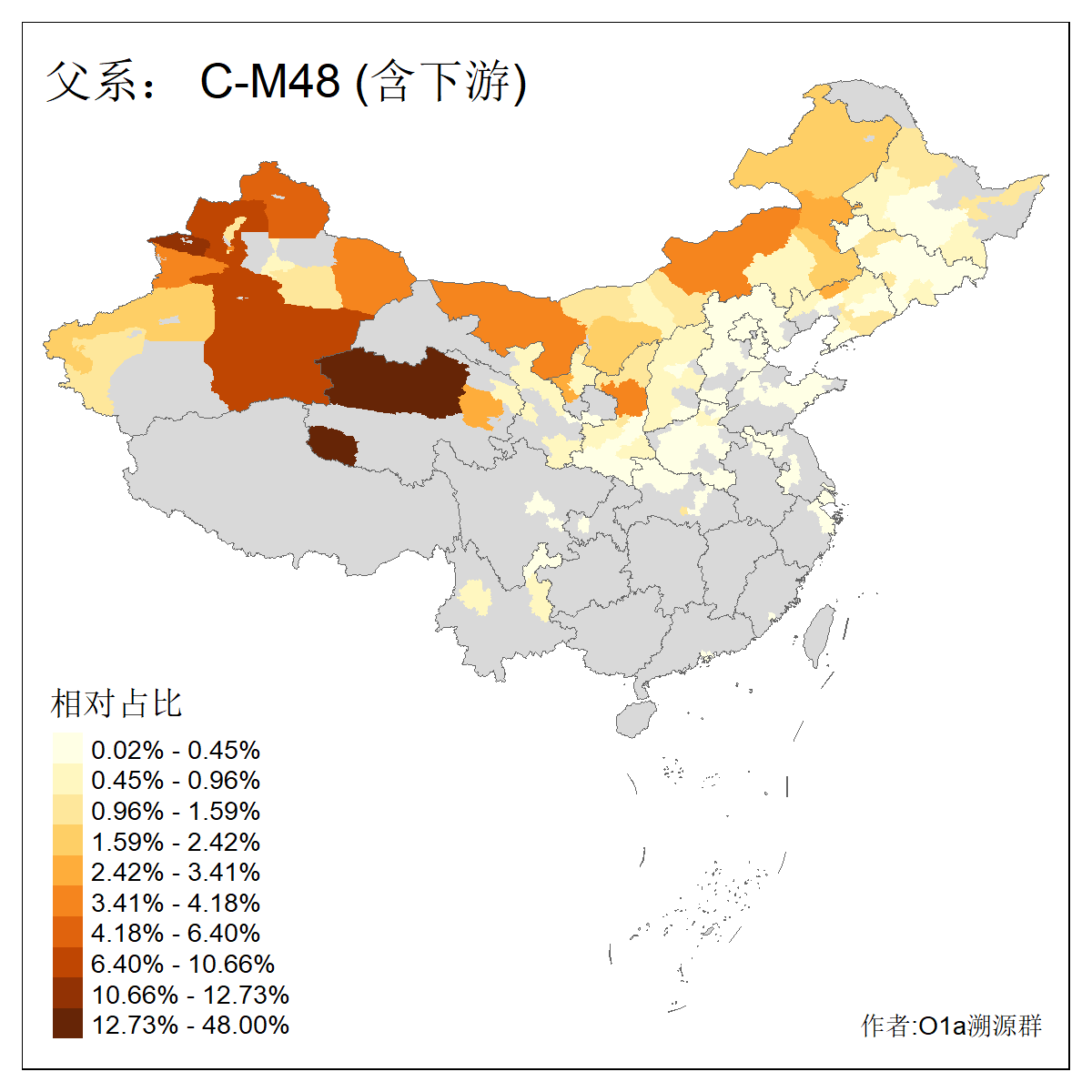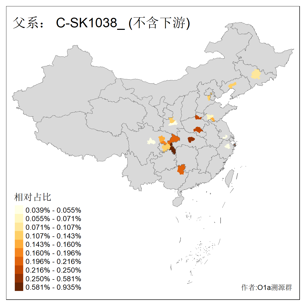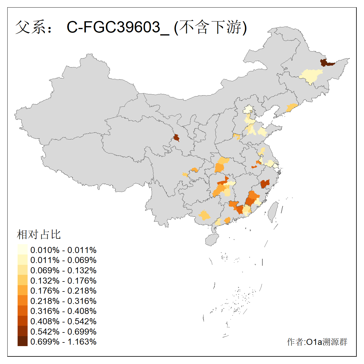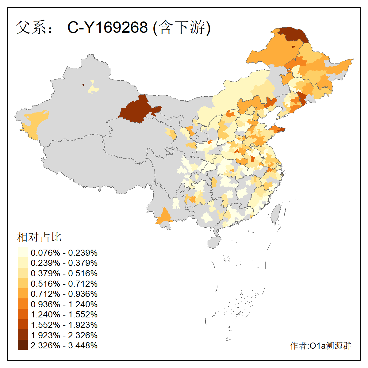 | C-M130_C-M217_C-L1373_C-F3447_C-F1699_C-Y6715_C-M48_C-M86_C-SK1061_C-B469 | 2160 | 0.041% | 116人(含下游) 吴:13 白:9 何:5 张:5 包:4 李:4 阿:4 陶:4 付:3 关:3 赵:3 乌:2 卜:2 叶:2 ![]() | 14人(不含下游) 孙:2 白:2 代:1 全:1 凯:1 吴:1 张:1 李:1 赵:1 陈:1 额:1 高:1 ![]() |