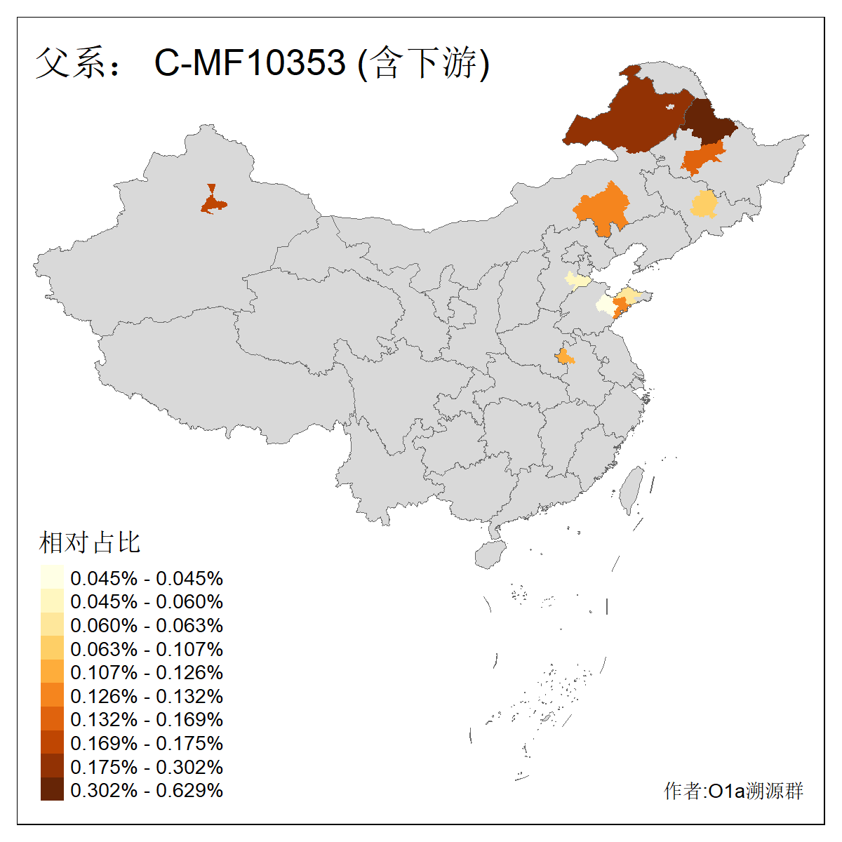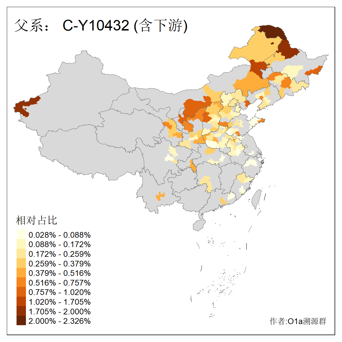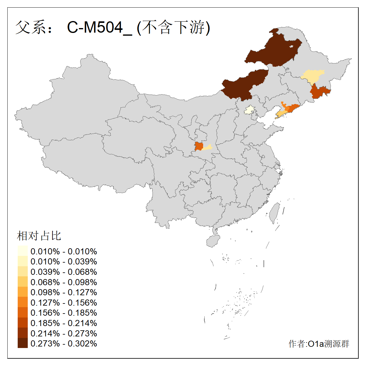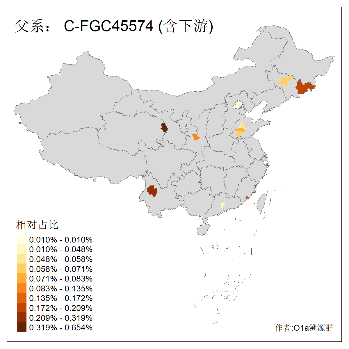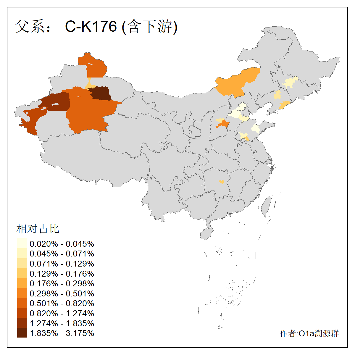 | C-M130_C-M217_C-L1373_C-F3447_C-F1699_C-Y6715_C-M504_C-Y4519_C-Y11121_C-F3796 | 2810 | 0.276% | 553人(含下游) 关:27 李:27 张:21 吴:19 王:18 阿:16 艾:14 赵:14 刘:12 巴:12 何:11 哈:11 包:10 白:10 ![]() | 101人(不含下游) 刘:8 李:8 吴:6 赵:6 张:5 王:5 赫:5 南:4 柴:4 火:3 郭:3 何:2 佟:2 傅:2 ![]() |