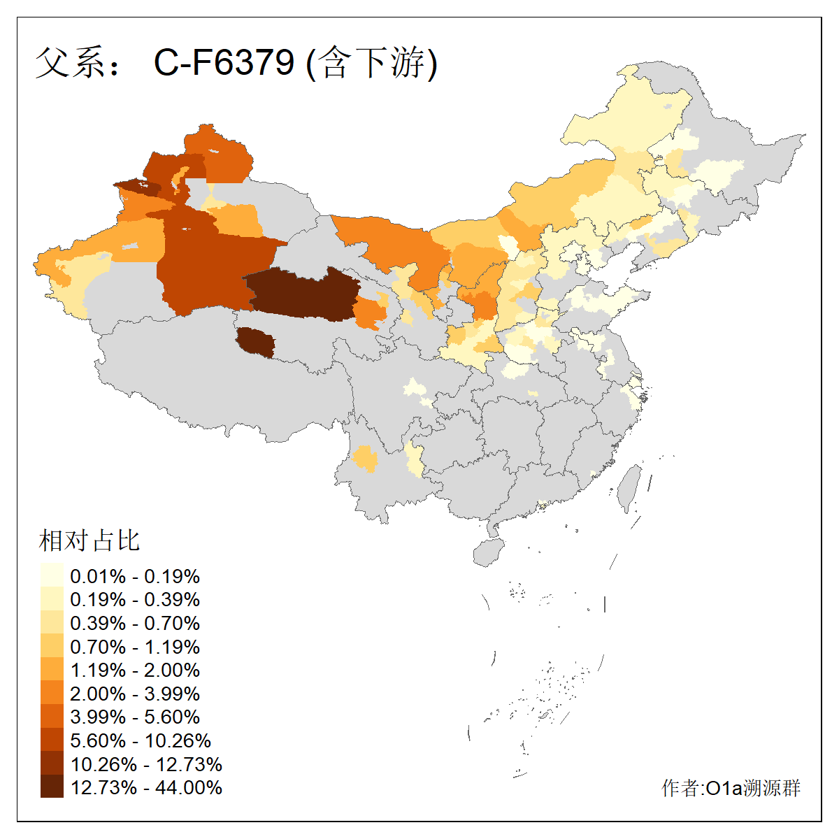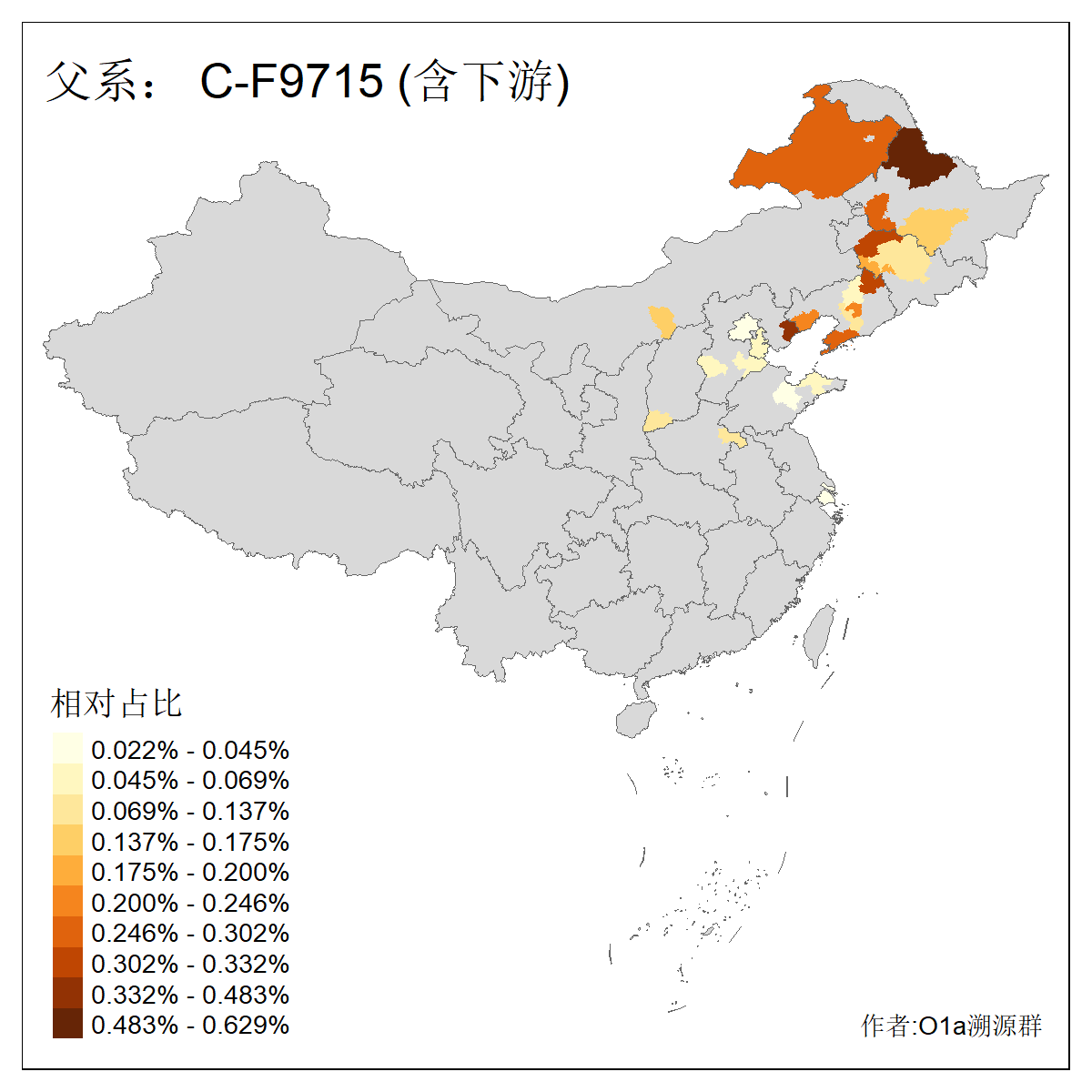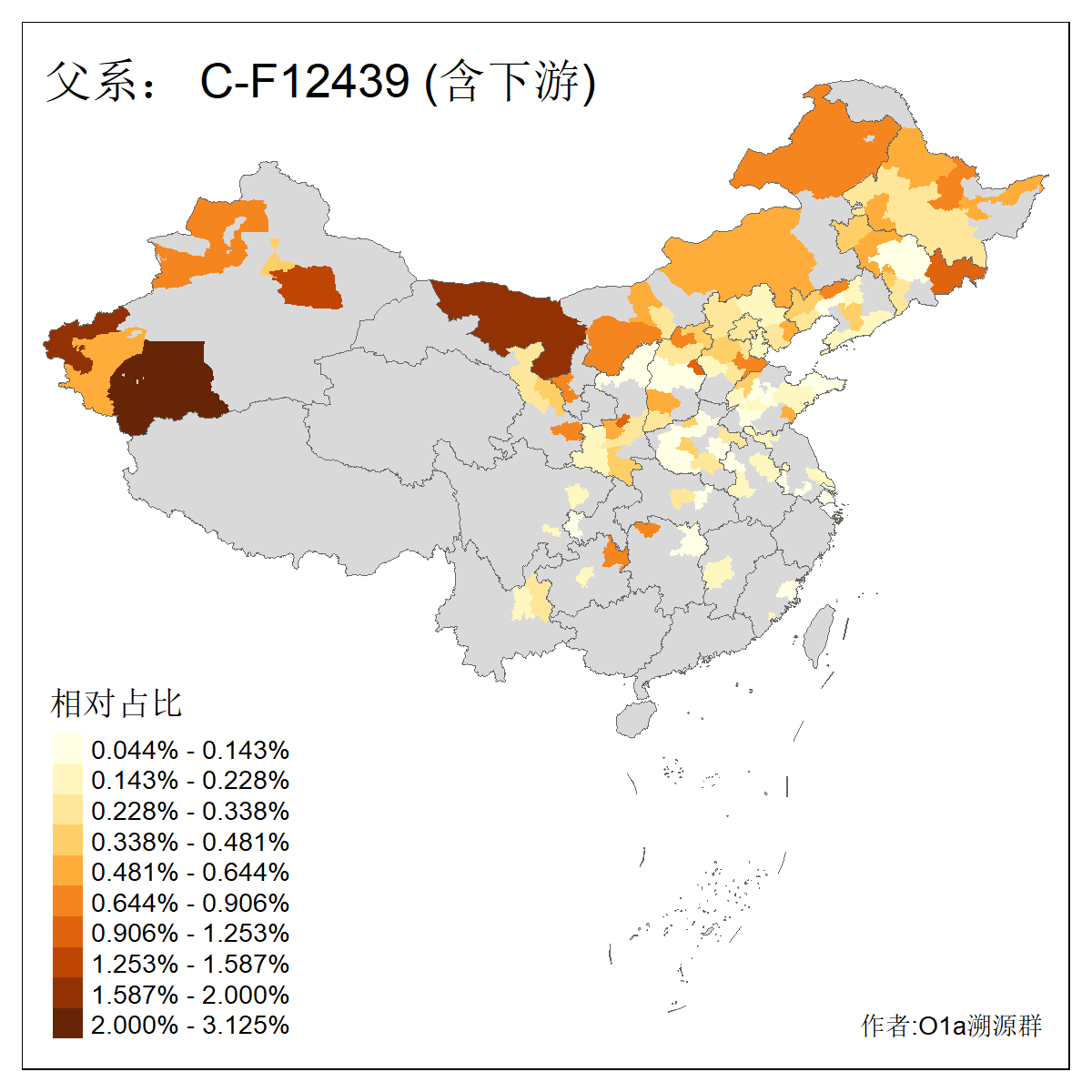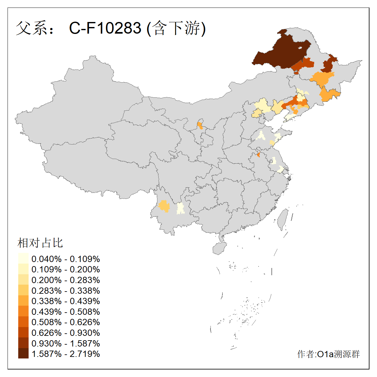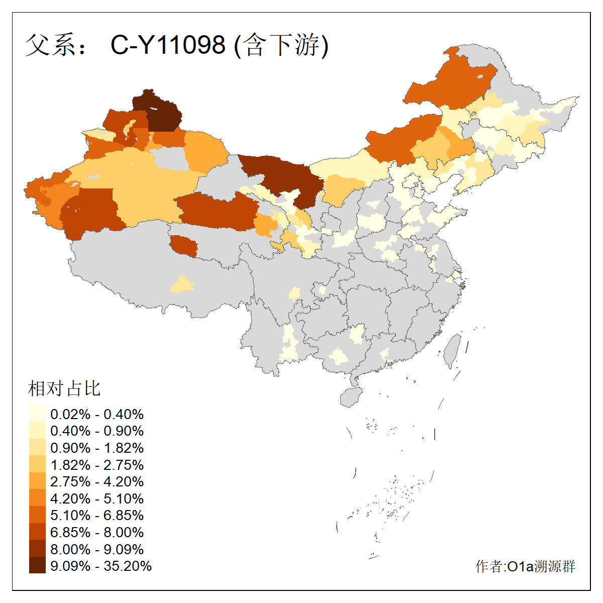 | C-M130_C-M217_C-L1373_C-F3447_C-F1699_C-Y6715_C-M504_C-Y4519_C-Y11121_C-F3796 | 2810 | 0.276% | 553人(含下游) 关:27 李:27 张:21 吴:19 王:18 阿:16 艾:14 赵:14 刘:12 巴:12 何:11 哈:11 包:10 白:10 ![]() | 101人(不含下游) 刘:8 李:8 吴:6 赵:6 张:5 王:5 赫:5 南:4 柴:4 火:3 郭:3 何:2 佟:2 傅:2 ![]() |