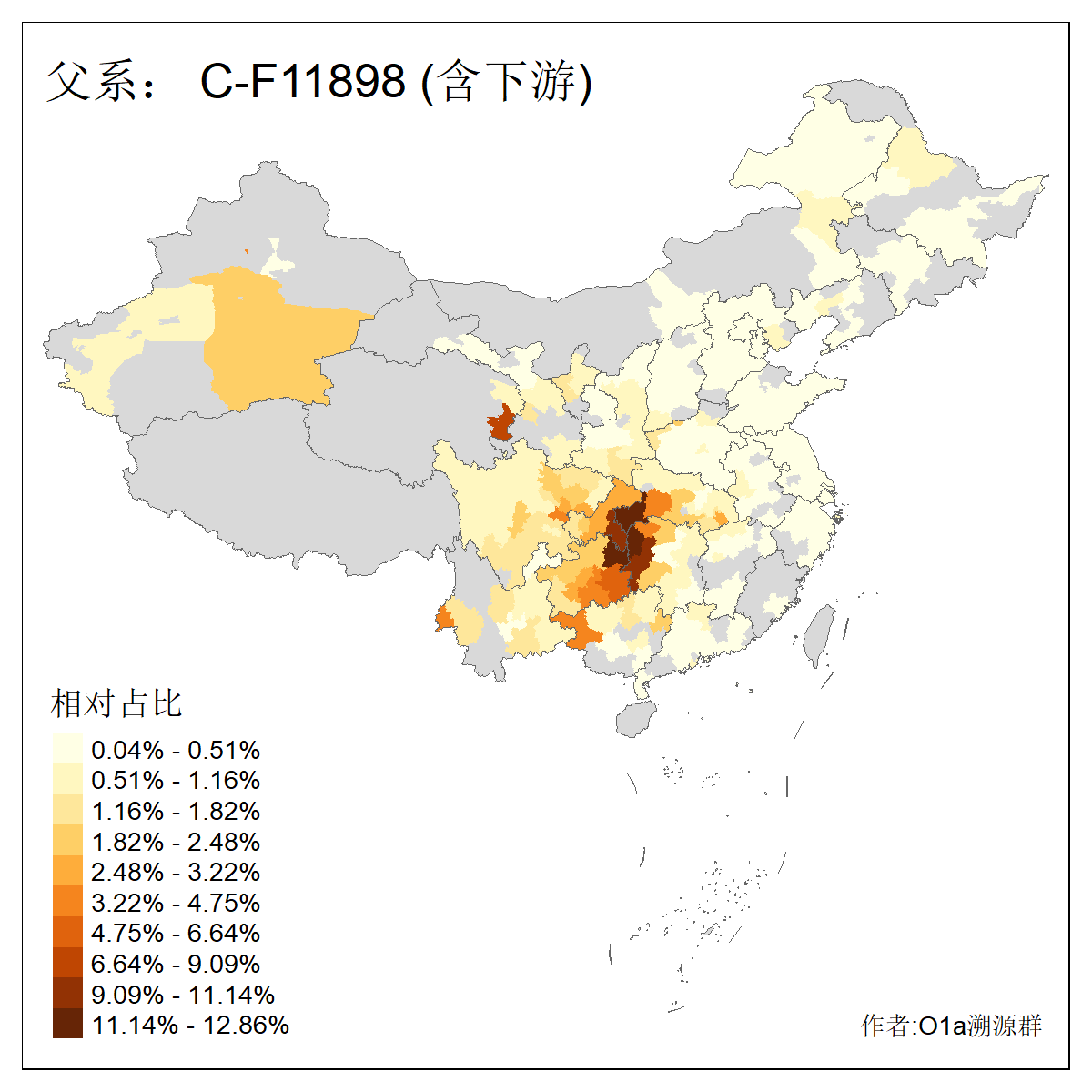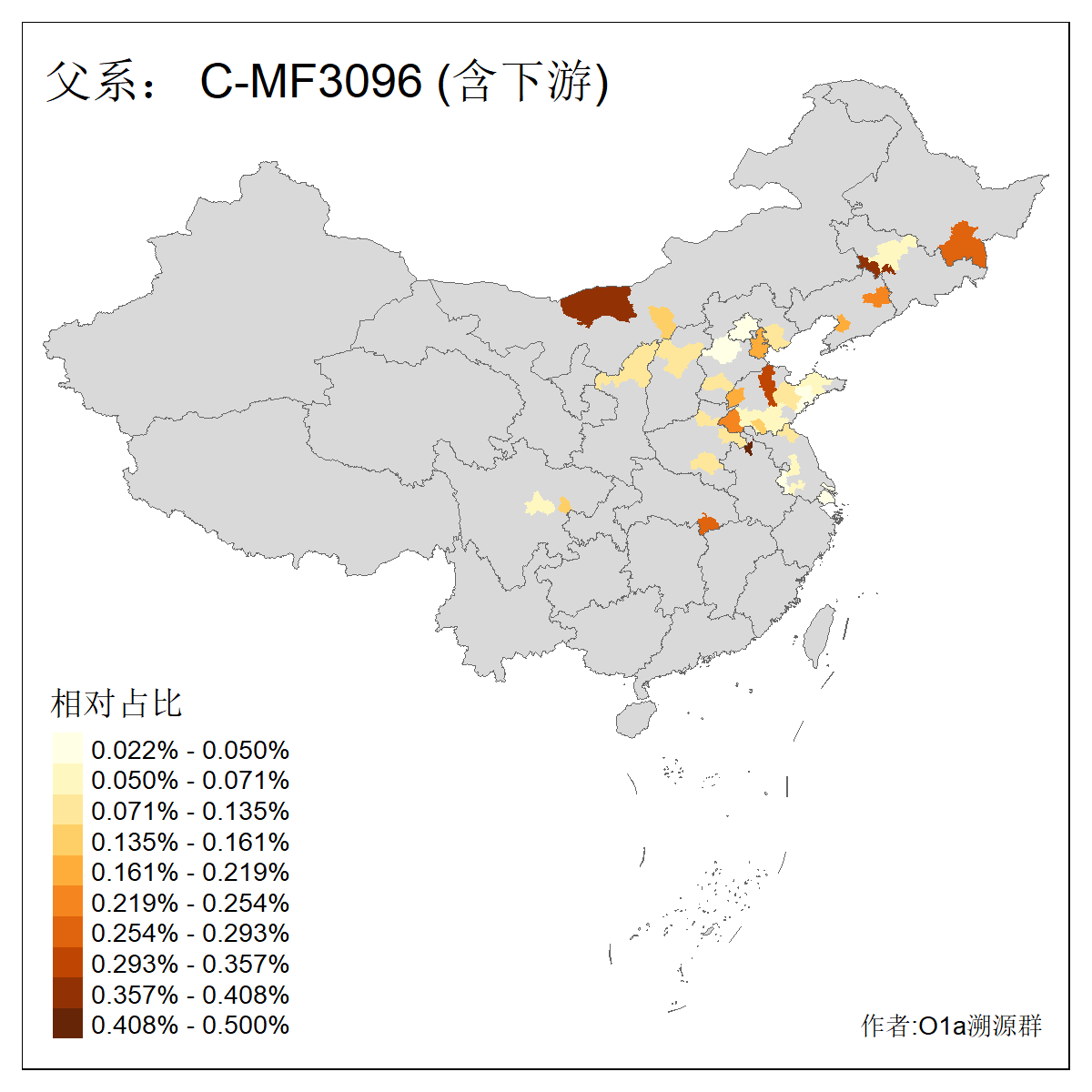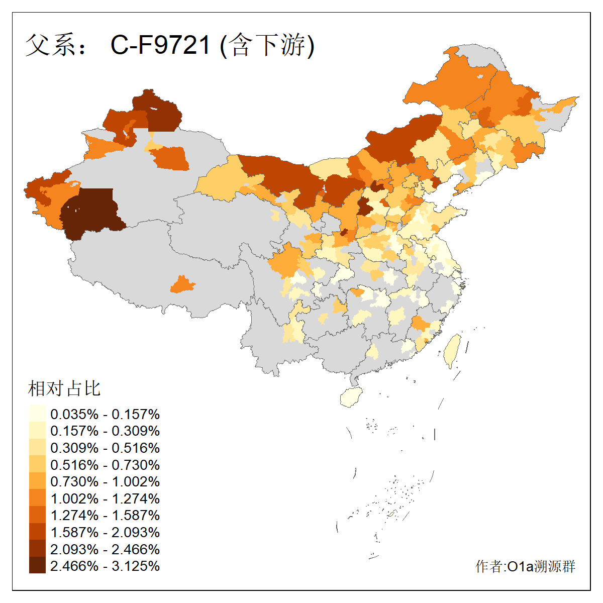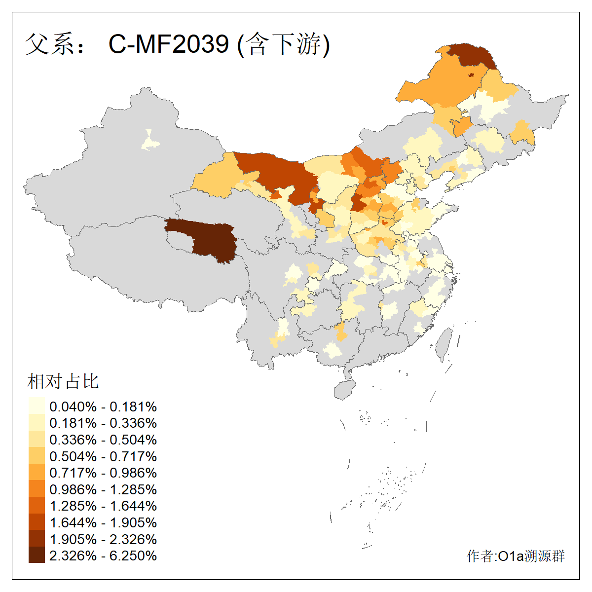 | C-M130_C-M217_C-L1373_C-F3447_C-F1699_C-Y6715_C-M504_C-Y4519_C-Y11121_C-F3796 | 2810 | 0.276% | 553人(含下游) 关:27 李:27 张:21 吴:19 王:18 阿:16 艾:14 赵:14 刘:12 巴:12 何:11 哈:11 包:10 白:10 ![]() | 101人(不含下游) 刘:8 李:8 吴:6 赵:6 张:5 王:5 赫:5 南:4 柴:4 火:3 郭:3 何:2 佟:2 傅:2 ![]() |