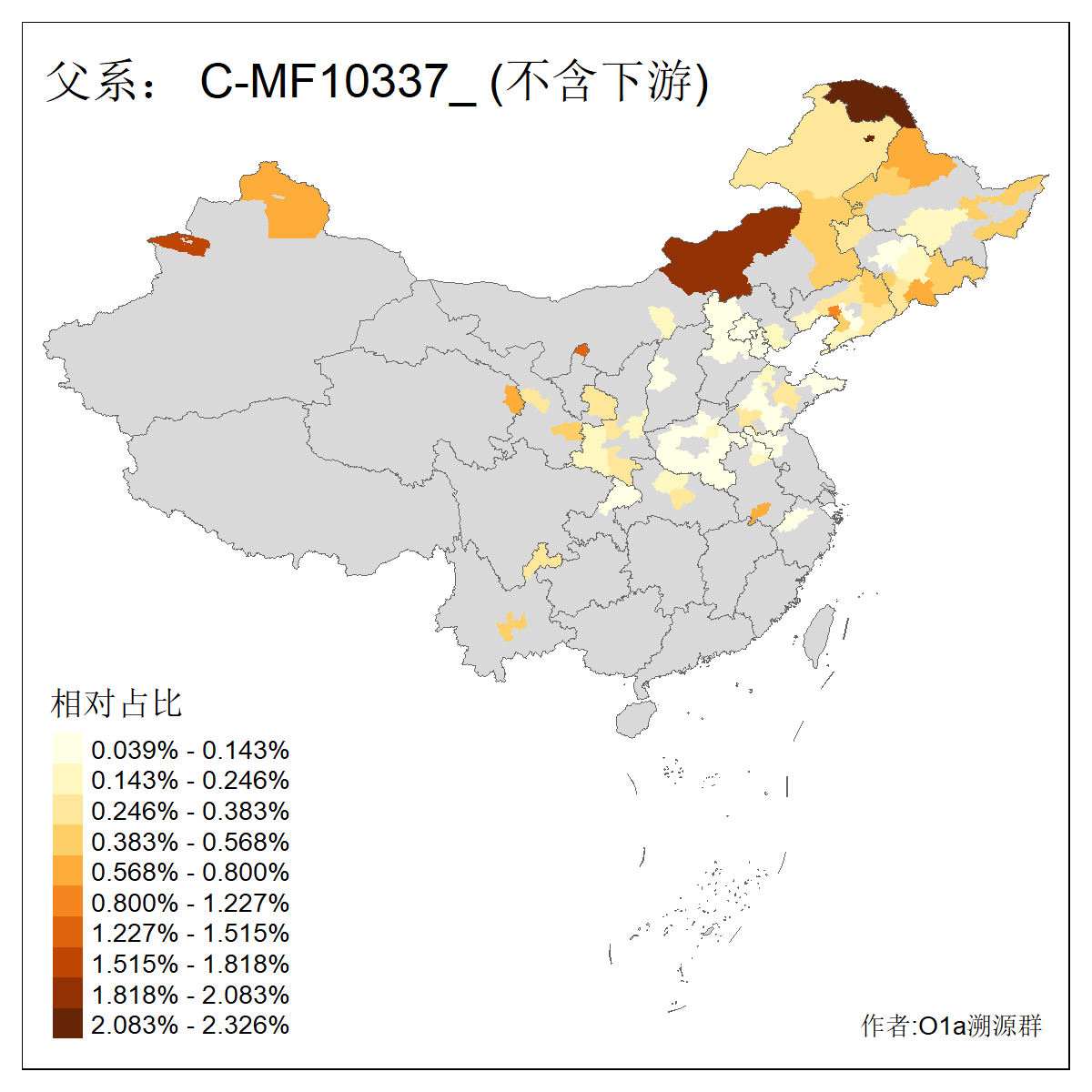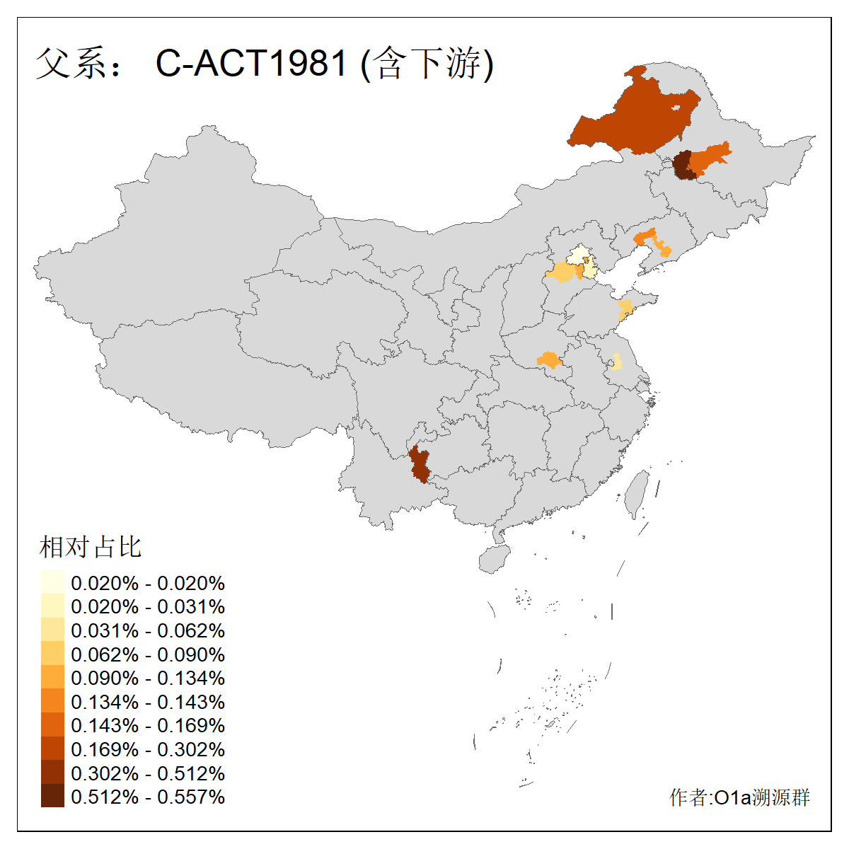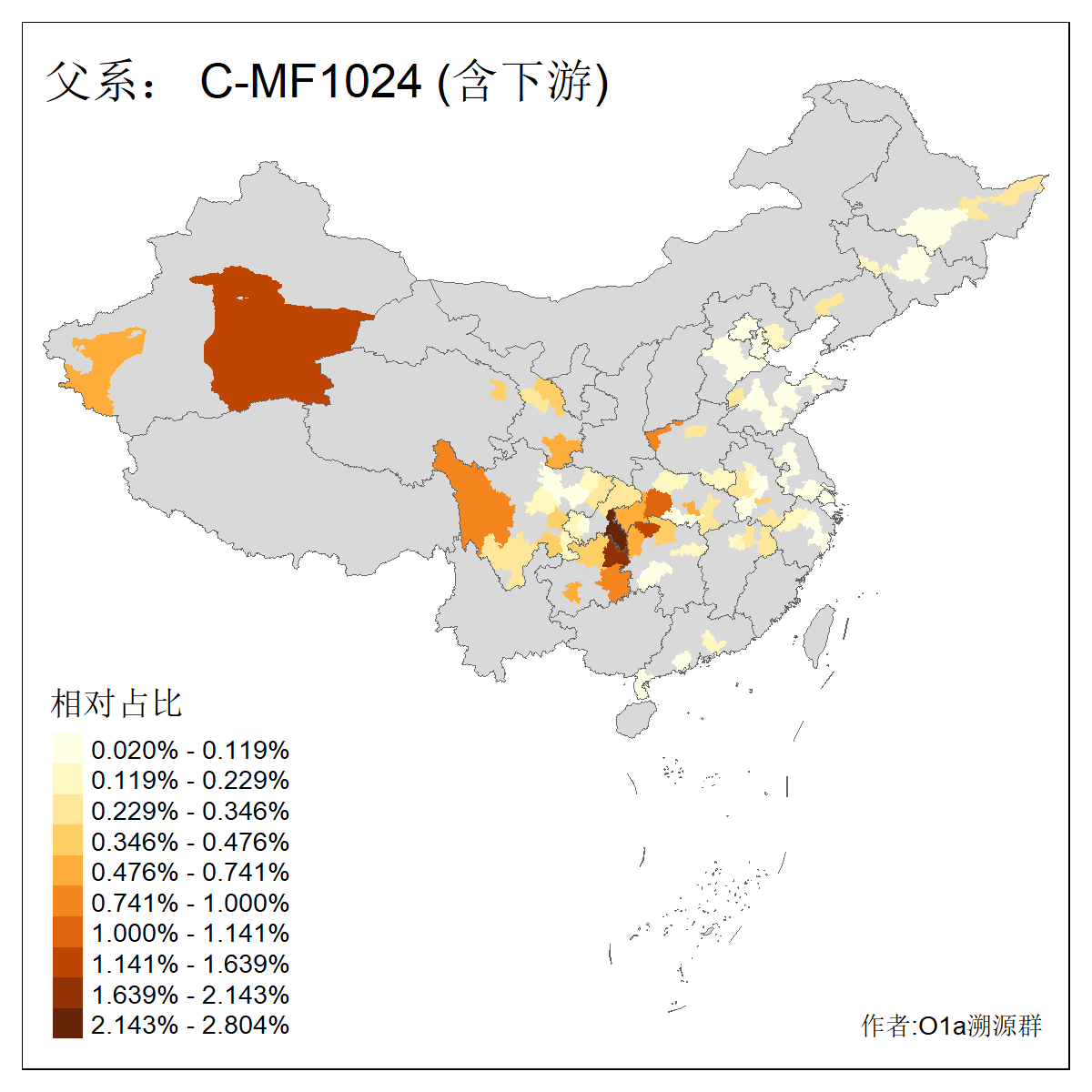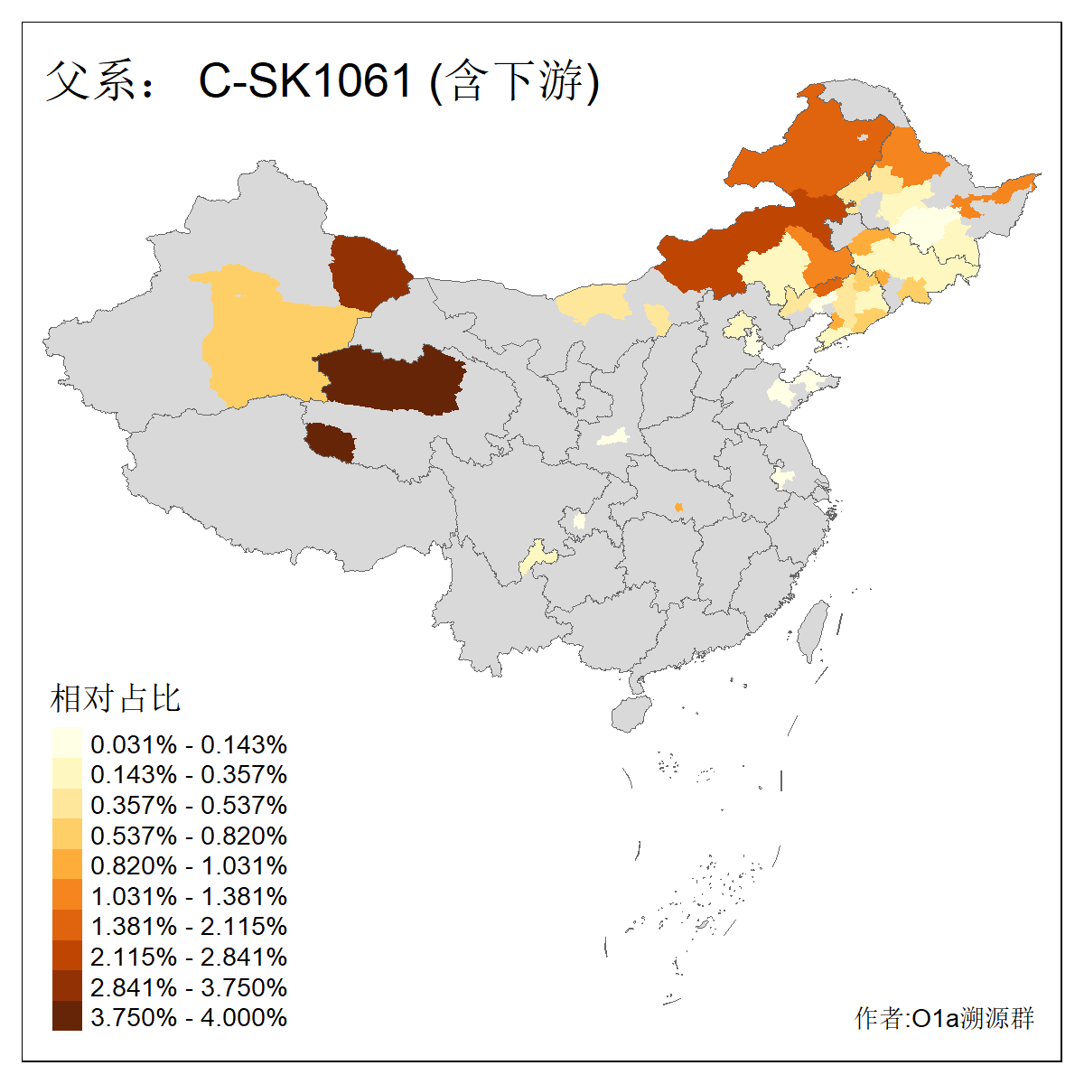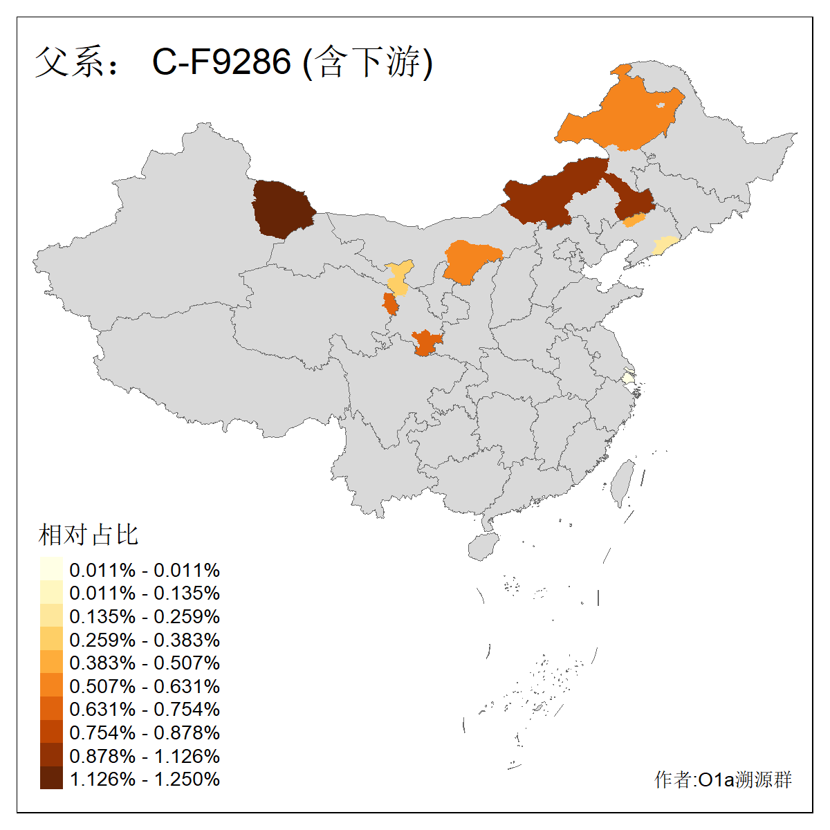 | C-M130_C-M217_C-L1373_C-F3447_C-F1699_C-Y6715_C-M504_C-Y4519_C-Y11121_C-F3796 | 2810 | 0.276% | 553人(含下游) 关:27 李:27 张:21 吴:19 王:18 阿:16 艾:14 赵:14 刘:12 巴:12 何:11 哈:11 包:10 白:10 ![]() | 101人(不含下游) 刘:8 李:8 吴:6 赵:6 张:5 王:5 赫:5 南:4 柴:4 火:3 郭:3 何:2 佟:2 傅:2 ![]() |