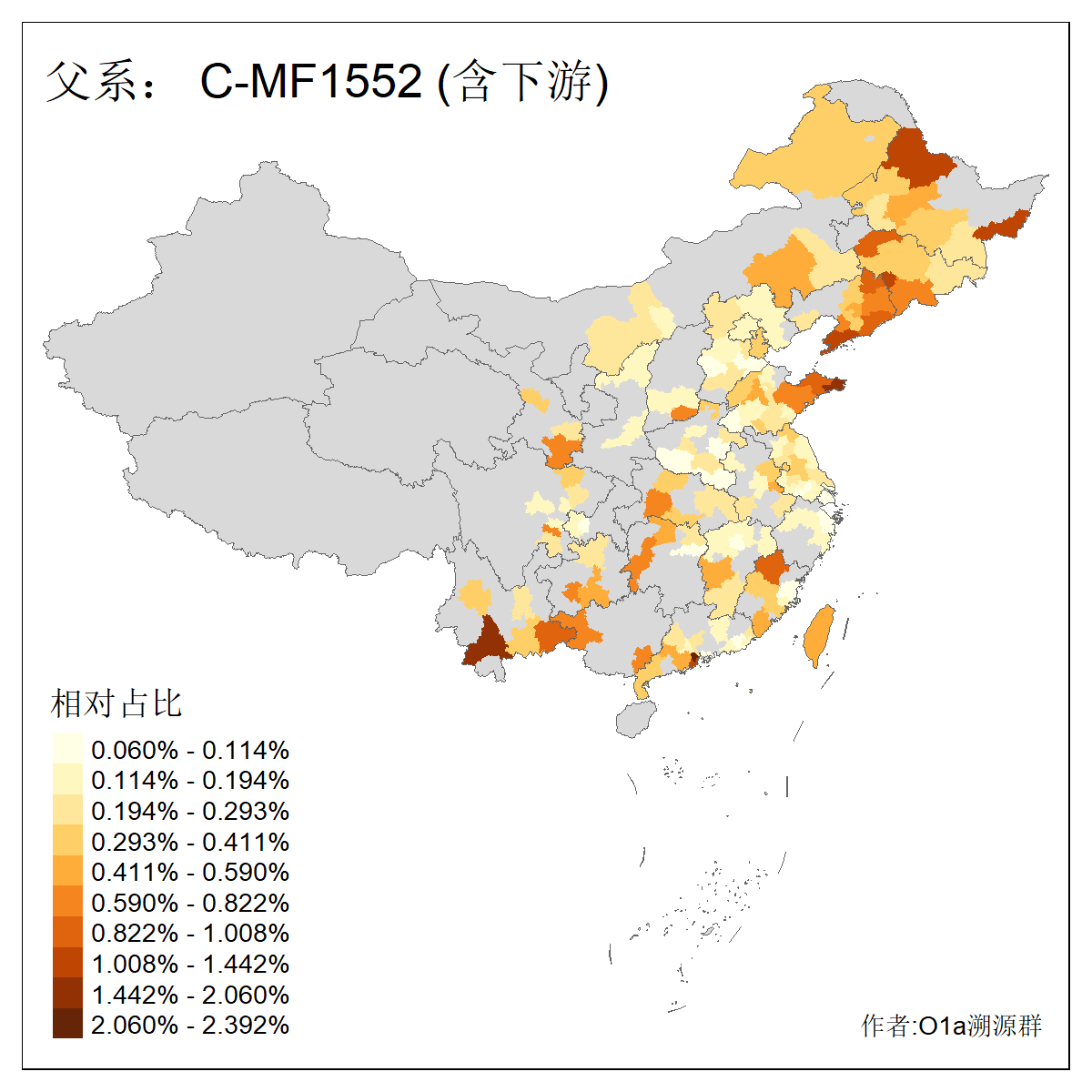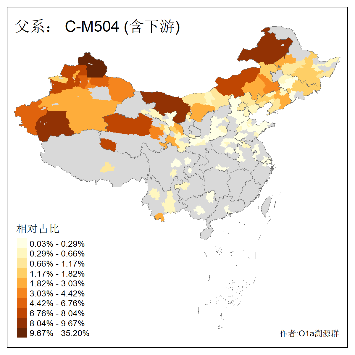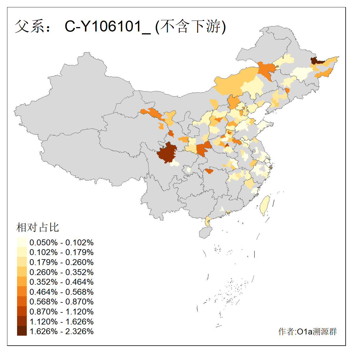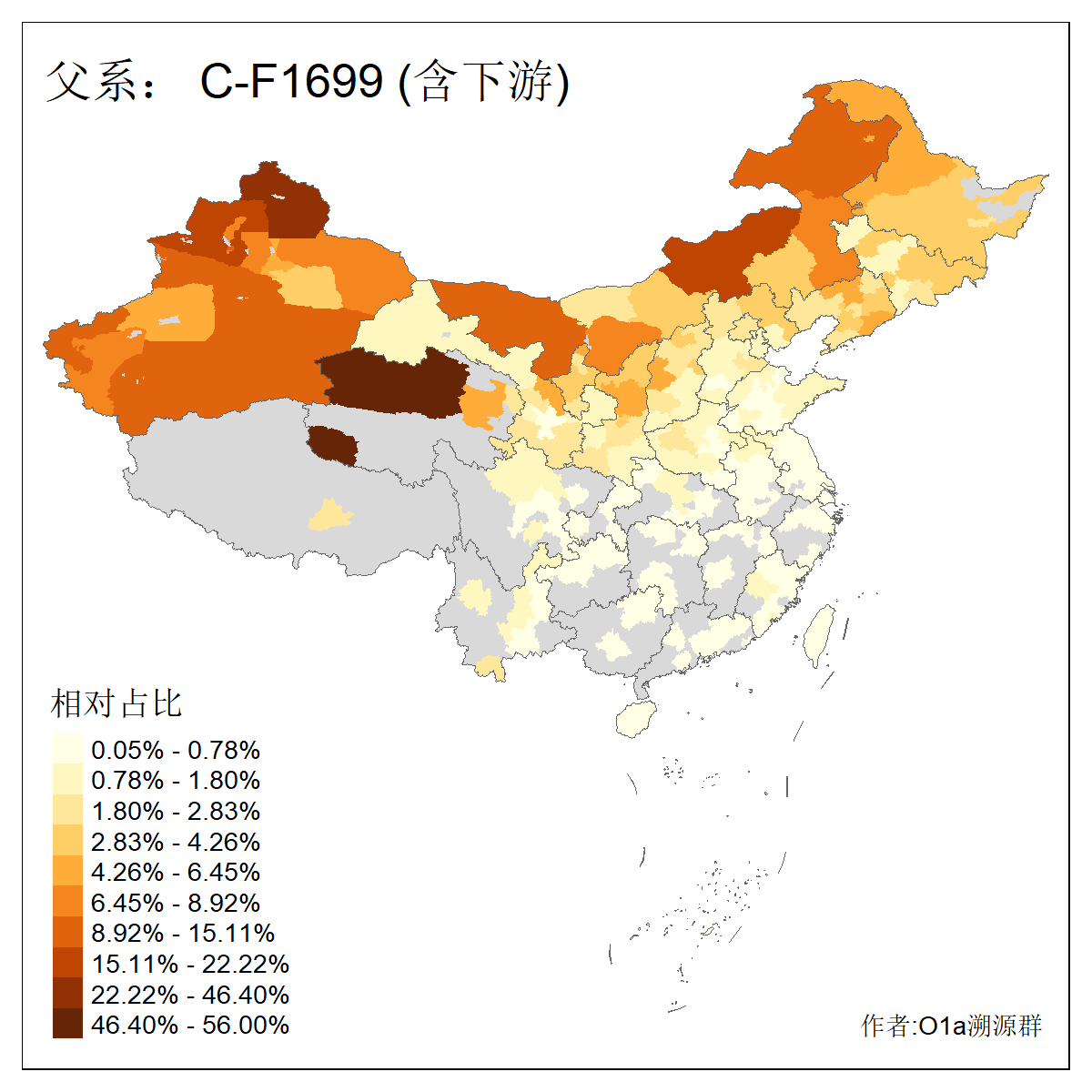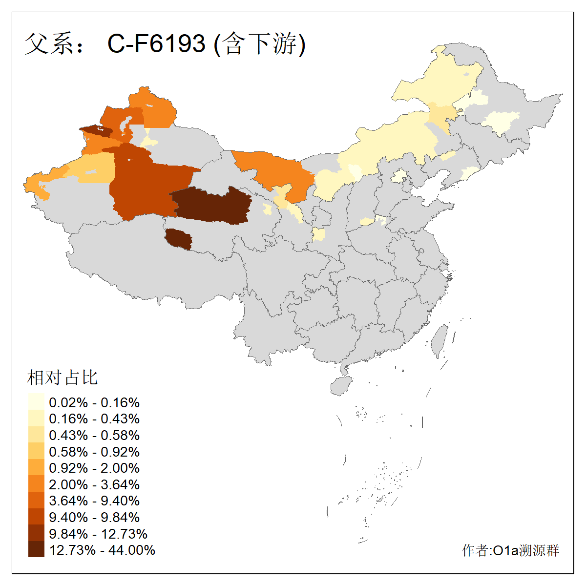 | C-M130_C-M217_C-L1373_C-F3447_C-F1699_C-Y6715_C-M504_C-Y4519_C-Y11121_C-F3796 | 2810 | 0.276% | 553人(含下游) 关:27 李:27 张:21 吴:19 王:18 阿:16 艾:14 赵:14 刘:12 巴:12 何:11 哈:11 包:10 白:10 ![]() | 101人(不含下游) 刘:8 李:8 吴:6 赵:6 张:5 王:5 赫:5 南:4 柴:4 火:3 郭:3 何:2 佟:2 傅:2 ![]() |