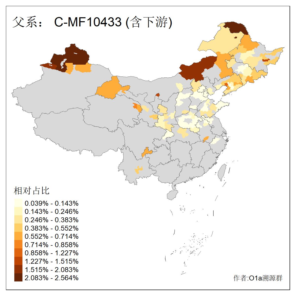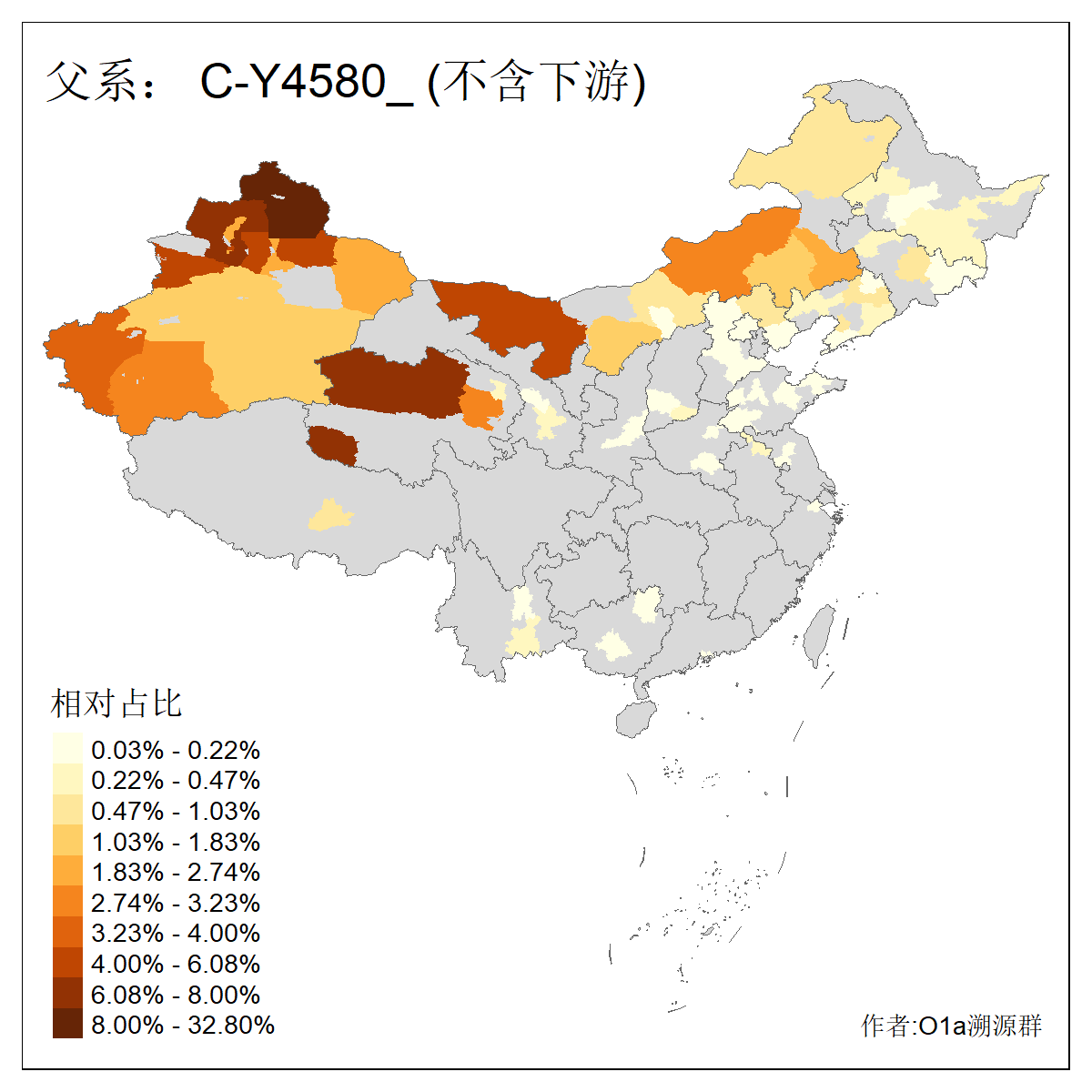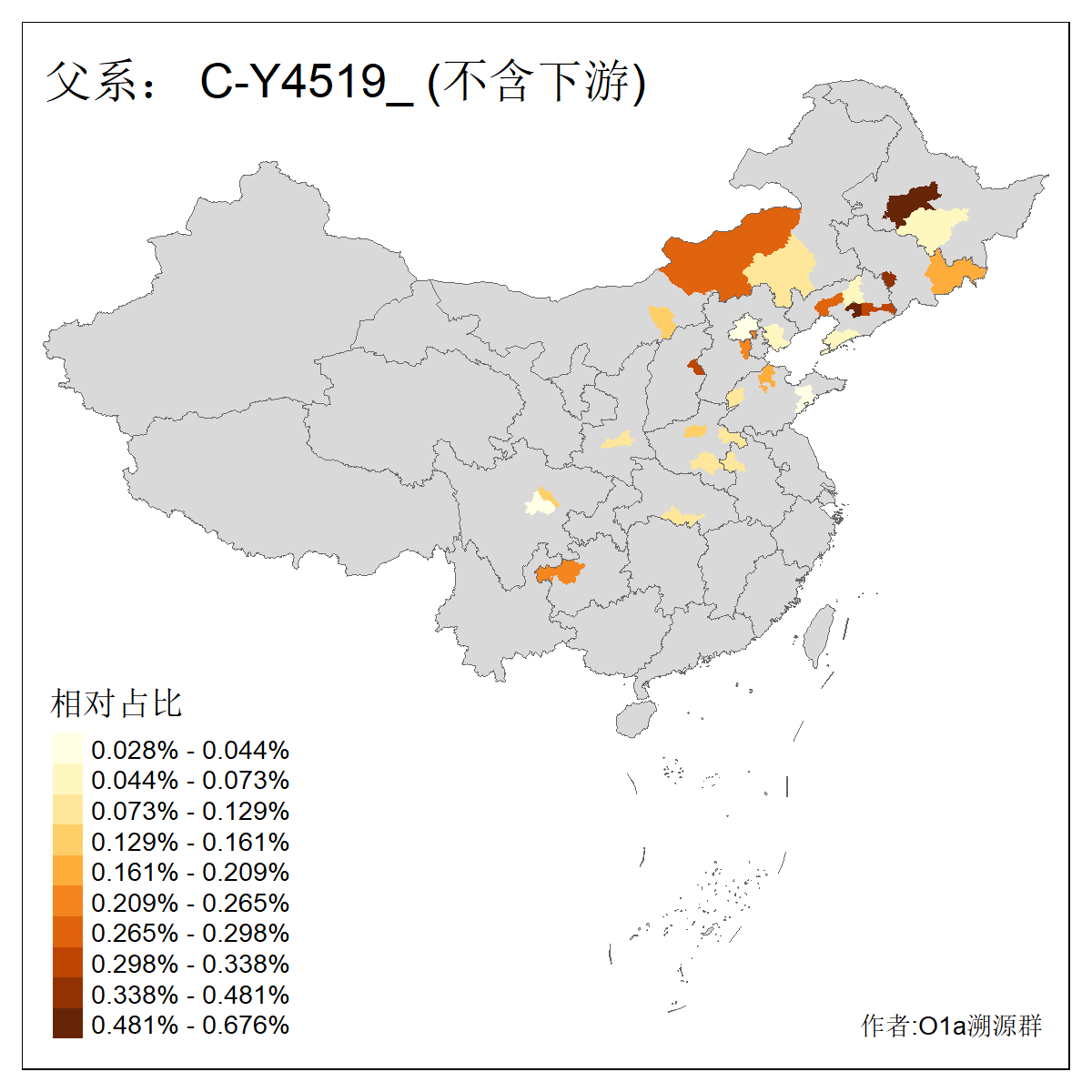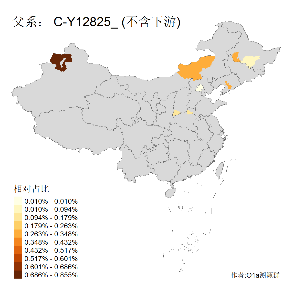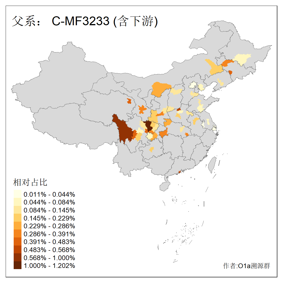 | C-M130_C-M217_C-L1373_C-F3447_C-F1699_C-Y6715_C-M504_C-Y4519_C-Y11121_C-F3796 | 2810 | 0.276% | 553人(含下游) 关:27 李:27 张:21 吴:19 王:18 阿:16 艾:14 赵:14 刘:12 巴:12 何:11 哈:11 包:10 白:10 ![]() | 101人(不含下游) 刘:8 李:8 吴:6 赵:6 张:5 王:5 赫:5 南:4 柴:4 火:3 郭:3 何:2 佟:2 傅:2 ![]() |