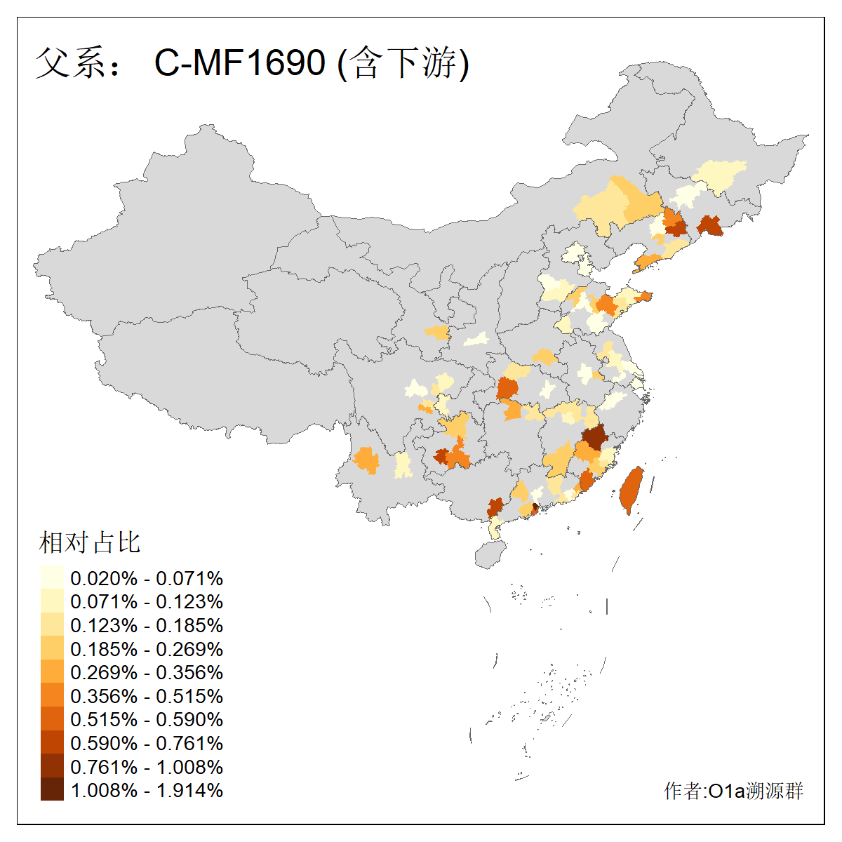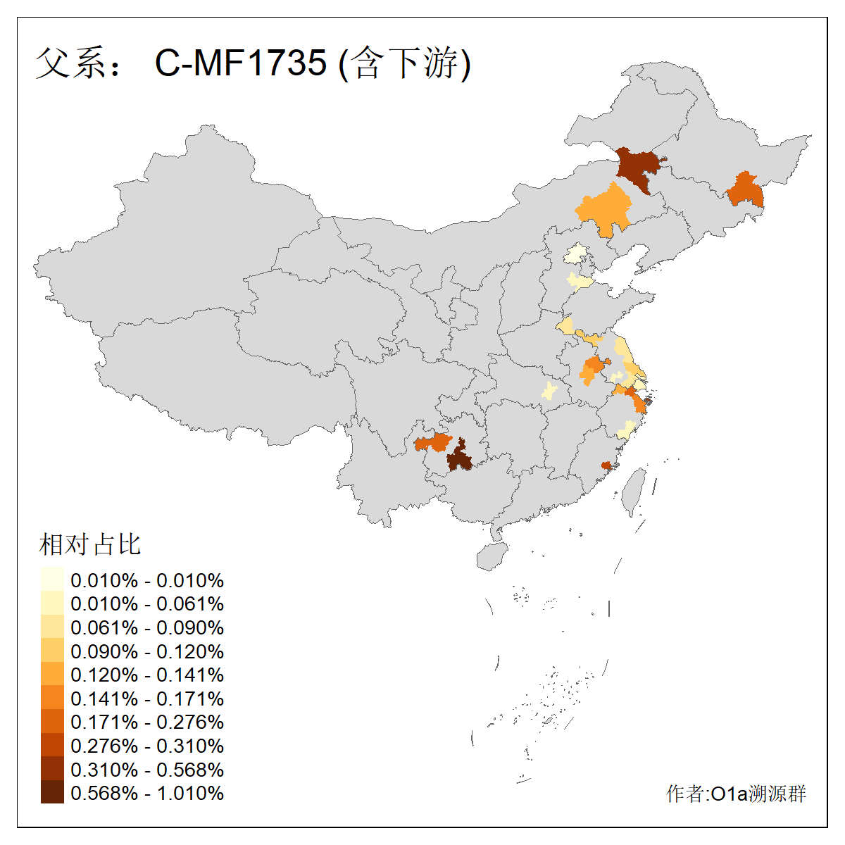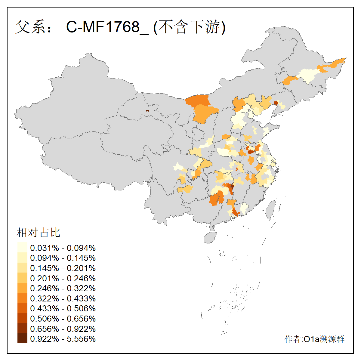 | C-M130_C-M217_C-F1067_C-CTS2_C-F978_C-F3895_C-CTS2657_C-A14901_C-A14909_C-A14908 | 7120 | 0.173% | 443人(含下游) 李:38 王:32 陈:28 张:25 刘:21 周:16 郑:16 杨:13 徐:12 吴:10 董:9 胡:8 袁:8 黄:8 ![]() | 21人(不含下游) 刘:4 周:2 高:2 严:1 凌:1 商:1 张:1 徐:1 李:1 梅:1 田:1 薛:1 贾:1 郭:1 ![]() |