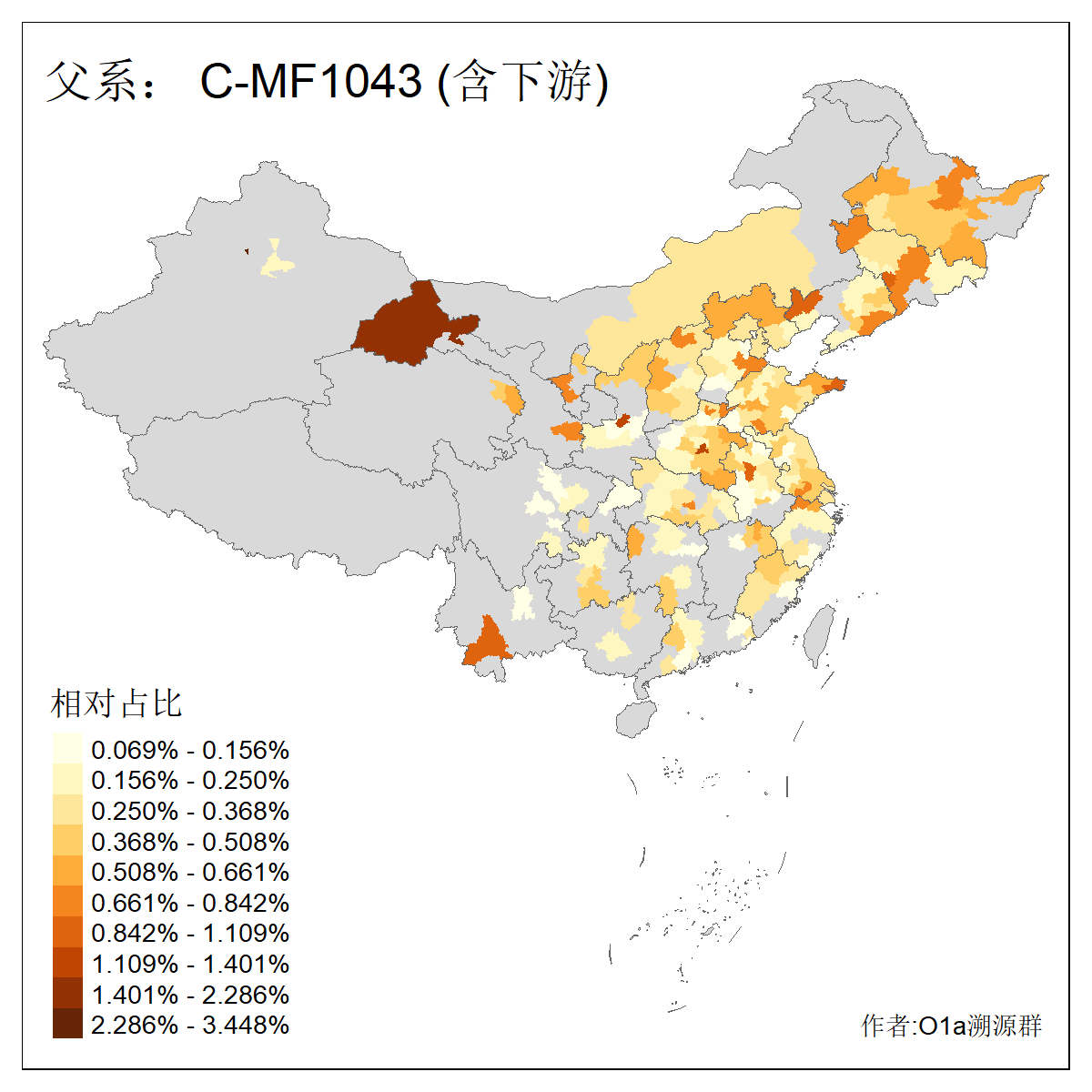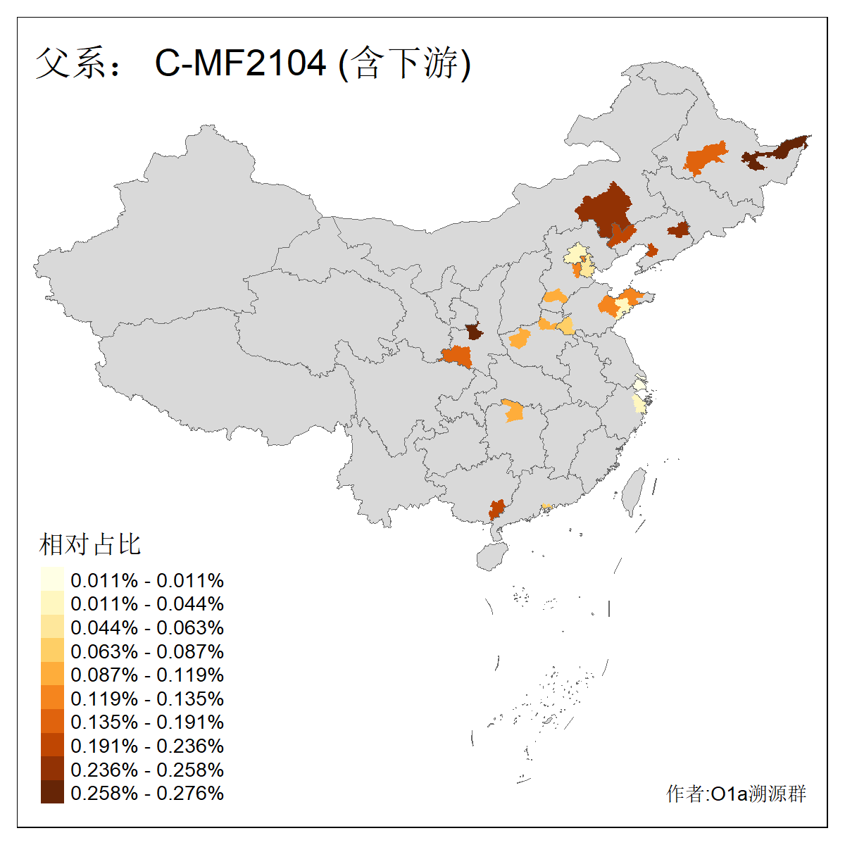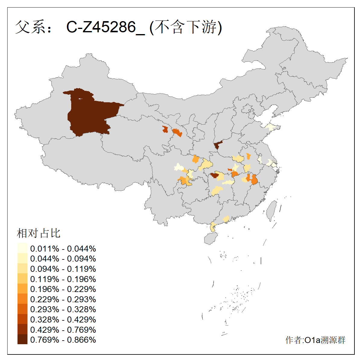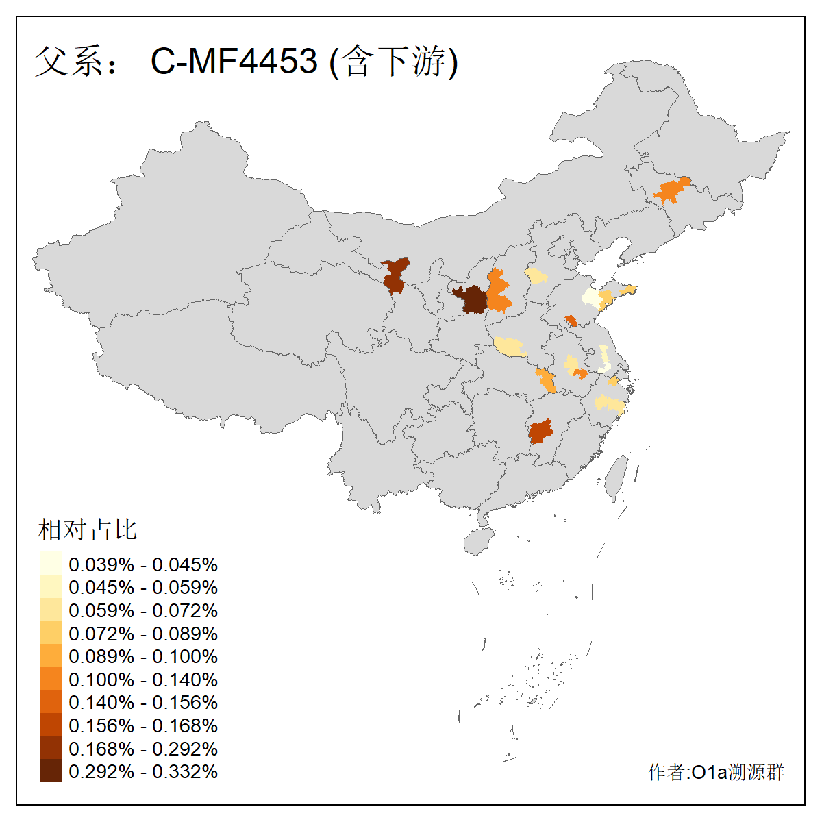 | C-M130_C-M217_C-F1067_C-CTS2_C-F978_C-F3895_C-CTS2657_C-A14901_C-A14909_C-A14908 | 7120 | 0.173% | 443人(含下游) 李:38 王:32 陈:28 张:25 刘:21 周:16 郑:16 杨:13 徐:12 吴:10 董:9 胡:8 袁:8 黄:8 ![]() | 21人(不含下游) 刘:4 周:2 高:2 严:1 凌:1 商:1 张:1 徐:1 李:1 梅:1 田:1 薛:1 贾:1 郭:1 ![]() |