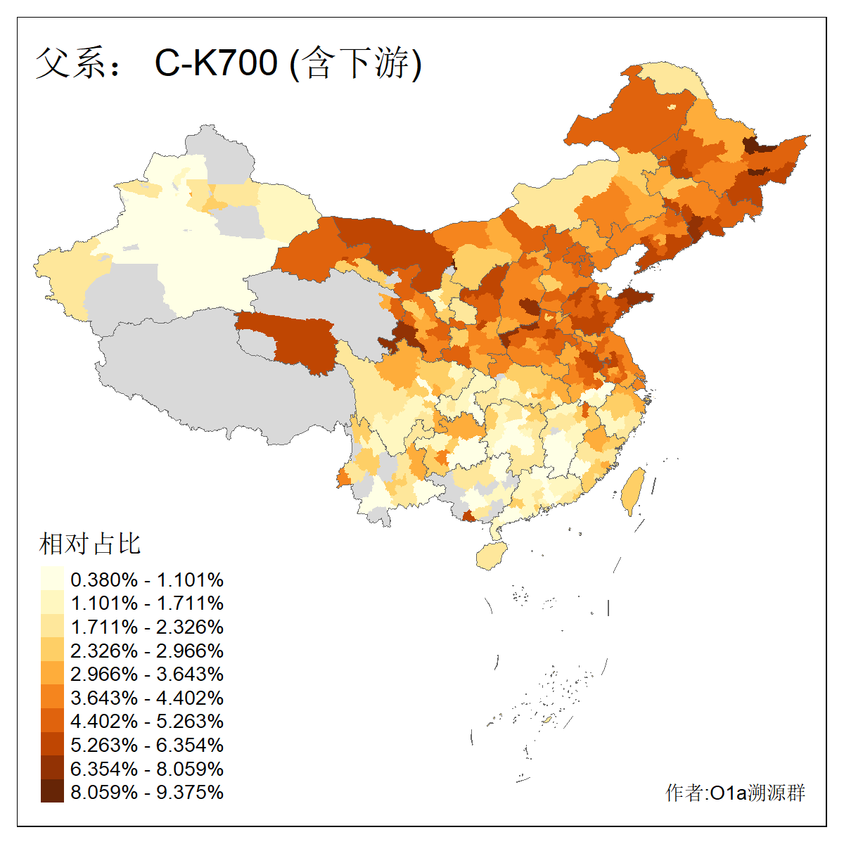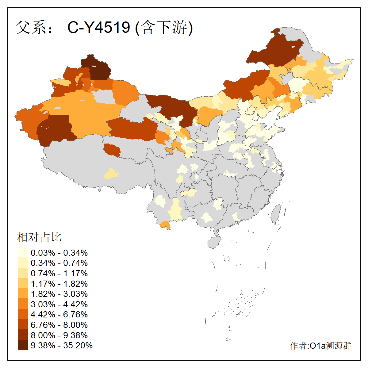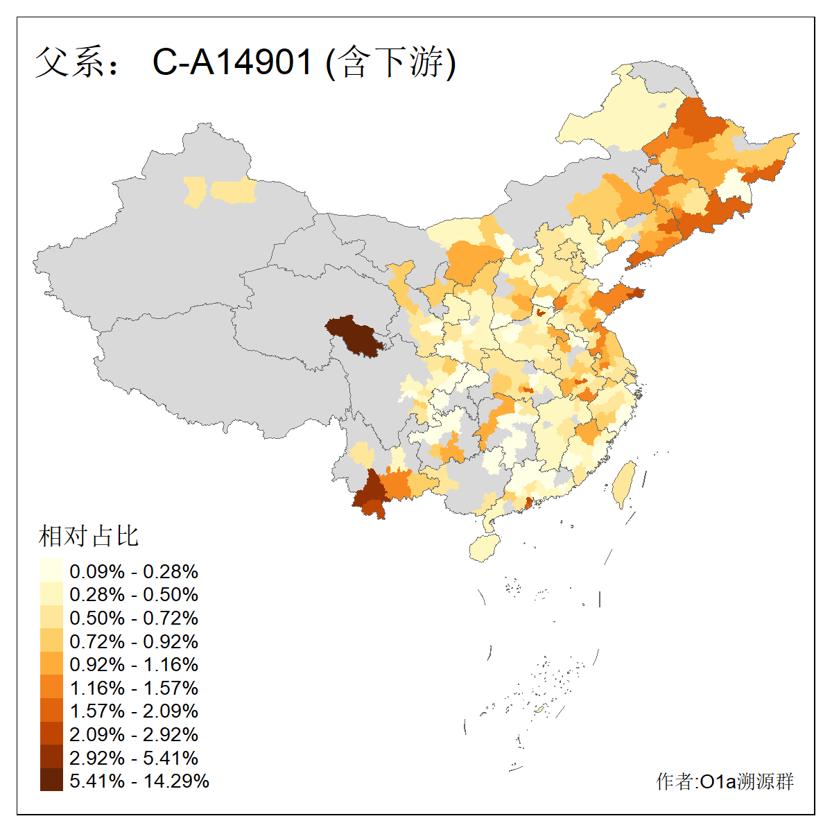 | C-M130_C-M217_C-F1067_C-CTS2_C-F978 | 10950 | 7.616% | 18667人(含下游) 王:1593 张:1346 李:1318 刘:955 陈:691 杨:653 赵:343 周:340 孙:302 马:294 徐:292 吴:282 黄:269 朱:228 ![]() | 0人(不含下游) |