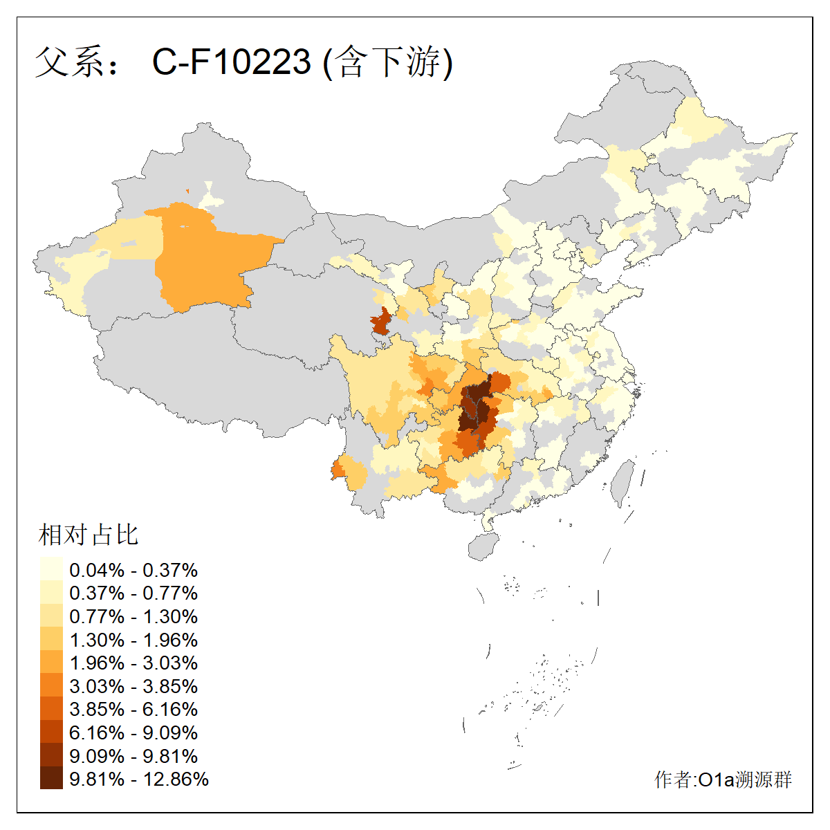 | C-M130_C-F3393_C-F1370_C-AM00694_C-AM00848_C-F8543_C-F13354_C-F9329_C-F14005 | 2460 | 0.107% | 151人(含下游) 张:13 李:13 陈:11 杨:10 梁:8 王:6 赵:6 刘:5 黎:5 吴:4 罗:4 丁:3 周:3 唐:3 ![]() | 81人(不含下游) 李:11 张:6 杨:6 王:5 陈:5 梁:4 丁:3 唐:3 喻:3 罗:3 赵:3 刘:2 周:2 涂:2 ![]() |