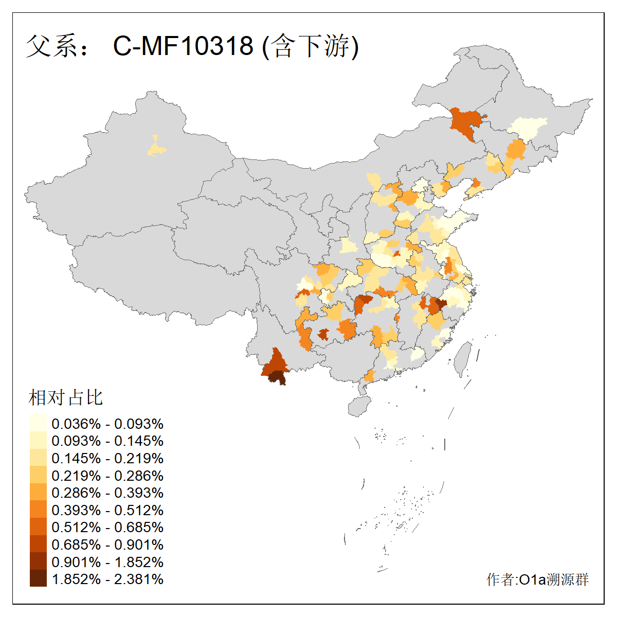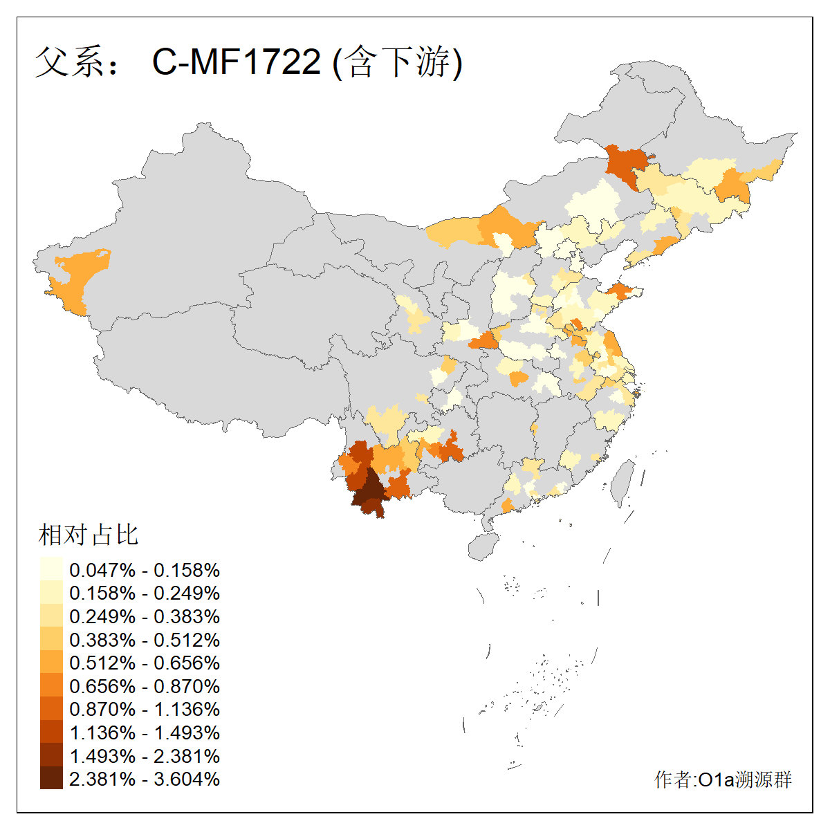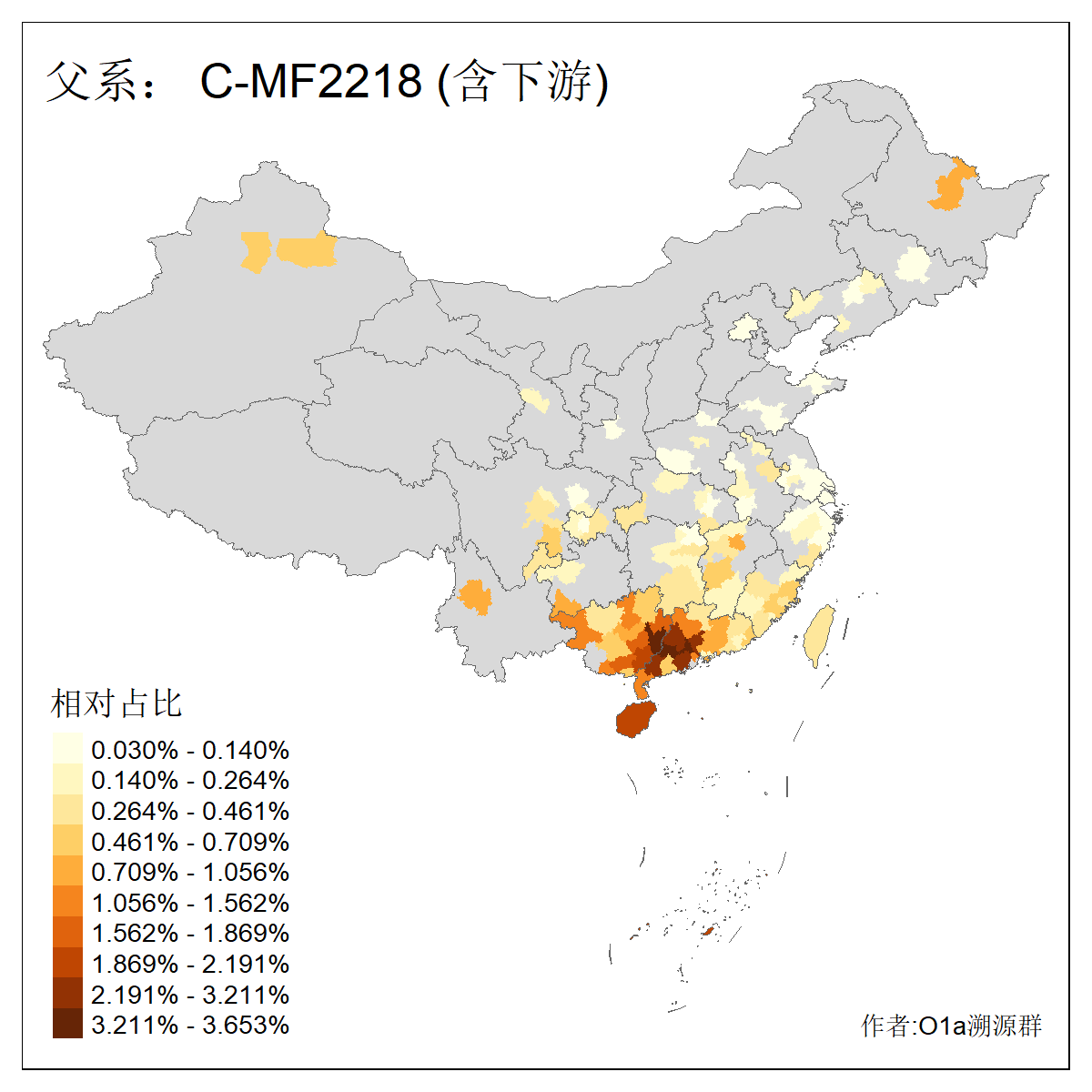 | C-M130_C-F3393_C-F1370_C-AM00694_C-AM00848 | 4310 | 0.198% | 293人(含下游) 李:26 张:17 陈:16 杨:13 梁:13 黄:13 刘:12 罗:12 王:11 赵:11 向:5 吴:5 邱:5 马:5 ![]() | 72人(不含下游) 李:10 梁:5 刘:4 陈:4 罗:3 蒙:3 马:3 高:3 张:2 潘:2 牟:2 陆:2 韦:2 余:1 ![]() |