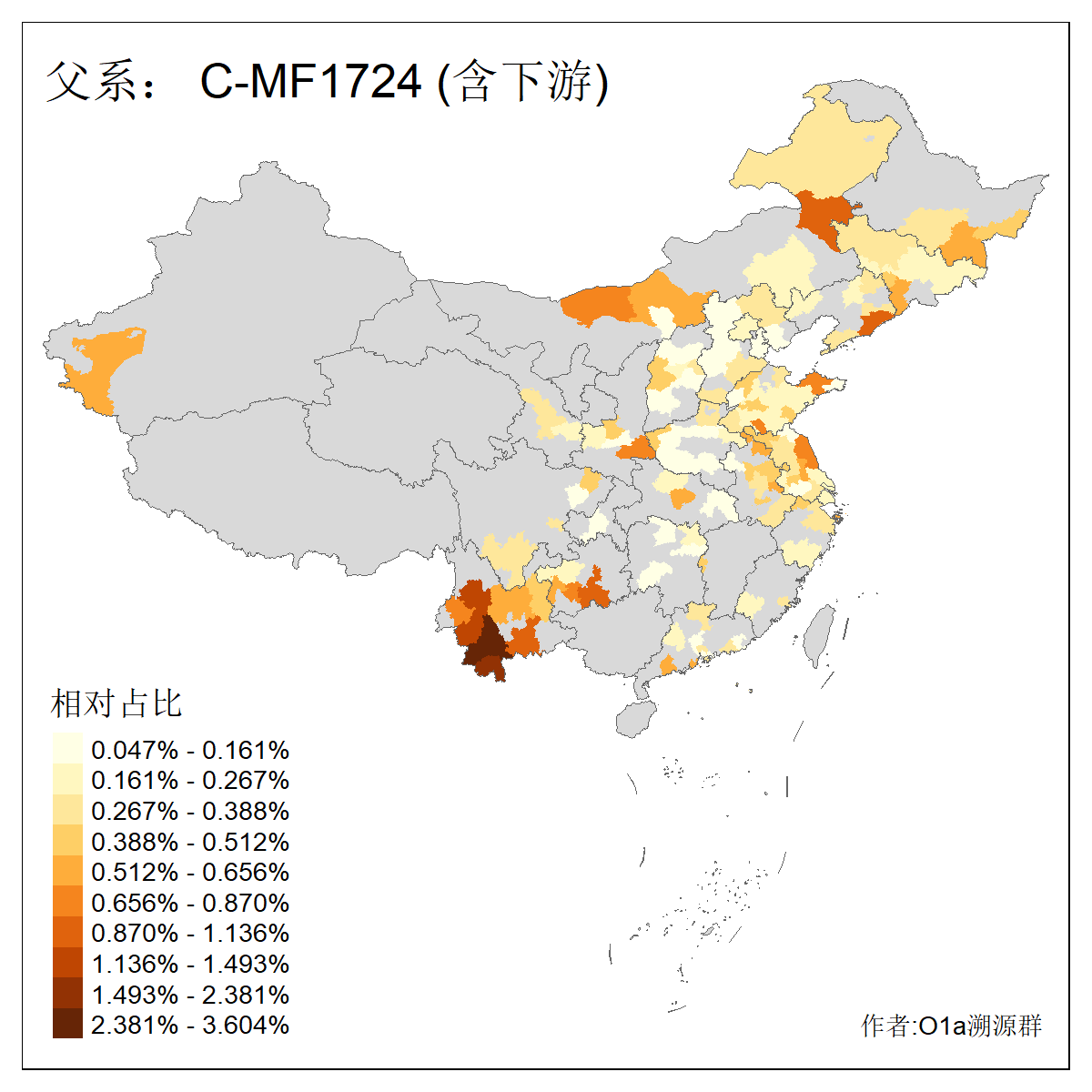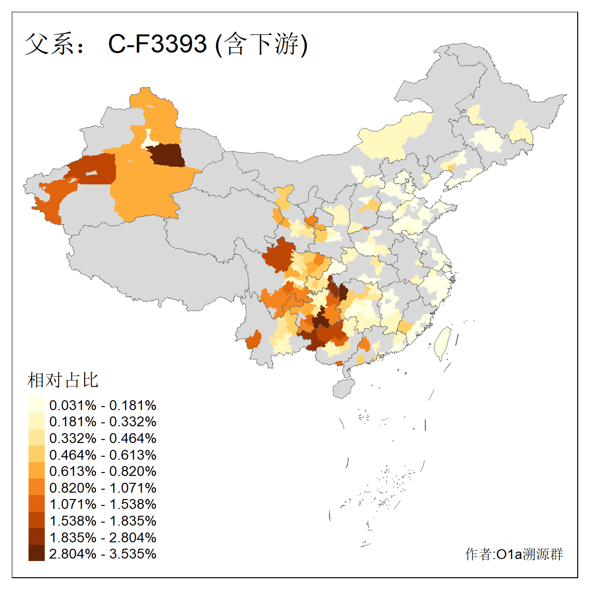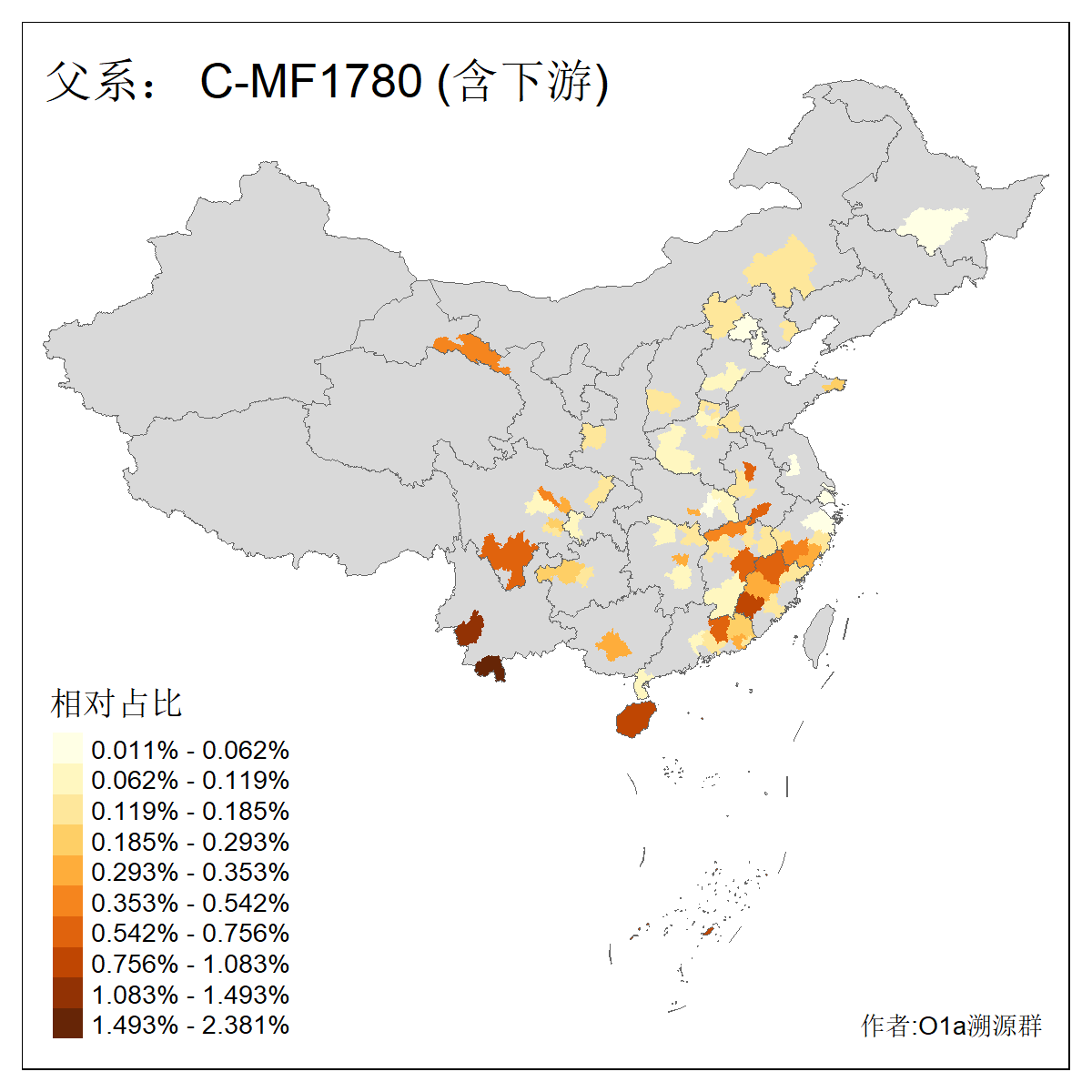 | C-M130_C-F3393_C-F1370_C-AM00694_C-AM00848 | 4310 | 0.198% | 293人(含下游) 李:26 张:17 陈:16 杨:13 梁:13 黄:13 刘:12 罗:12 王:11 赵:11 向:5 吴:5 邱:5 马:5 ![]() | 72人(不含下游) 李:10 梁:5 刘:4 陈:4 罗:3 蒙:3 马:3 高:3 张:2 潘:2 牟:2 陆:2 韦:2 余:1 ![]() |