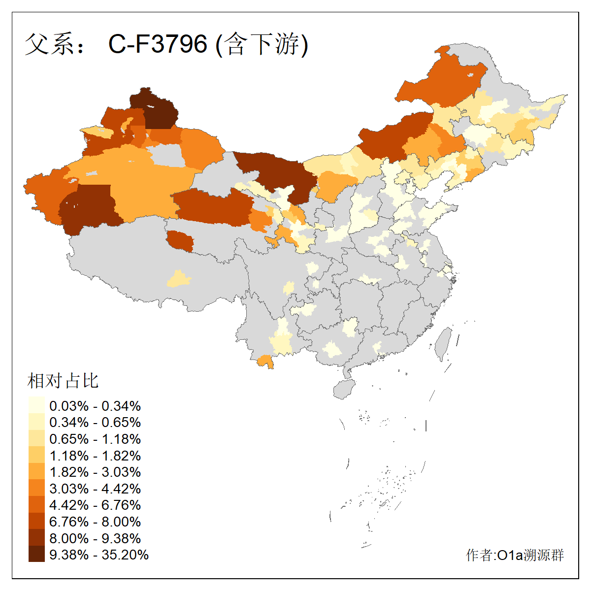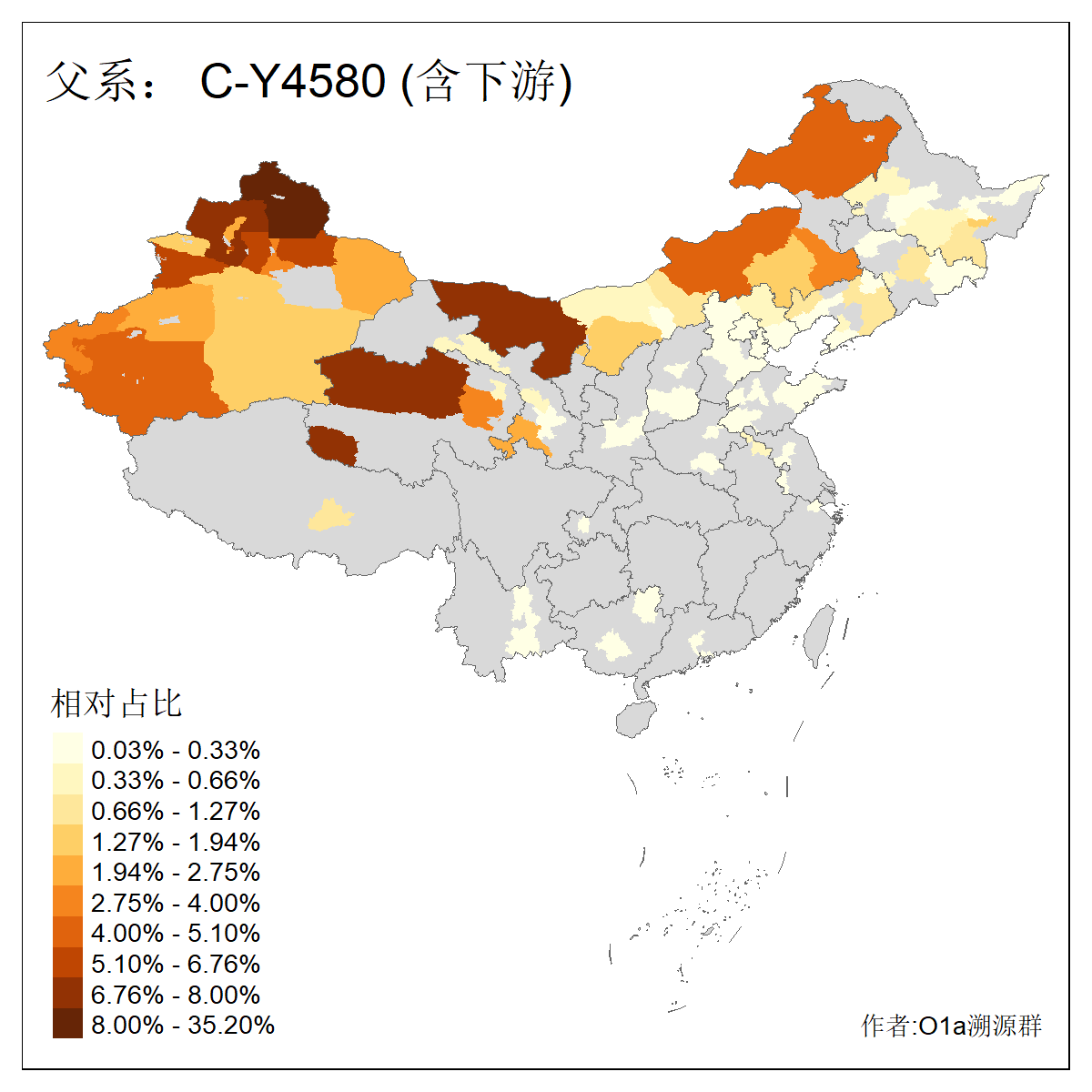 | C-M130_C-M217_C-L1373_C-F3447_C-F1699_C-Y6715_C-M504_C-Y4519_C-Y11121 | 3480 | 0.286% | 582人(含下游) 李:28 关:27 张:23 吴:19 王:19 赵:17 阿:16 艾:14 刘:13 巴:12 白:12 马:12 何:11 哈:11 ![]() | 20人(不含下游) 张:2 白:2 马:2 乌:1 仝:1 周:1 孙:1 封:1 曹:1 杨:1 王:1 罕:1 赫:1 赵:1 ![]() |