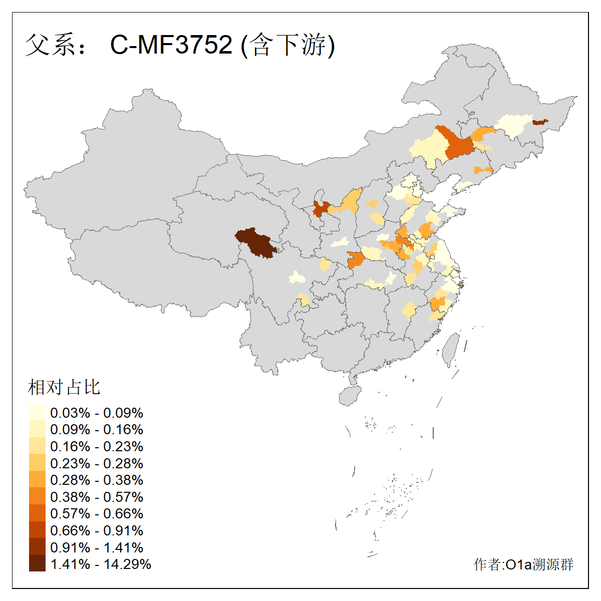 | C-M130_C-M217_C-F1067_C-CTS2_C-F978_C-F3895_C-CTS2657_C-A14901_C-A14909_C-MF1553_C-MF3019 | 4070 | 0.068% | 163人(含下游) 王:41 李:17 张:14 赵:13 韩:6 孙:4 陈:4 刘:3 沈:3 郭:3 黄:3 冉:2 吴:2 夏:2 ![]() | 92人(不含下游) 王:17 李:14 赵:12 张:8 韩:6 刘:3 孙:2 杨:2 沈:2 程:2 郭:2 冉:1 史:1 吴:1 ![]() |
