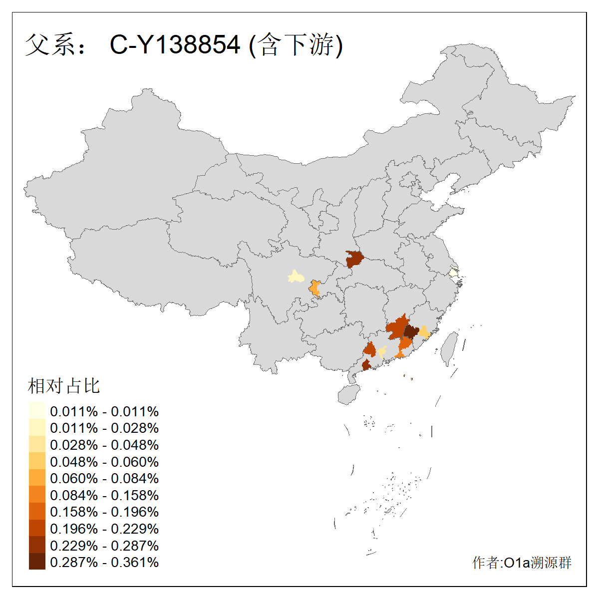 | C-M130_C-M217_C-L1373_C-F3447_C-F1699_C-Y6715_C-M504_C-Y4519_C-Y11121_C-F3796_C-Y11098_C-FGC16589_C-Y4580_C-Y4633 | 1390 | 0.158% | 94人(含下游) 关:8 张:7 李:5 何:4 包:4 巴:4 王:3 艾:3 陈:3 叶:2 吴:2 安:2 白:2 阿:2 ![]() | 4人(不含下游) 何:1 关:1 吴:1 孙:1 ![]() |