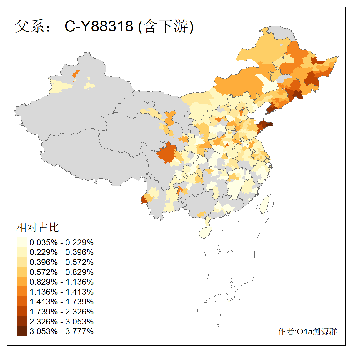 | C-M130_C-M217_C-F1067 | 33790 | 7.879% | 19232人(含下游) 王:1620 张:1371 李:1362 刘:982 陈:732 杨:668 周:353 赵:345 孙:304 吴:300 黄:299 徐:296 马:296 朱:238 ![]() | 0人(不含下游) |