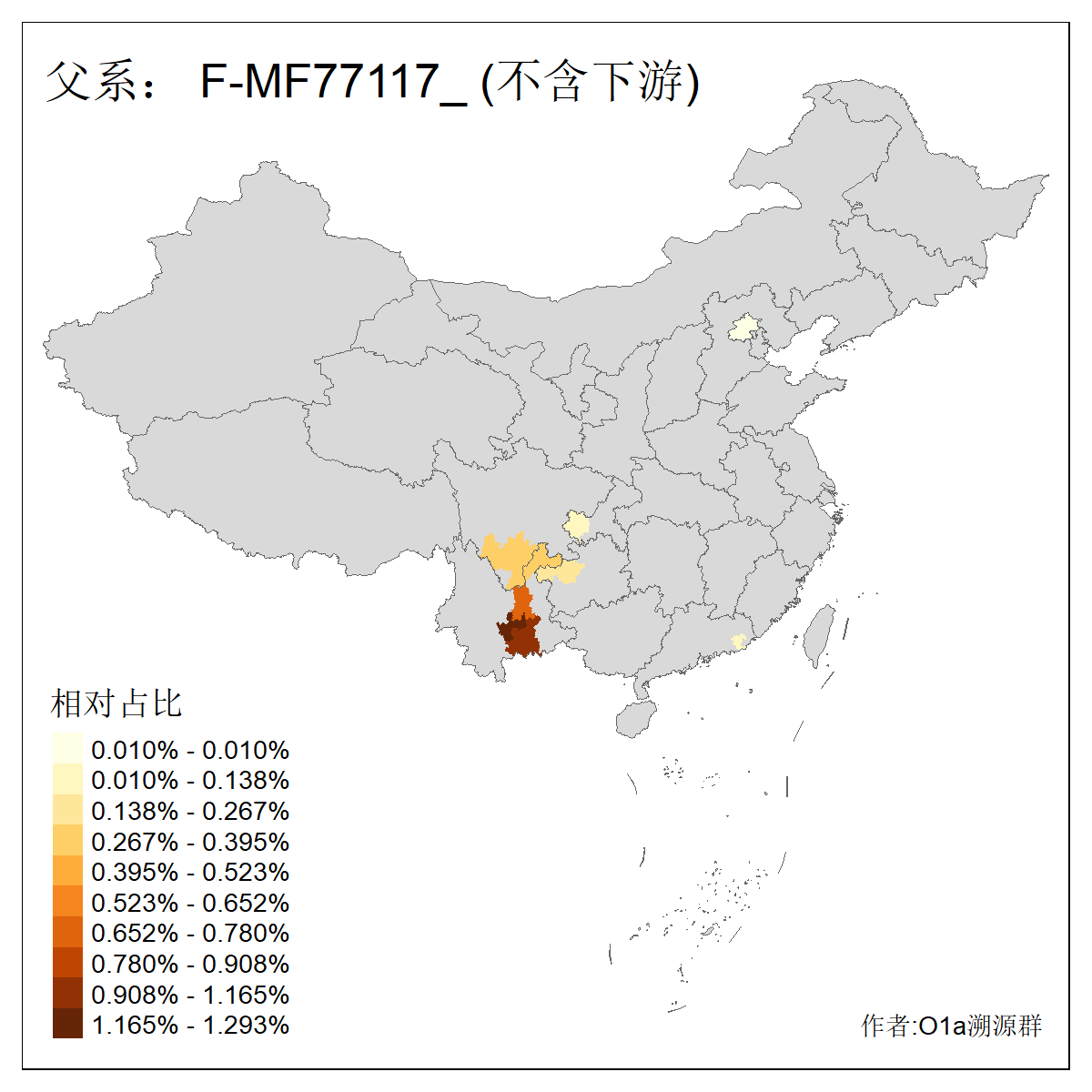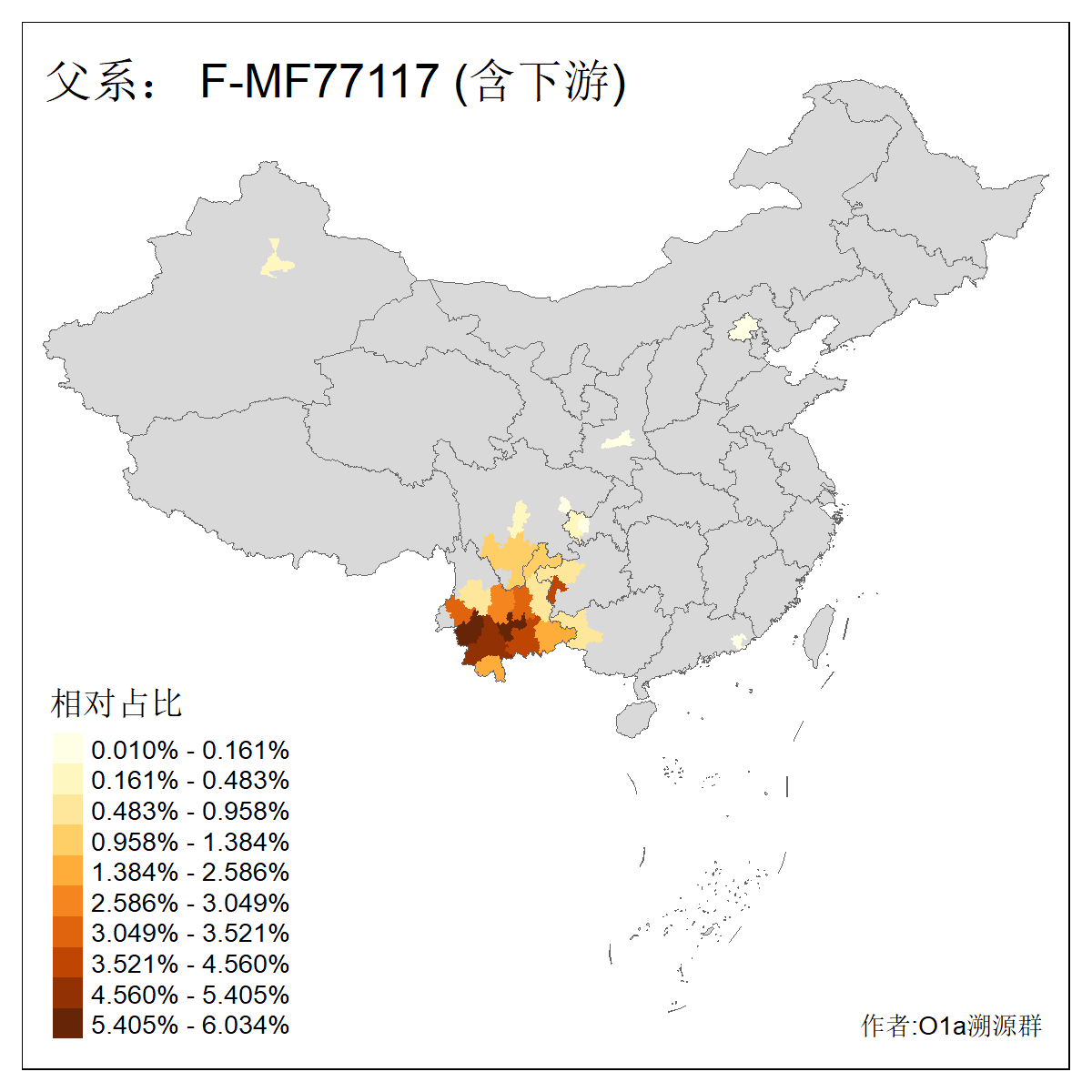 | F-M89_F-Y27277_F-M427_F-MF77117 | 3830 | 0.117% | 119人(含下游) 李:24 张:7 陈:7 杨:5 王:4 方:3 普:3 段:3 罗:3 赵:3 阿:3 刘:2 唐:2 姜:2 ![]() | 21人(不含下游) 李:6 唐:2 张:2 刘:1 可:1 姜:1 施:1 易:1 朱:1 柏:1 毕:1 法:1 邓:1 都:1 ![]() |