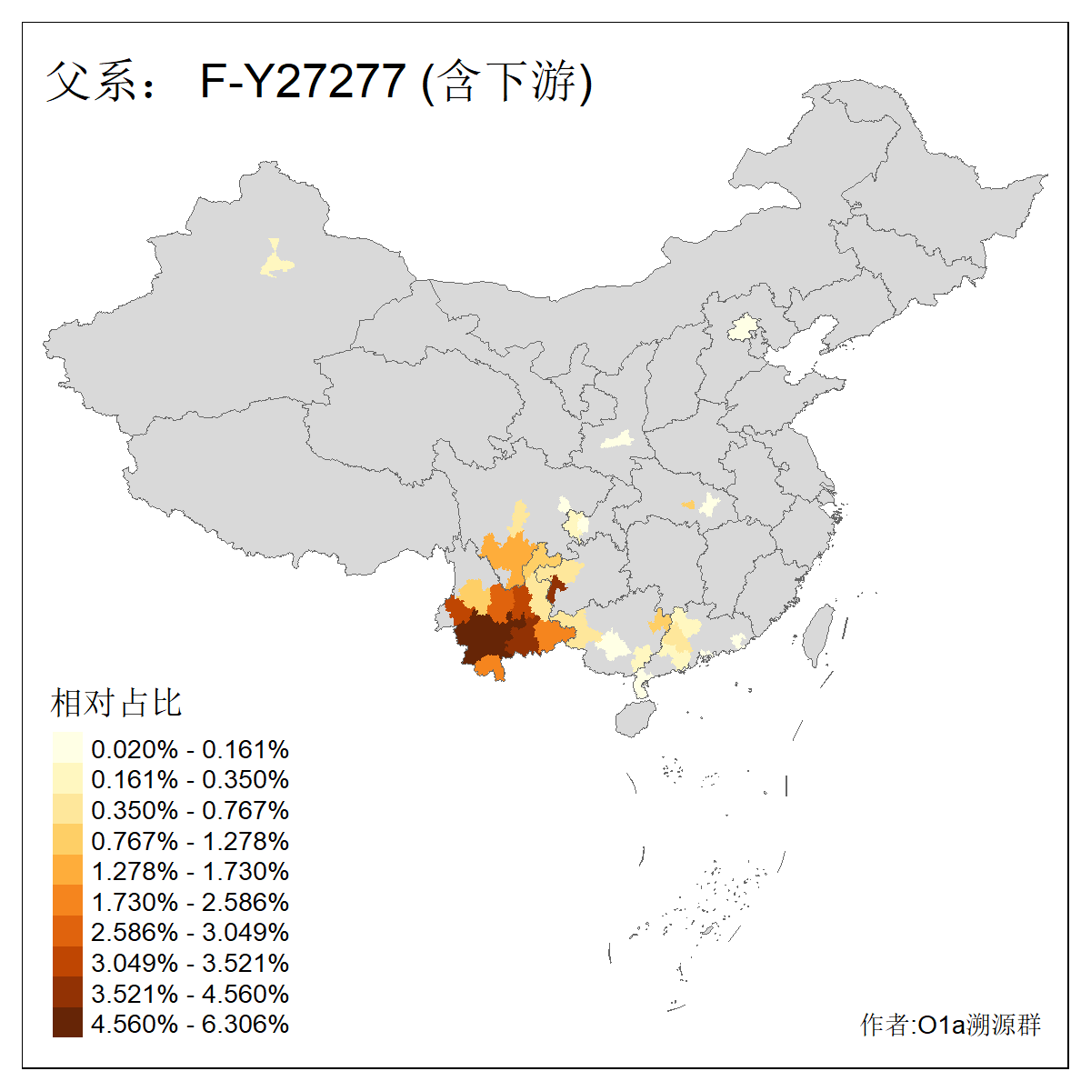 | F-M89_F-Y27277_F-M427 | 15600 | 0.121% | 123人(含下游) 李:24 张:8 陈:7 杨:6 赵:5 王:4 方:3 普:3 段:3 罗:3 阿:3 刘:2 唐:2 姜:2 ![]() | 0人(不含下游) |