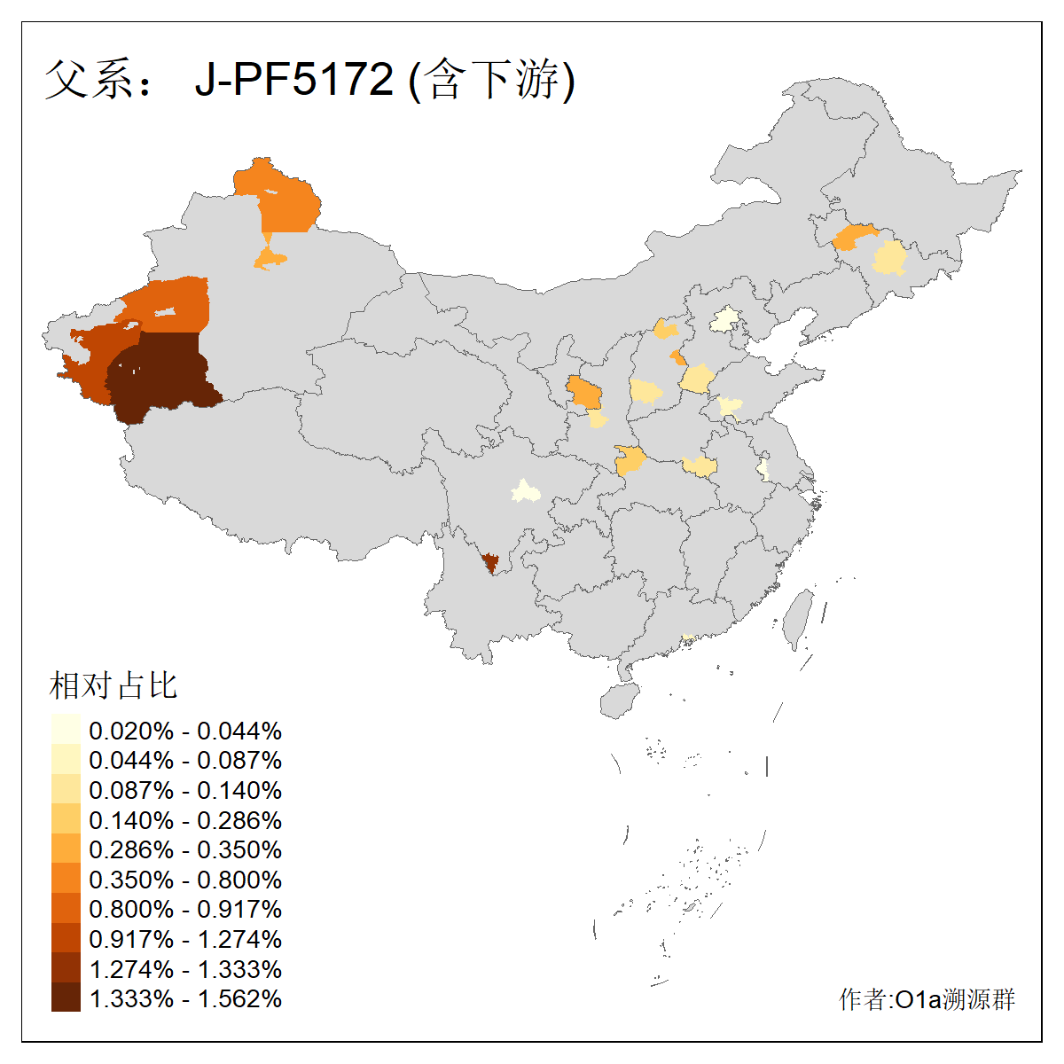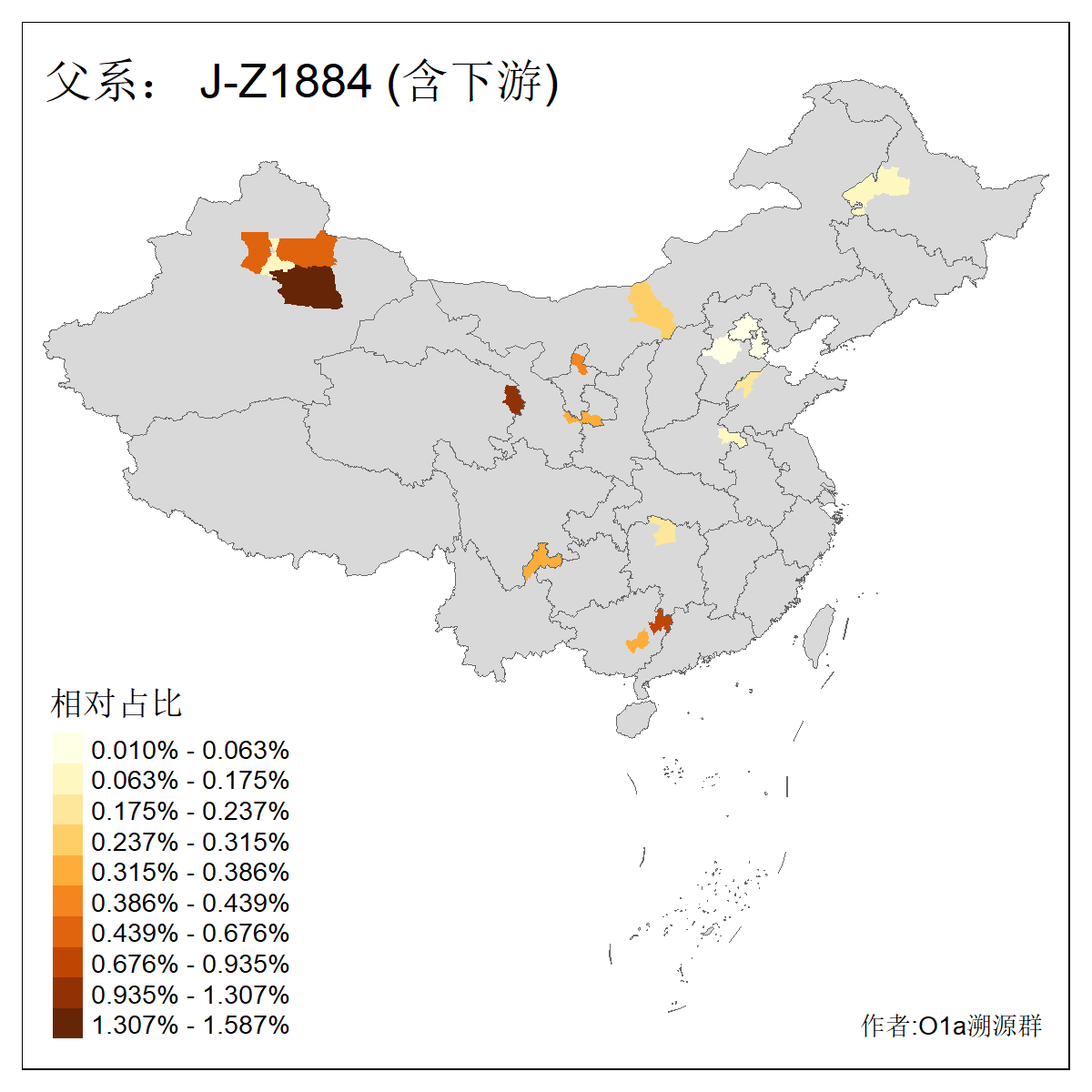 | J-M304_J-M172_J-M410_J-PF4610_J-F4326_J-PF5087_J-AM01359_J-L24 | 12880 | 0.184% | 242人(含下游) 张:25 王:18 刘:14 李:11 杨:10 程:10 马:10 陈:9 何:7 贺:5 吴:4 田:4 石:4 赵:4 ![]() | 1人(不含下游) 罗:1 ![]() |