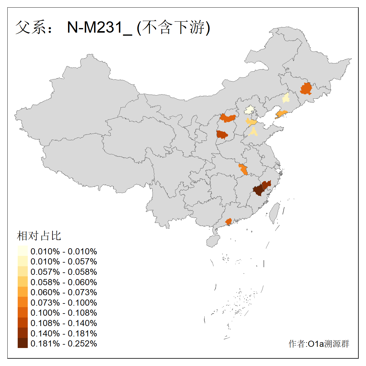 | N-M231 | 24490 | 6.418% | 15243人(含下游) 王:1214 张:1171 李:993 刘:665 陈:663 杨:428 赵:339 吴:297 周:280 黄:271 孙:248 朱:238 徐:231 郑:206 ![]() | 12人(不含下游) 王:2 余:1 周:1 战:1 曹:1 汤:1 胡:1 舒:1 陈:1 ![]() |