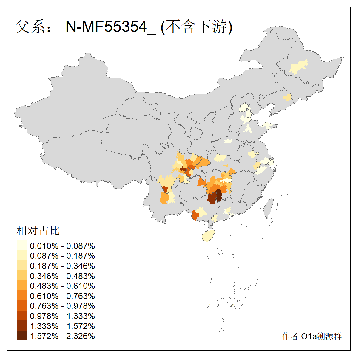 | N-M231_N-CTS833_N-F963_N-F1206_N-F2584_N-M46_N-CTS6128 | 10970 | 0.336% | 676人(含下游) 张:74 王:73 李:44 刘:41 杨:19 赵:18 许:14 陈:14 马:13 高:13 白:12 贺:12 郭:11 冯:10 ![]() | 1人(不含下游) 张:1 ![]() |