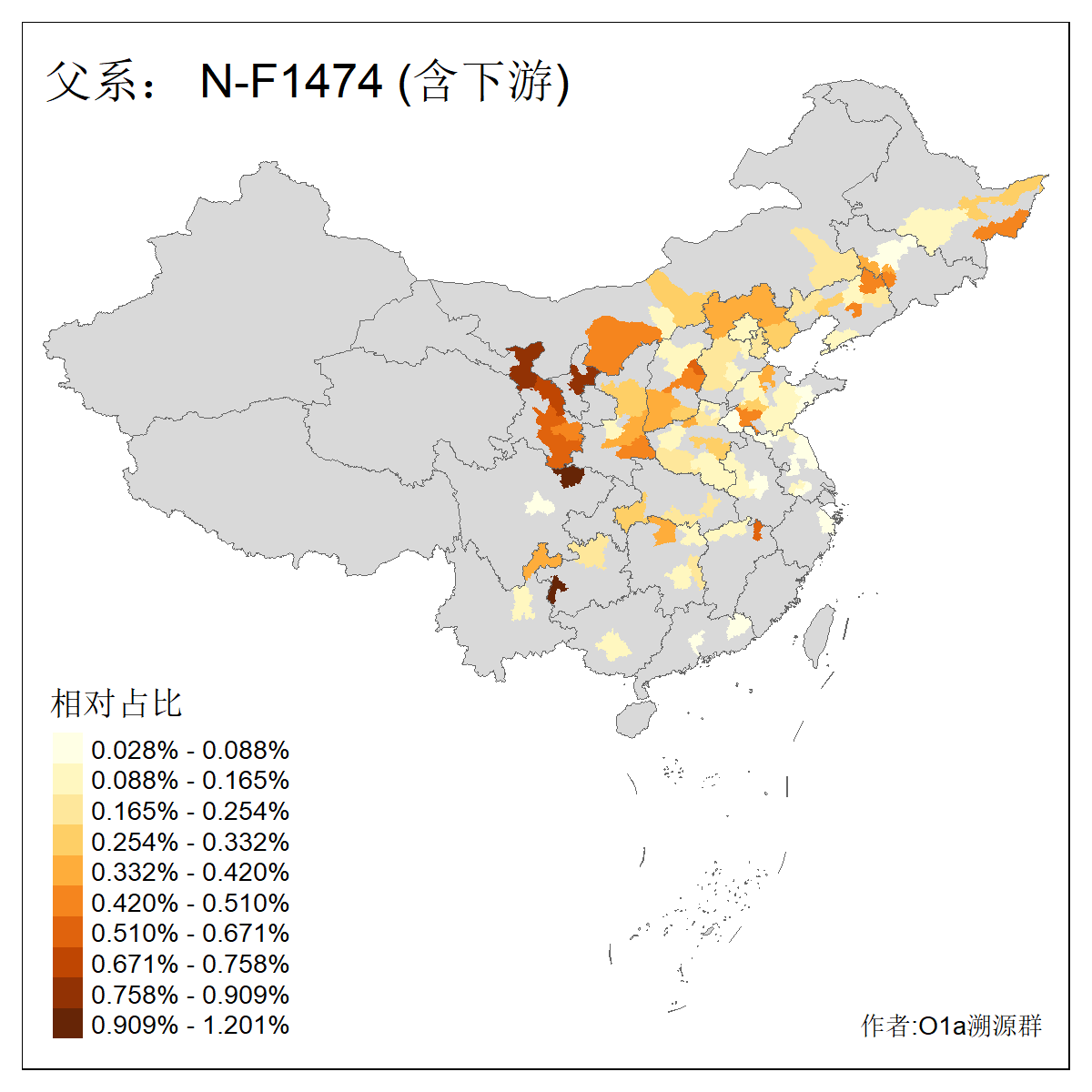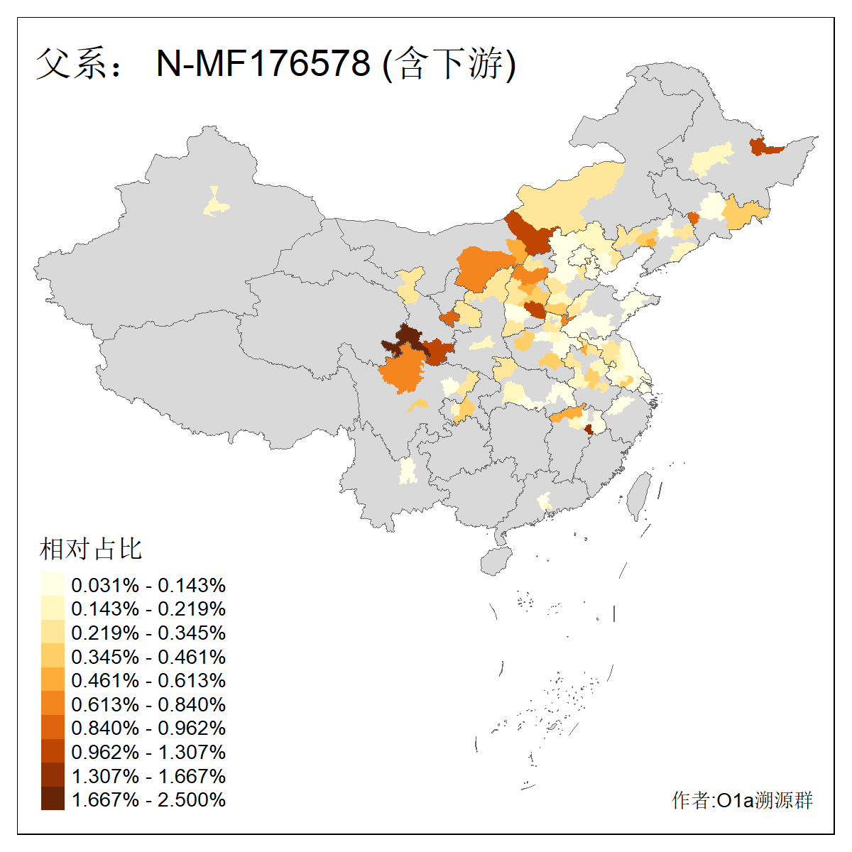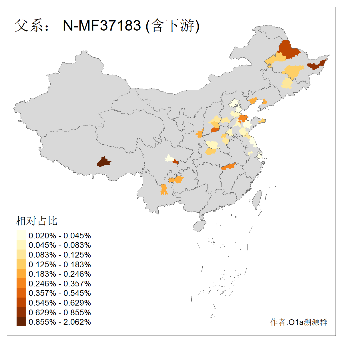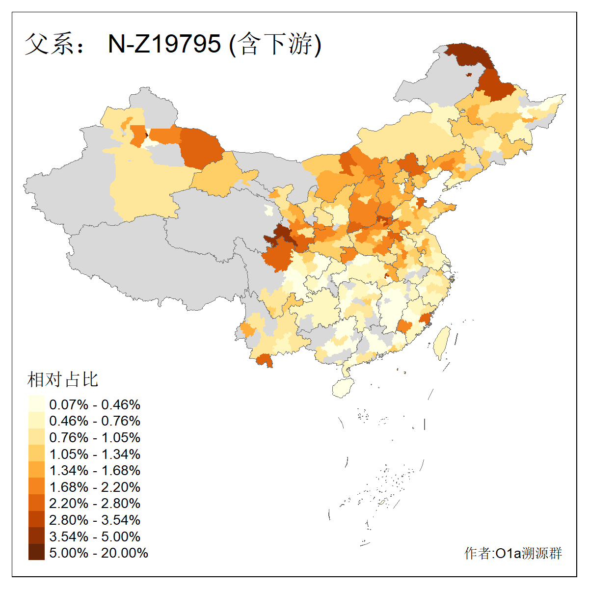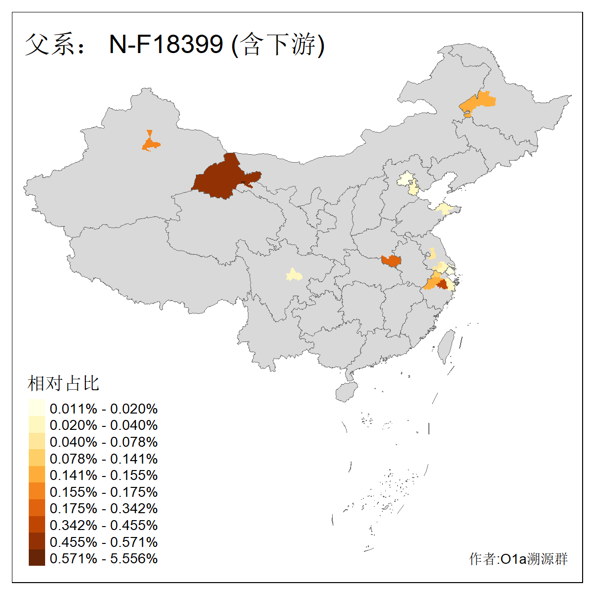 | N-M231_N-CTS833_N-F963_N-F1206_N-F2584_N-M46_N-CTS6128_N-Z1957_N-M2126_N-CTS11808 | 6340 | 0.100% | 201人(含下游) 张:16 刘:13 李:9 杨:8 王:8 白:8 高:7 关:4 赵:4 韩:4 吴:3 许:3 郭:3 陈:3 ![]() | 18人(不含下游) 李:3 党:2 雷:2 何:1 吾:1 张:1 朱:1 杨:1 武:1 王:1 艾:1 薛:1 许:1 阿:1 ![]() |