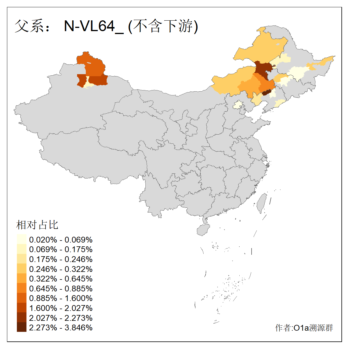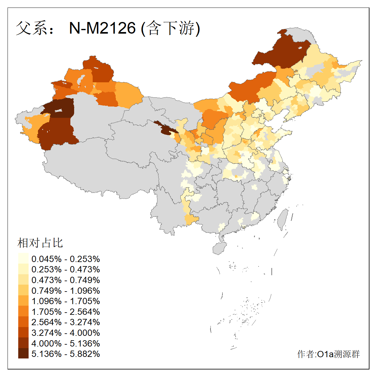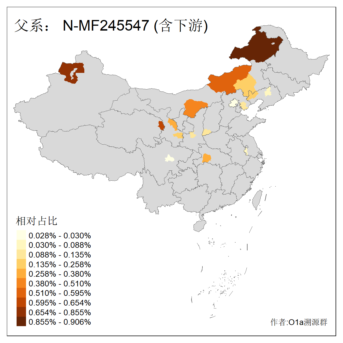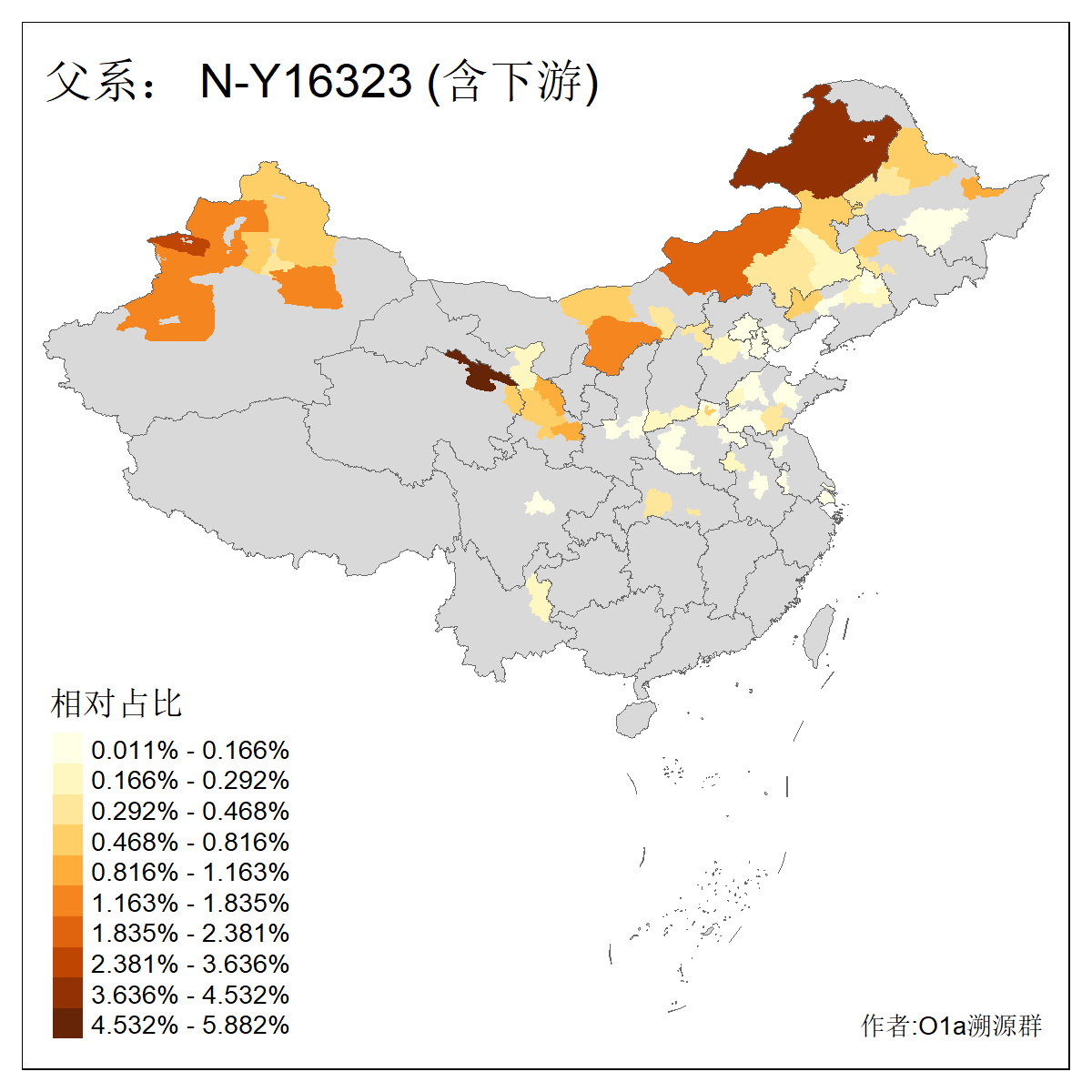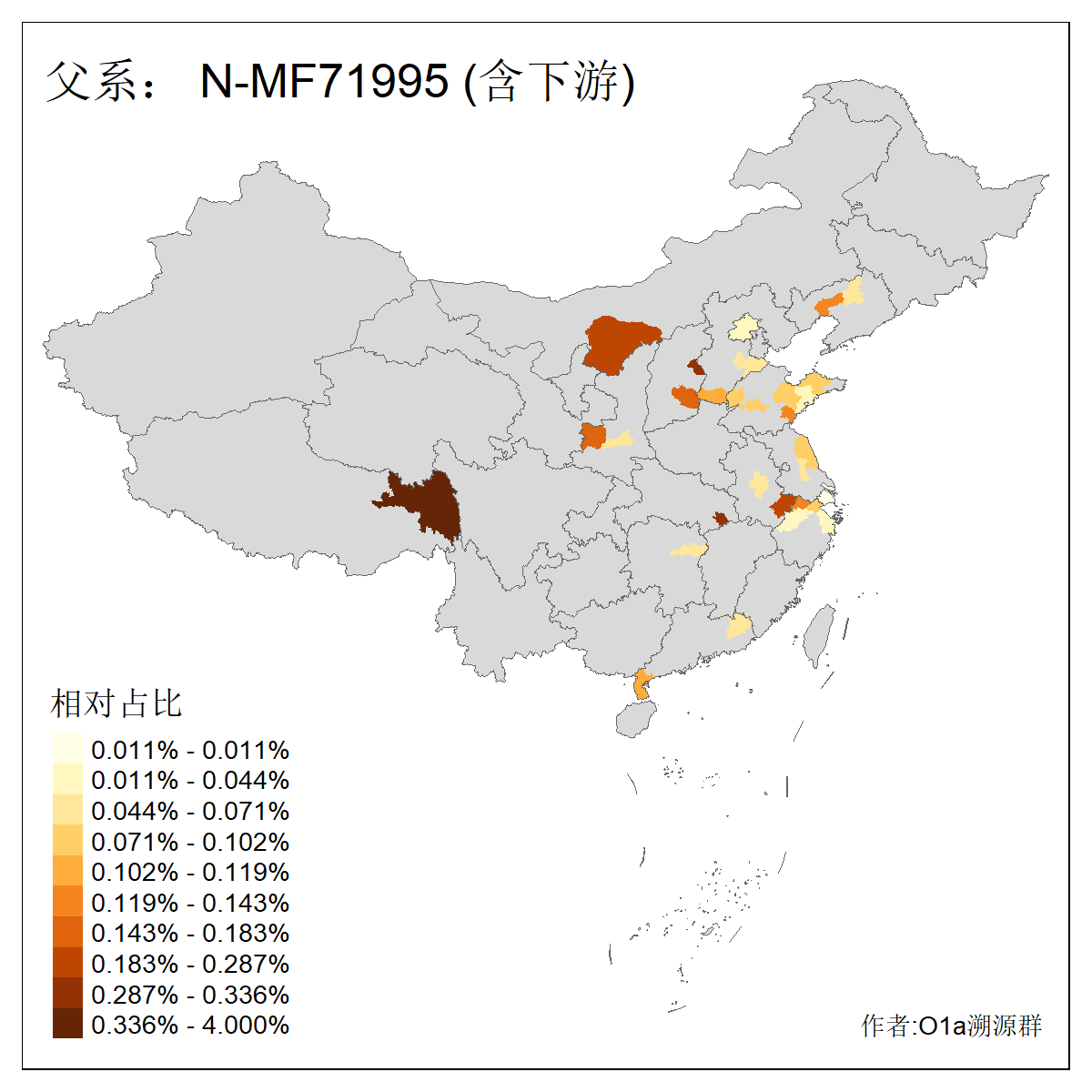 | N-M231_N-CTS833_N-F963_N-F1206_N-F2584_N-M46_N-CTS6128_N-Z1957_N-M2126_N-CTS11808 | 6340 | 0.100% | 201人(含下游) 张:16 刘:13 李:9 杨:8 王:8 白:8 高:7 关:4 赵:4 韩:4 吴:3 许:3 郭:3 陈:3 ![]() | 18人(不含下游) 李:3 党:2 雷:2 何:1 吾:1 张:1 朱:1 杨:1 武:1 王:1 艾:1 薛:1 许:1 阿:1 ![]() |