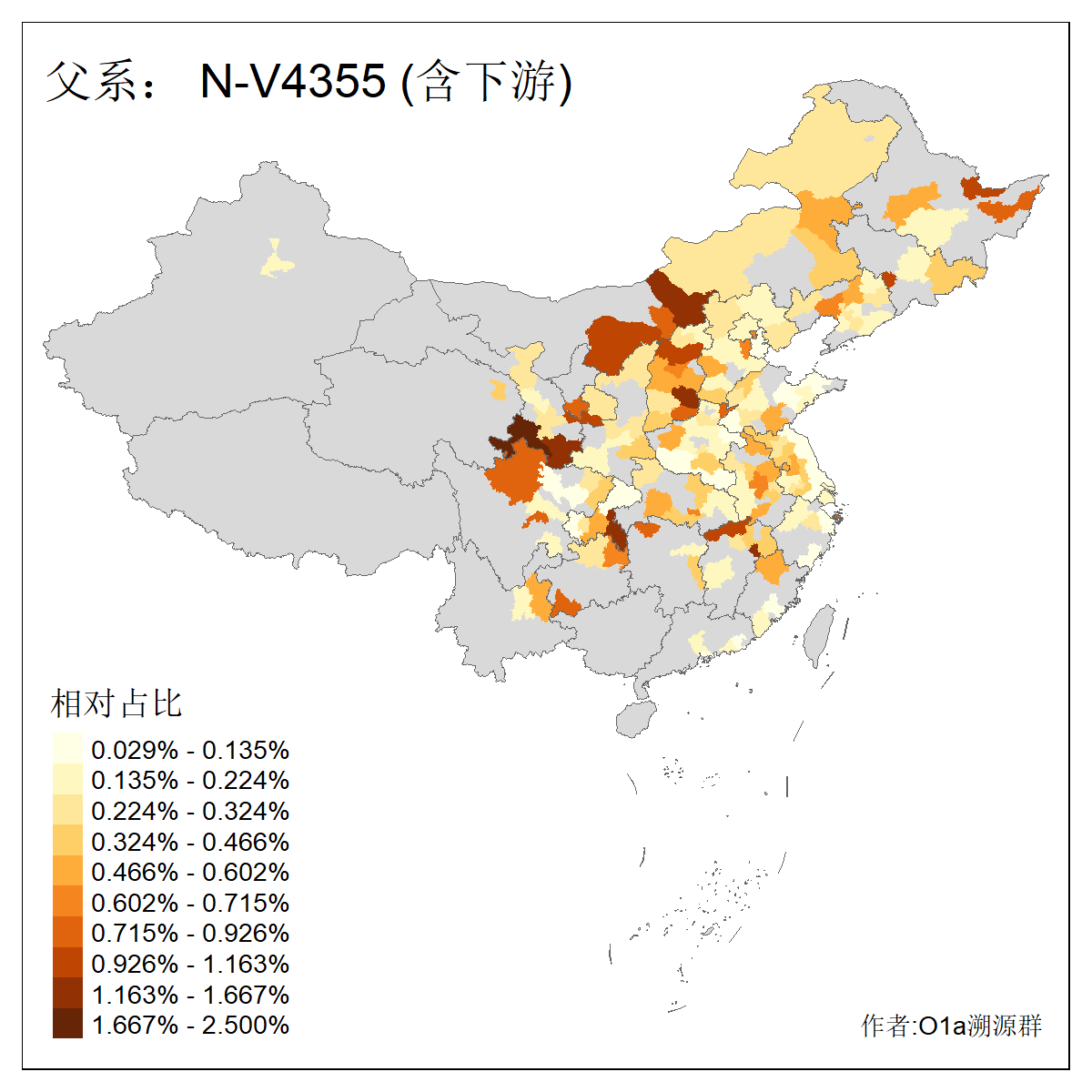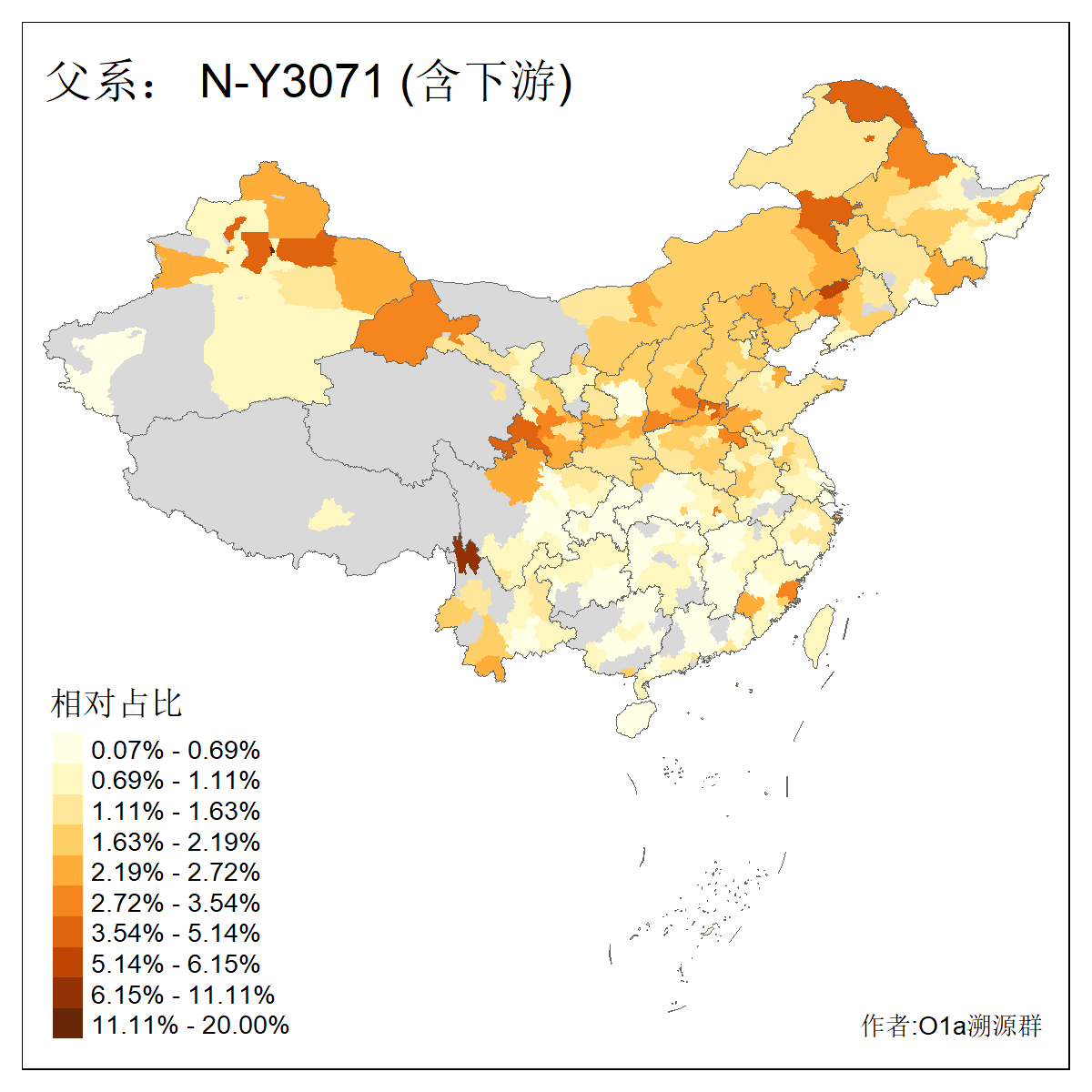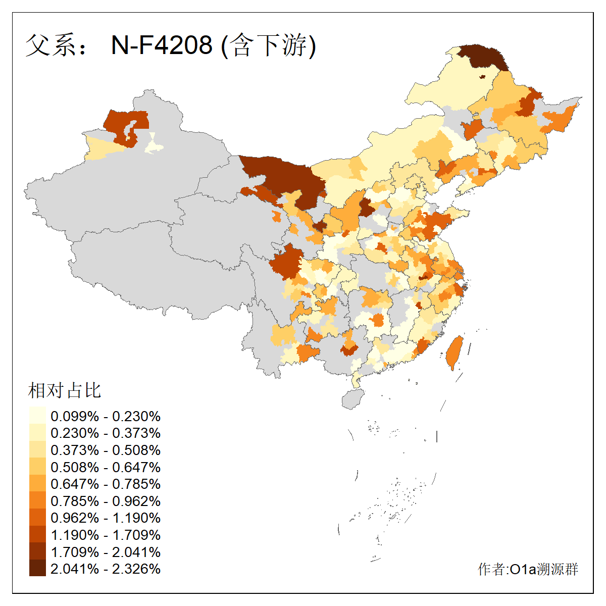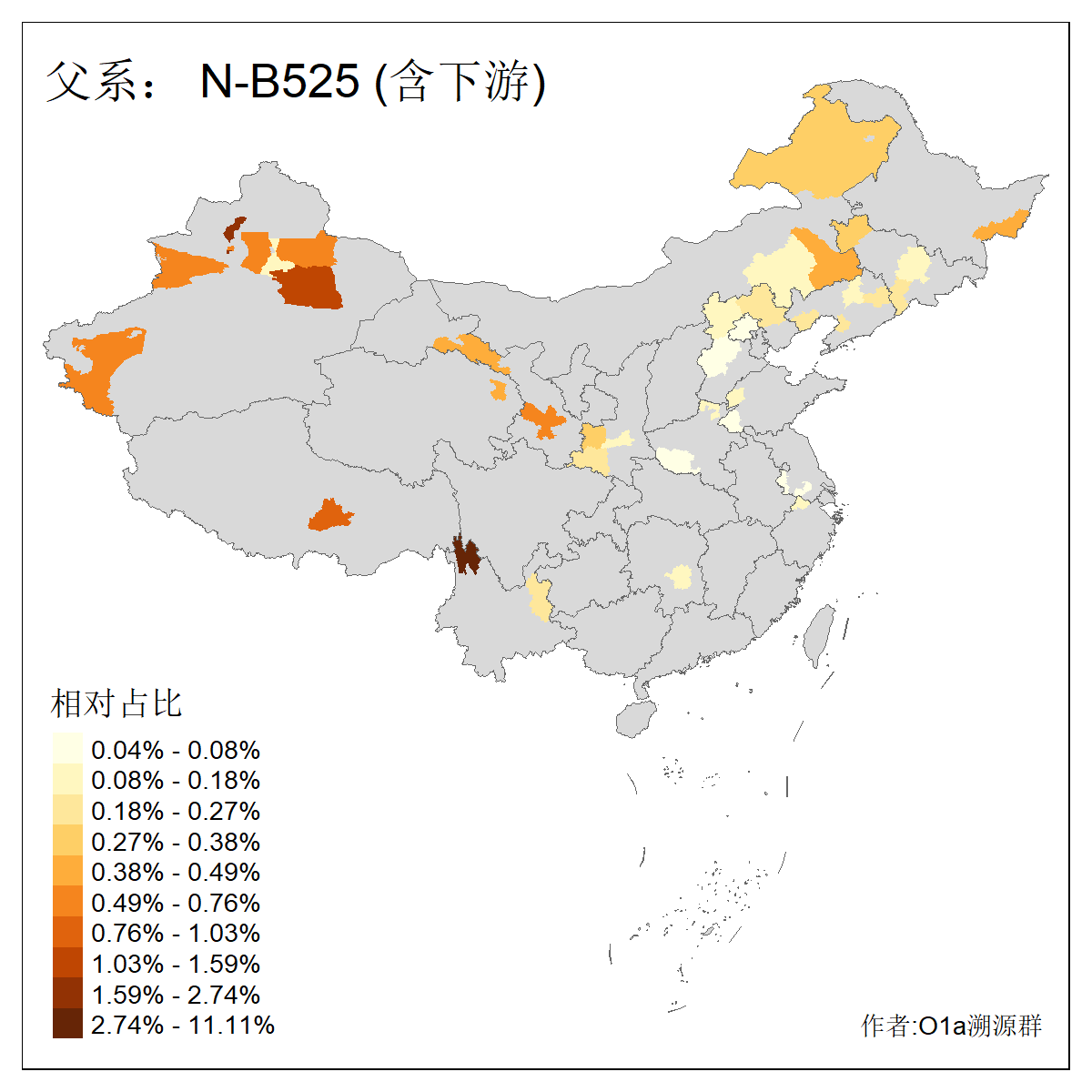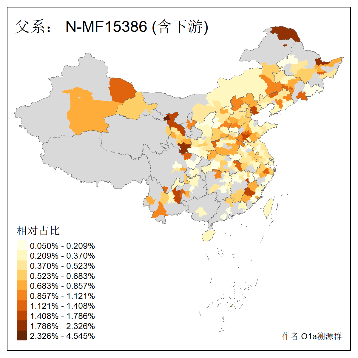 | N-M231_N-CTS833_N-F963_N-F1206_N-F2584_N-M46_N-CTS6128_N-Z1957_N-M2126_N-CTS11808 | 6340 | 0.100% | 201人(含下游) 张:16 刘:13 李:9 杨:8 王:8 白:8 高:7 关:4 赵:4 韩:4 吴:3 许:3 郭:3 陈:3 ![]() | 18人(不含下游) 李:3 党:2 雷:2 何:1 吾:1 张:1 朱:1 杨:1 武:1 王:1 艾:1 薛:1 许:1 阿:1 ![]() |