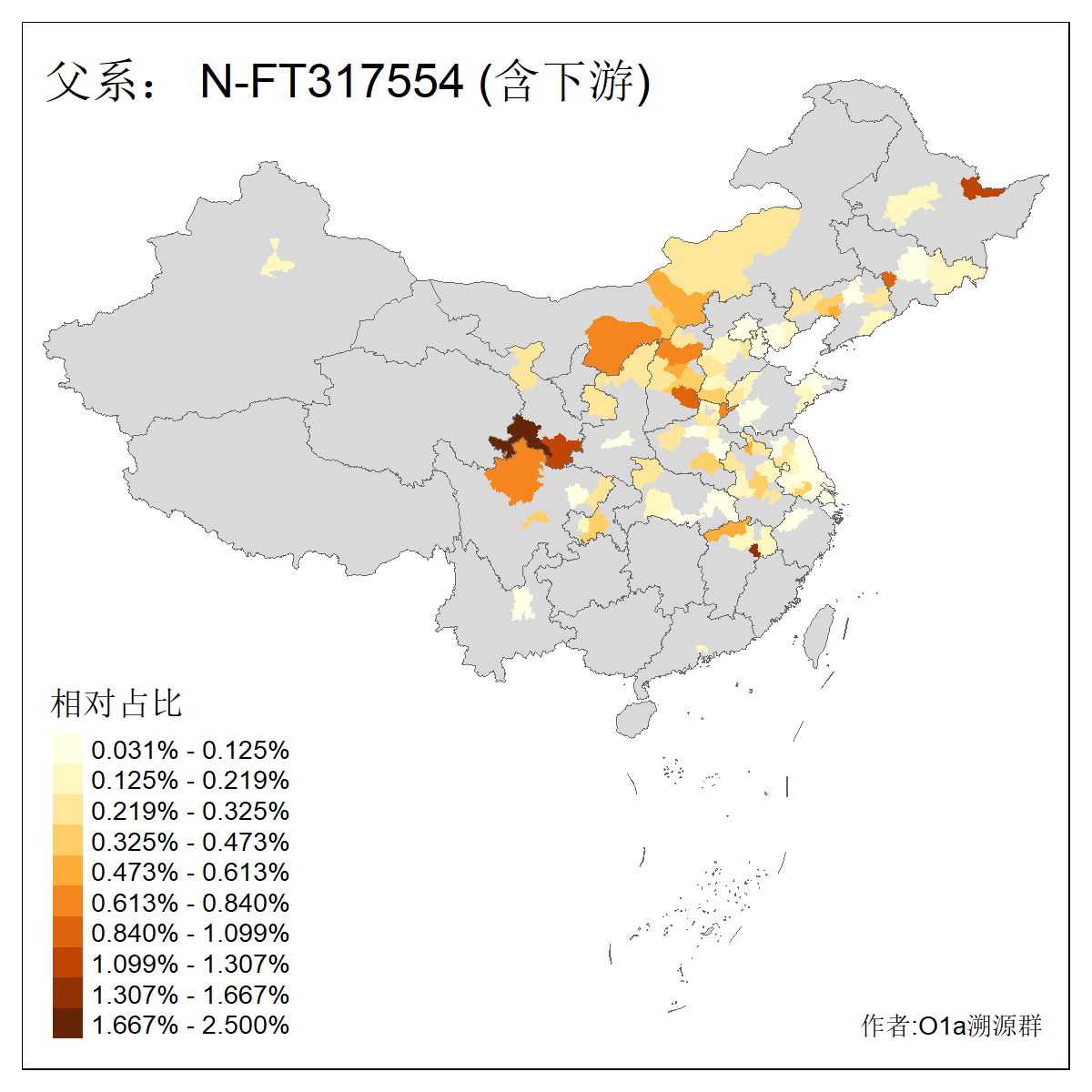 | N-M231_N-CTS833_N-F963_N-F1206_N-F2584_N-M46_N-CTS6128_N-Z1957_N-M2126_N-M2019_N-M2058 | 4170 | 0.205% | 446人(含下游) 王:64 张:53 李:35 刘:27 赵:13 贺:12 许:11 冯:10 杨:10 马:10 宋:9 陈:9 孙:8 郭:8 ![]() | 33人(不含下游) 张:5 赵:5 王:4 刘:3 李:2 董:2 马:2 云:1 包:1 吴:1 梁:1 罗:1 翟:1 艾:1 ![]() |