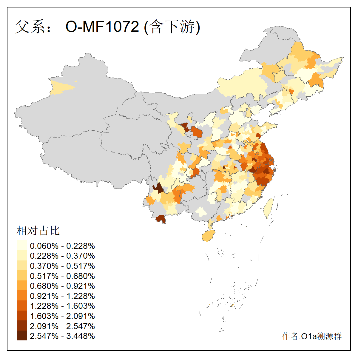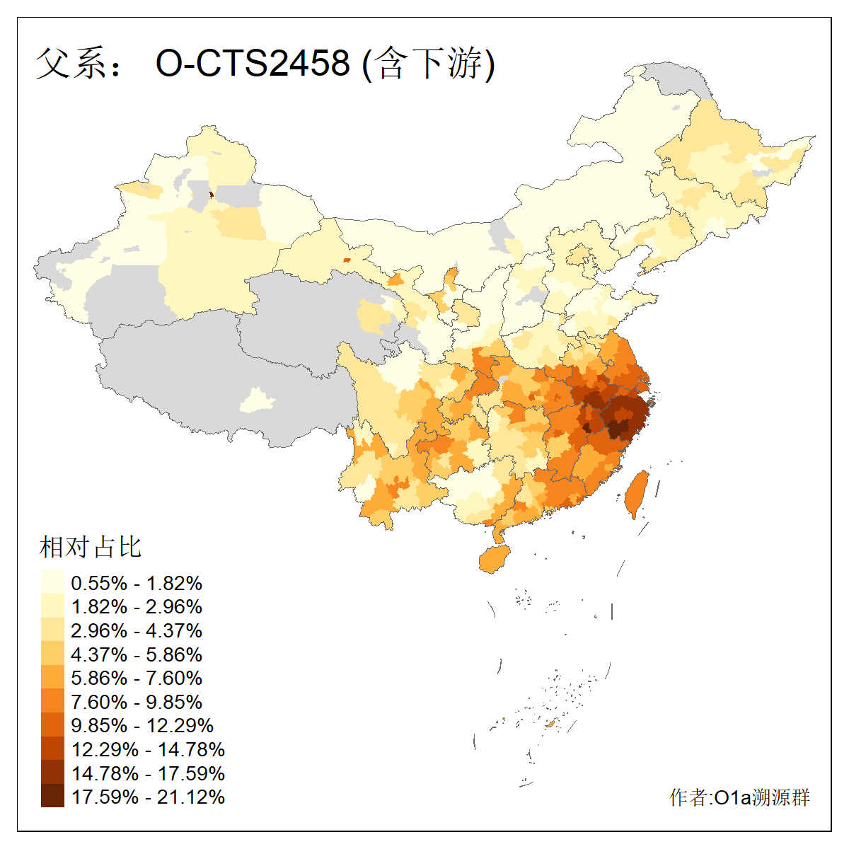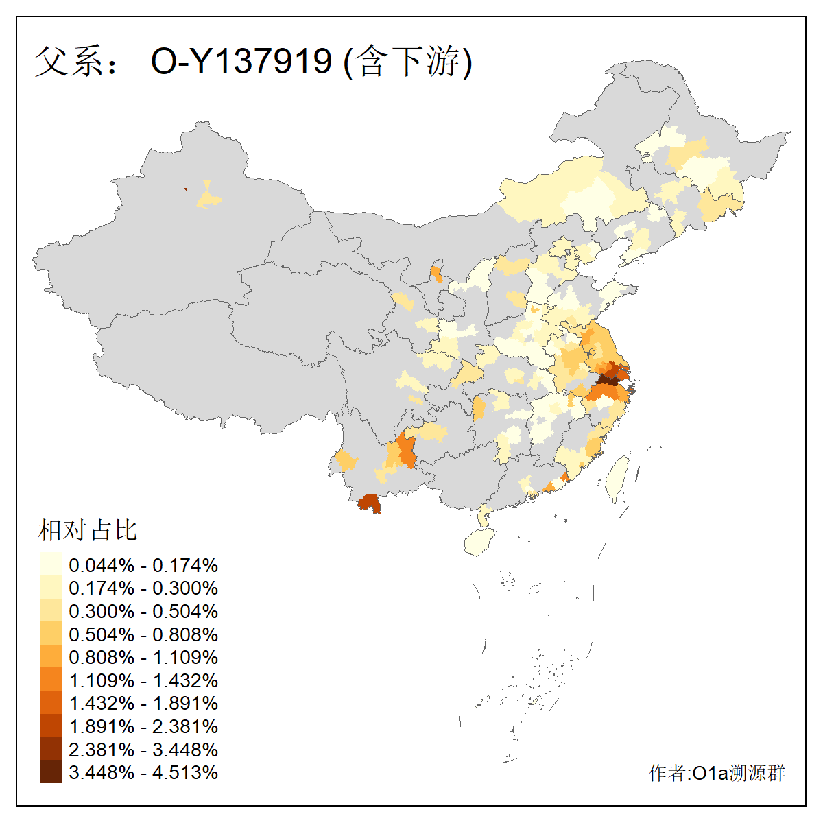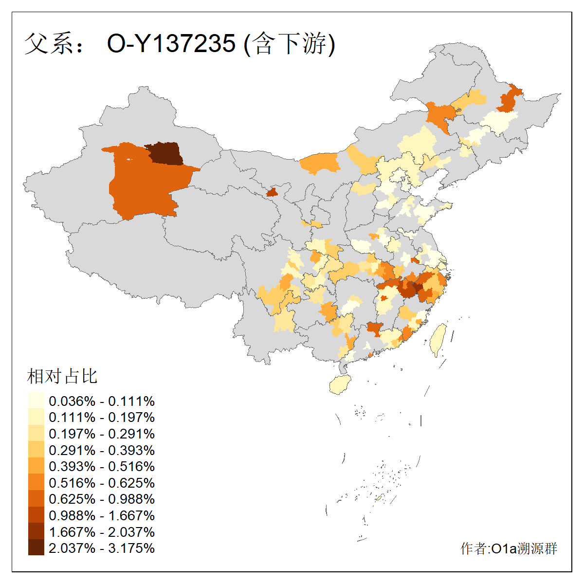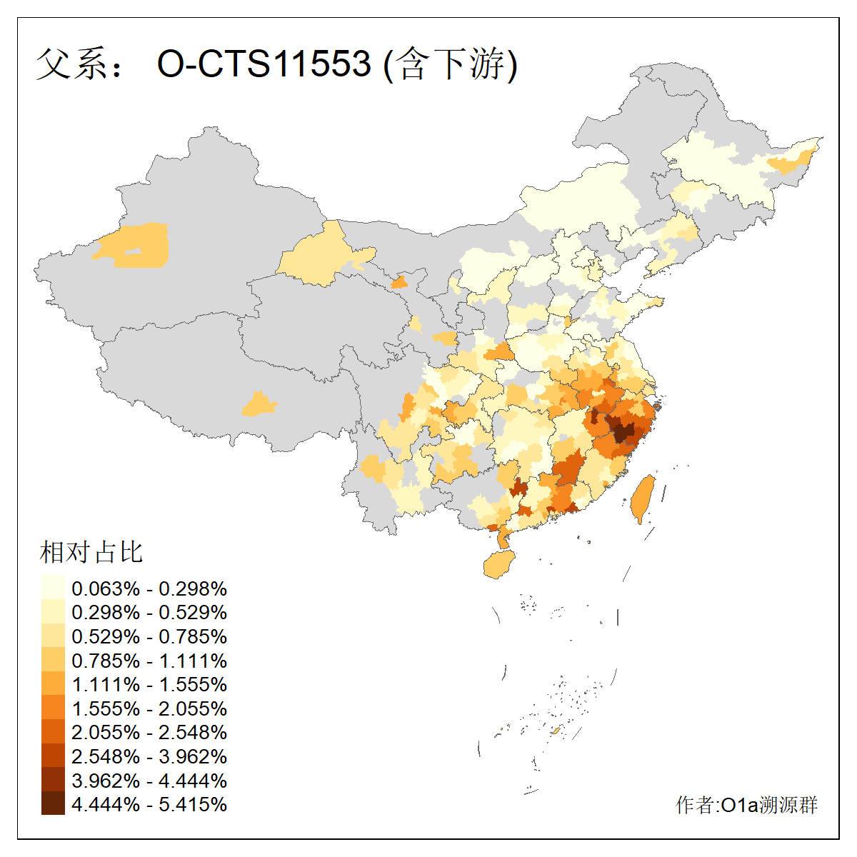 | O-M119_O-F1_O-Z23193_O-M307_O-CTS8423 | 10340 | 2.754% | 6436人(含下游) 李:404 王:353 陈:338 张:332 刘:236 徐:236 杨:184 罗:182 黄:165 何:150 周:142 吴:139 顾:130 朱:110 ![]() | 211人(不含下游) 王:15 陈:13 张:11 孙:8 杨:8 徐:7 李:7 顾:7 刘:6 吴:5 周:5 邵:5 何:4 高:4 ![]() |