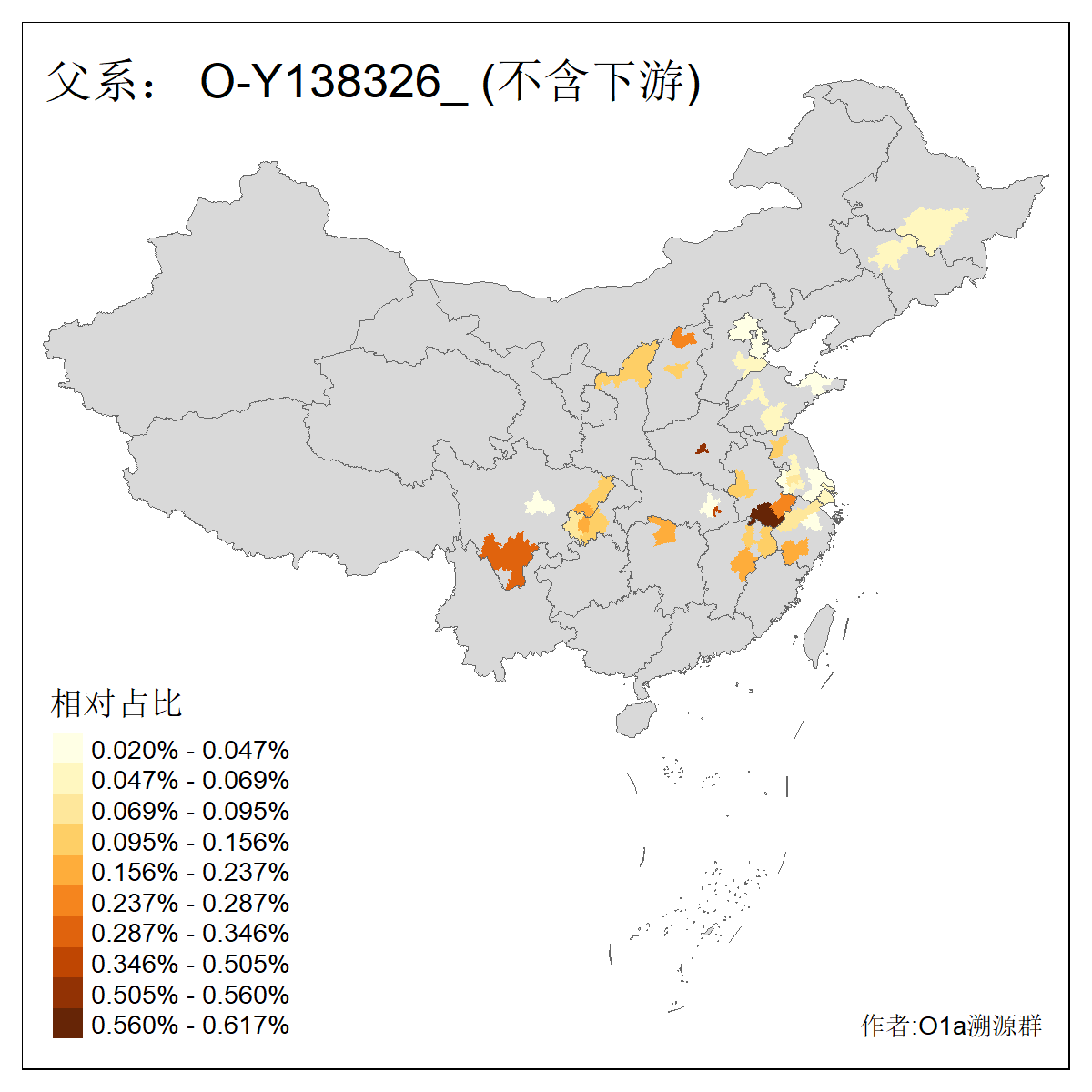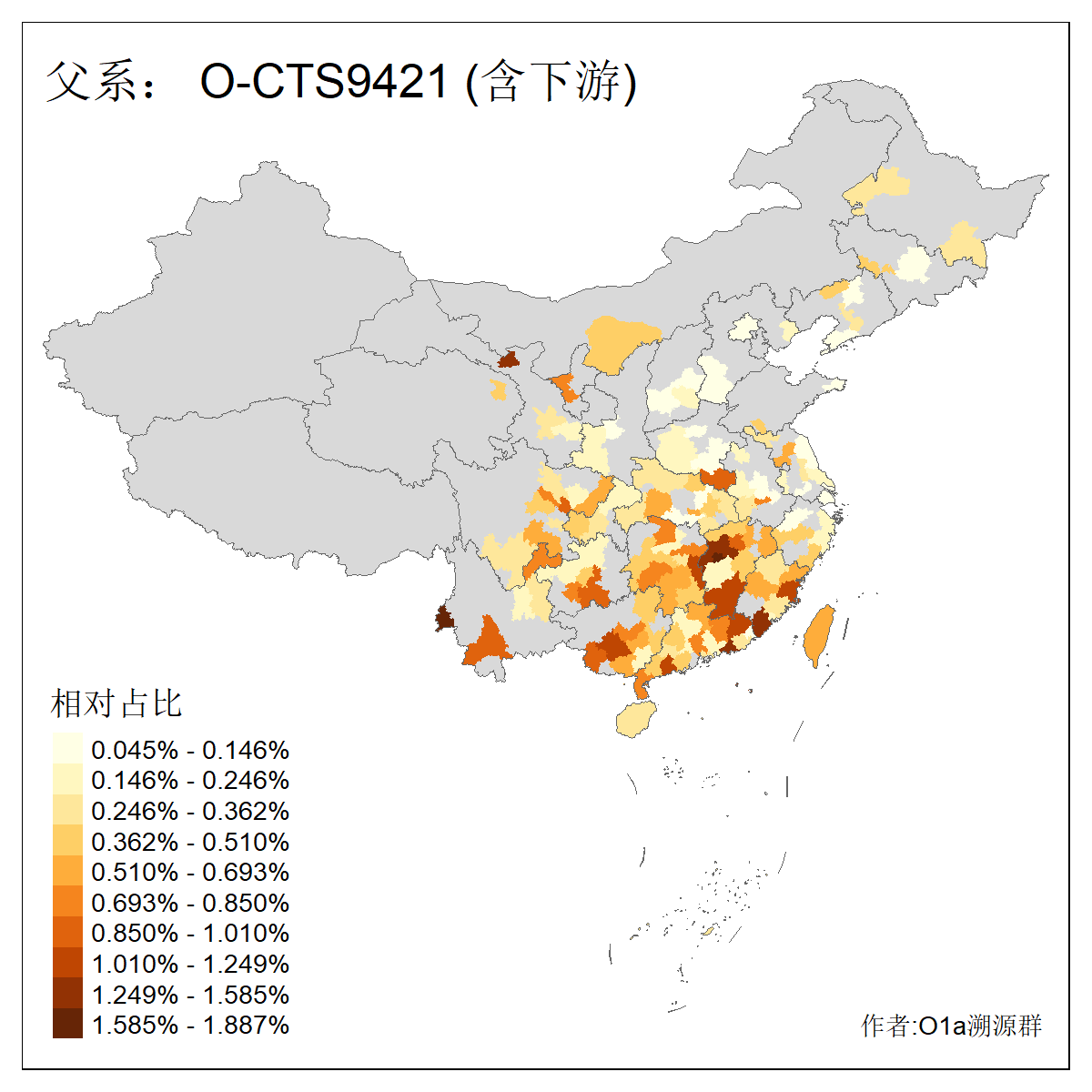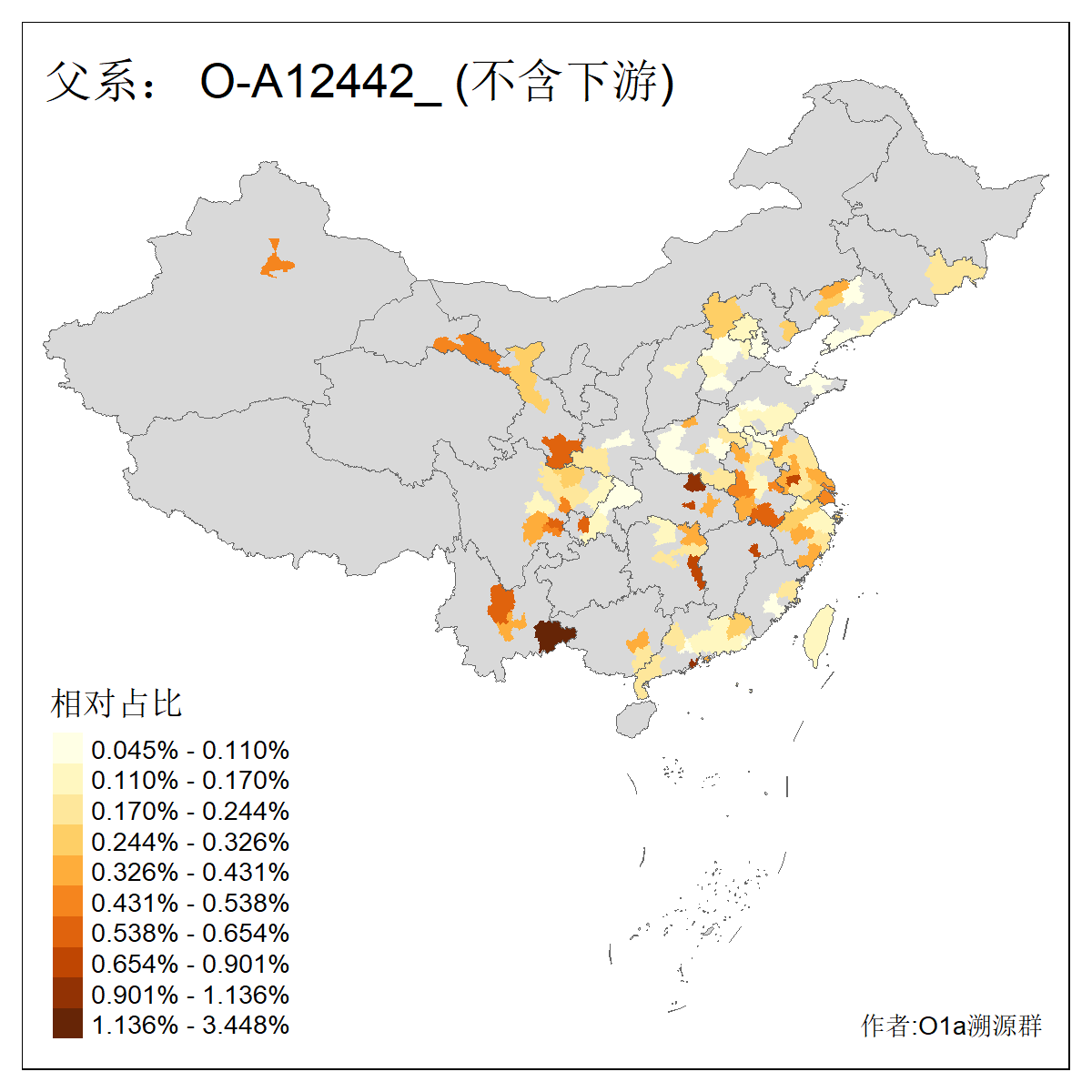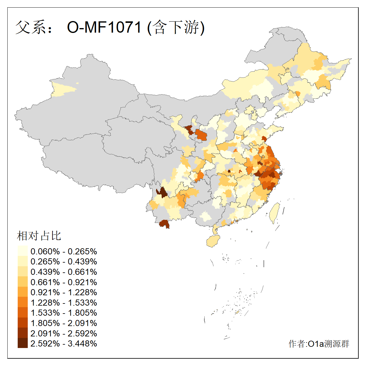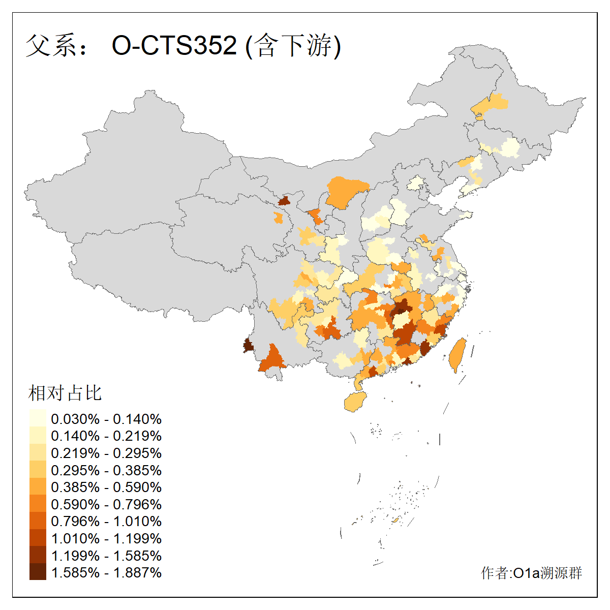 | O-M119_O-F1_O-Z23193_O-M307_O-CTS8423 | 10340 | 2.754% | 6436人(含下游) 李:404 王:353 陈:338 张:332 刘:236 徐:236 杨:184 罗:182 黄:165 何:150 周:142 吴:139 顾:130 朱:110 ![]() | 211人(不含下游) 王:15 陈:13 张:11 孙:8 杨:8 徐:7 李:7 顾:7 刘:6 吴:5 周:5 邵:5 何:4 高:4 ![]() |