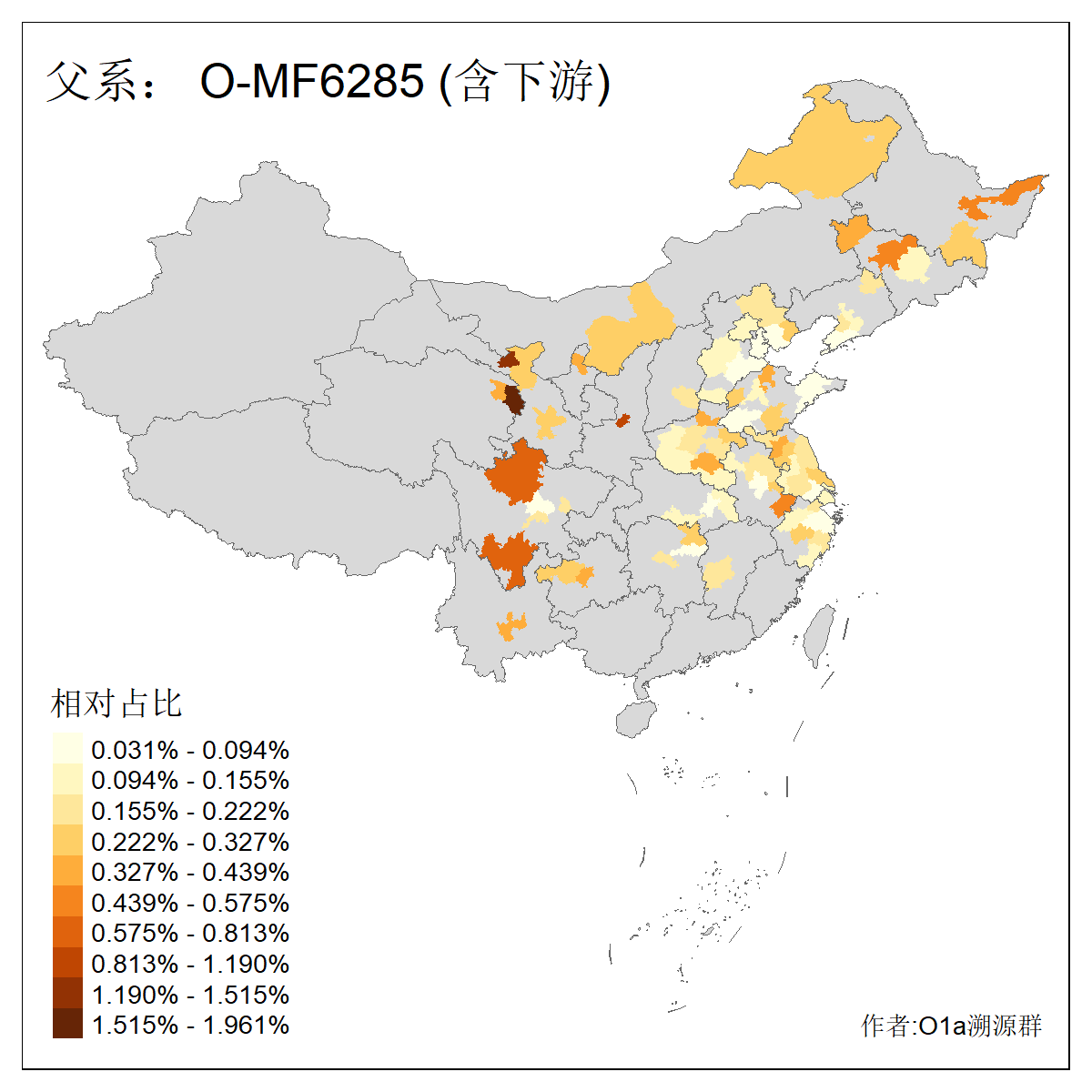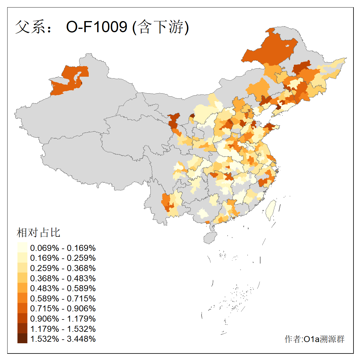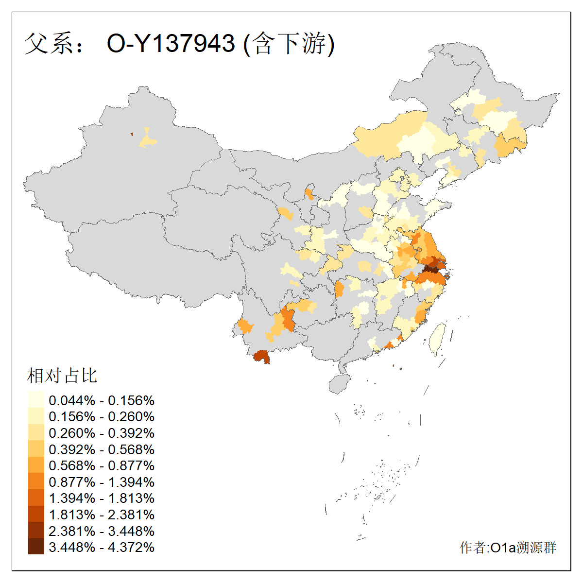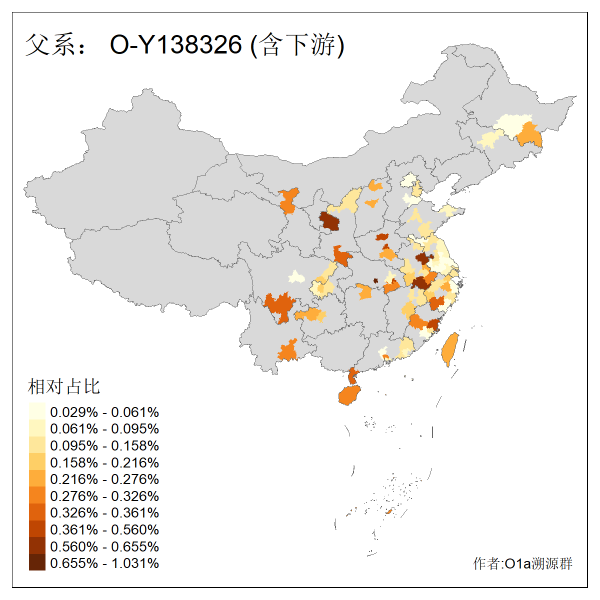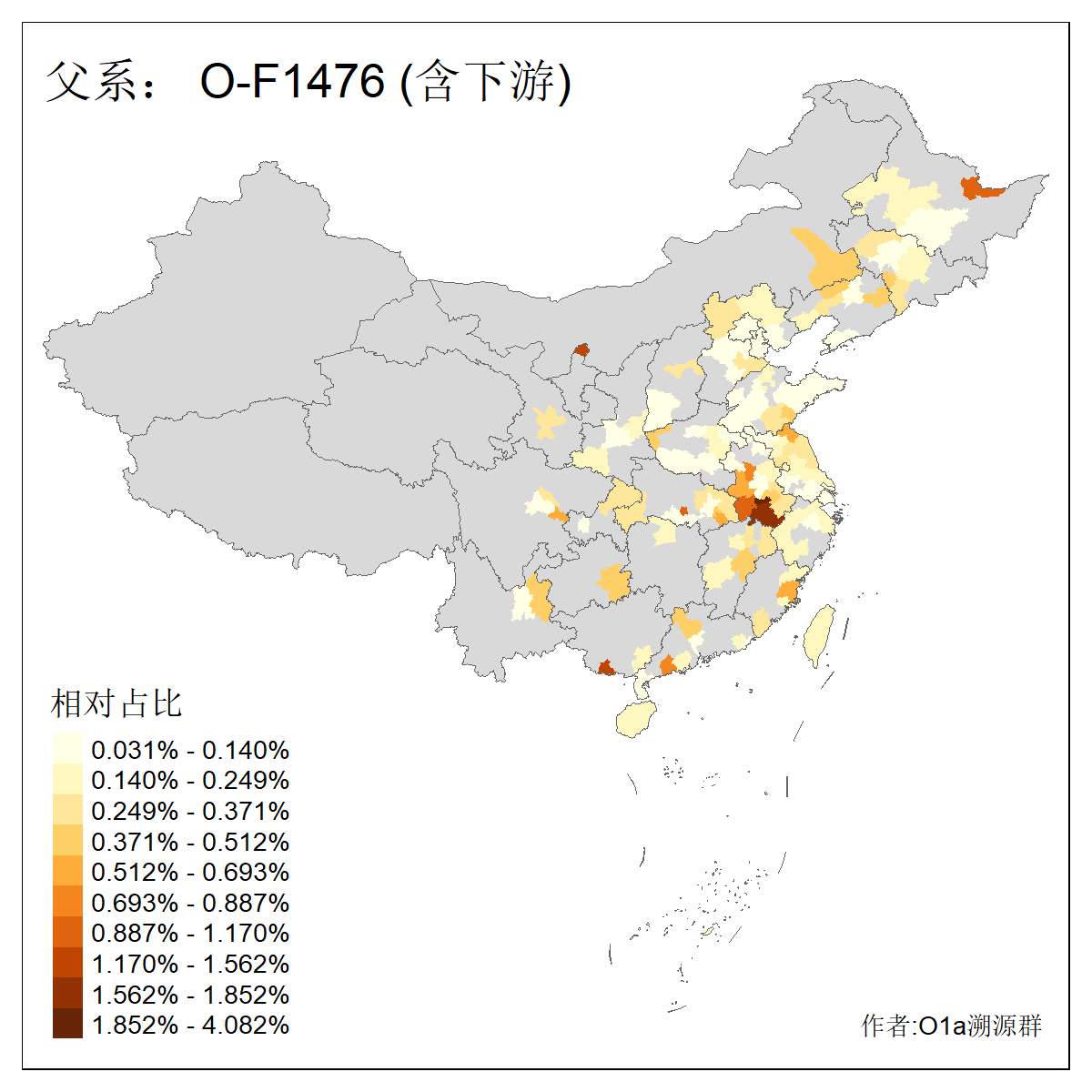 | O-M119_O-F1_O-F1036_O-F1009 | 5330 | 0.286% | 765人(含下游) 张:62 王:57 李:53 徐:30 刘:27 孙:22 杨:22 宋:21 朱:18 陈:18 高:16 吕:15 周:13 秦:11 ![]() | 2人(不含下游) 李:1 石:1 ![]() |