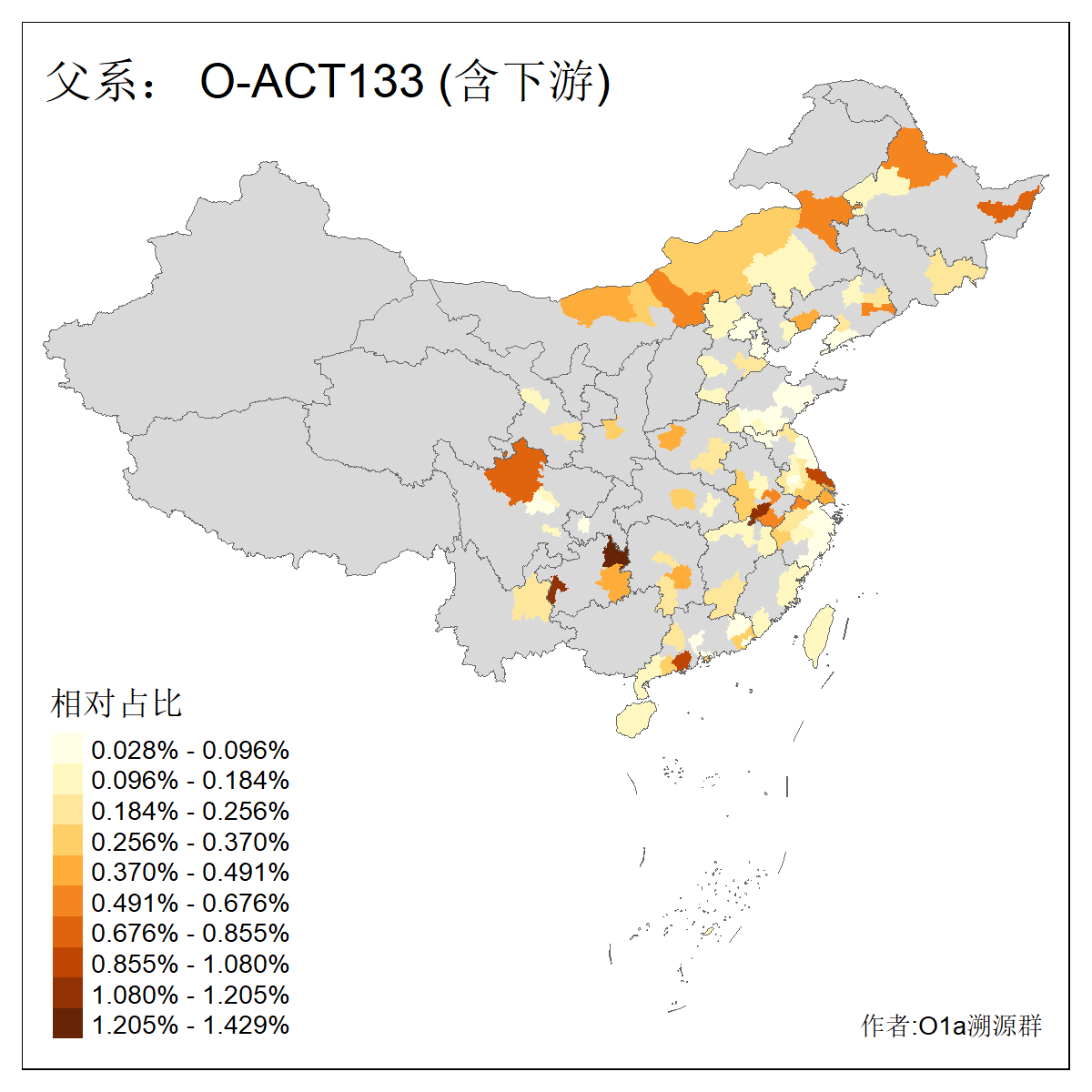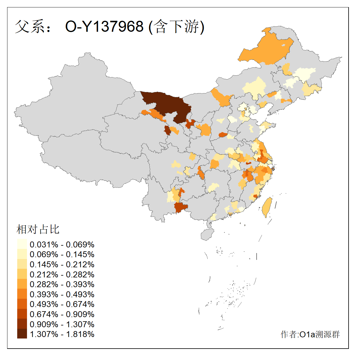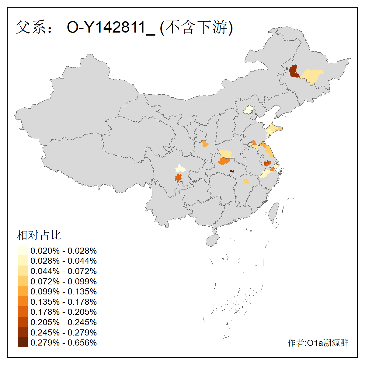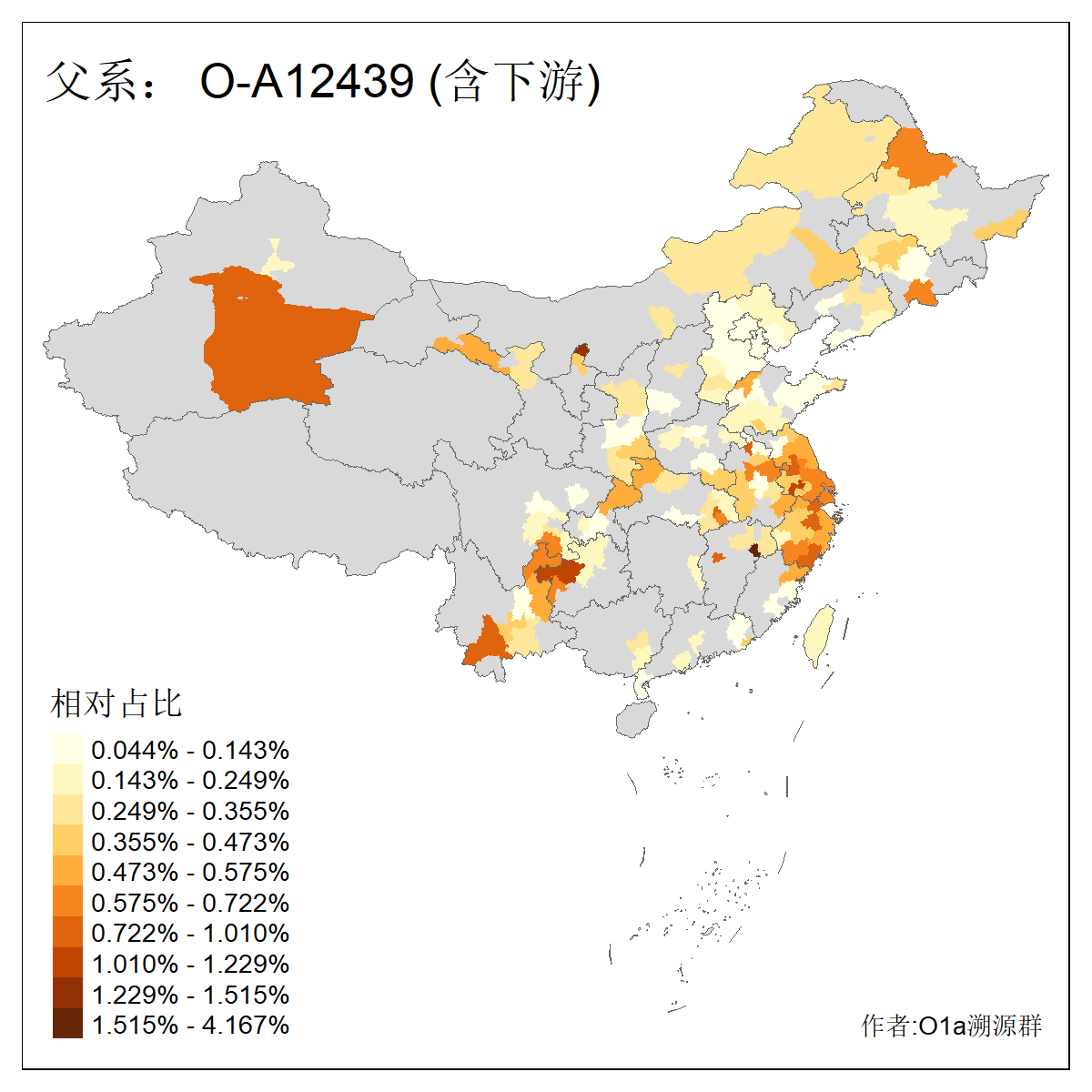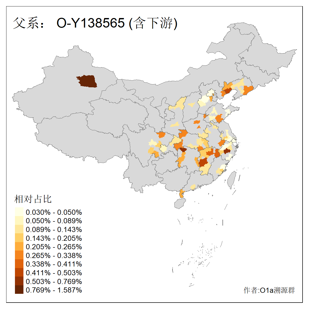 | O-M119_O-F1_O-F1036_O-F1009 | 5330 | 0.286% | 765人(含下游) 张:62 王:57 李:53 徐:30 刘:27 孙:22 杨:22 宋:21 朱:18 陈:18 高:16 吕:15 周:13 秦:11 ![]() | 2人(不含下游) 李:1 石:1 ![]() |