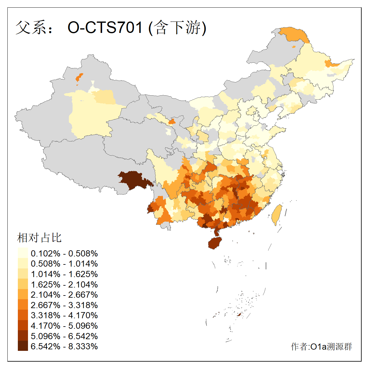 | O-M119_O-F1_O-Z23193_O-M307_O-CTS8423_O-CTS52_O-CTS701 | 6330 | 1.546% | 3082人(含下游) 李:228 陈:180 罗:167 张:157 王:151 刘:127 何:103 黄:98 杨:89 周:59 吴:58 林:55 谢:46 廖:43 ![]() | 137人(不含下游) 张:16 李:14 王:11 于:10 陈:10 刘:5 周:4 赵:4 彭:3 徐:3 杨:3 乔:2 夏:2 廖:2 ![]() |