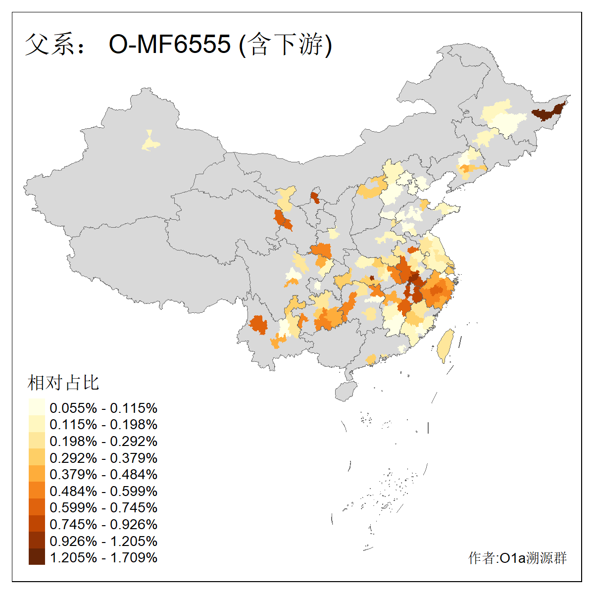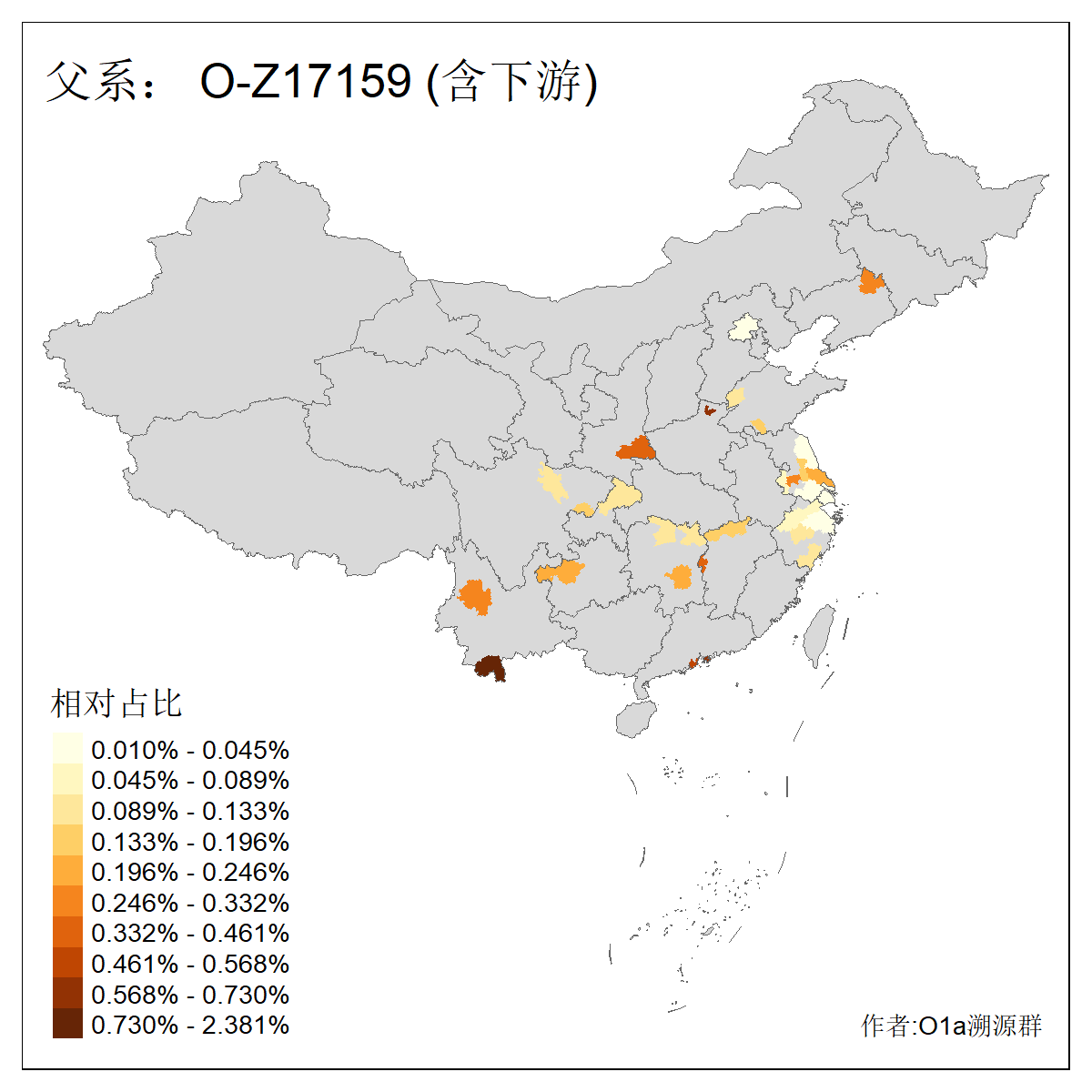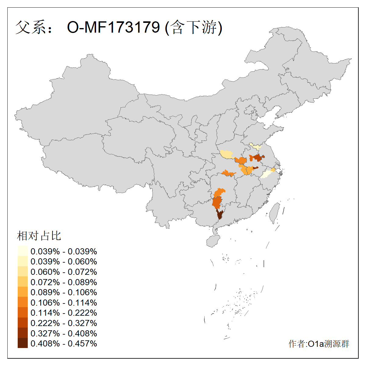 | O-M119_O-F1_O-Z23193_O-M307_O-F446_O-Z23448_O-F140_O-K611_O-F206_O-F78_O-F81_O-MF1075_O-MF1081_O-MF36656 | 1570 | 0.026% | 9人(含下游) 杨:2 刘:1 李:1 缪:1 袁:1 贡:1 赵:1 陶:1 ![]() | 4人(不含下游) 刘:1 李:1 杨:1 缪:1 ![]() |