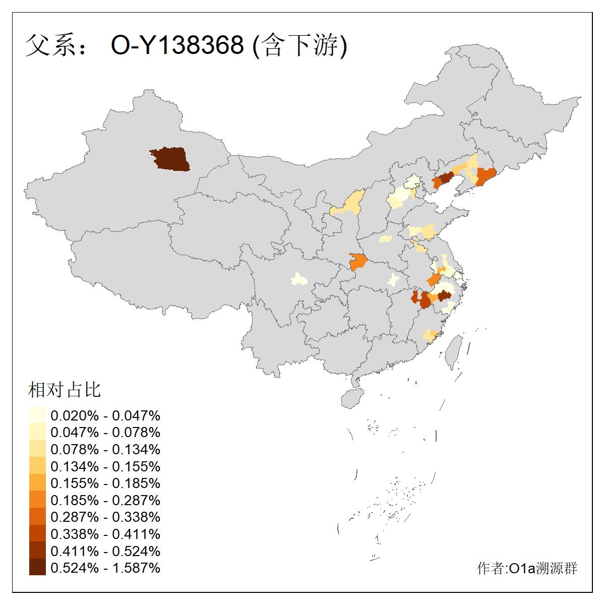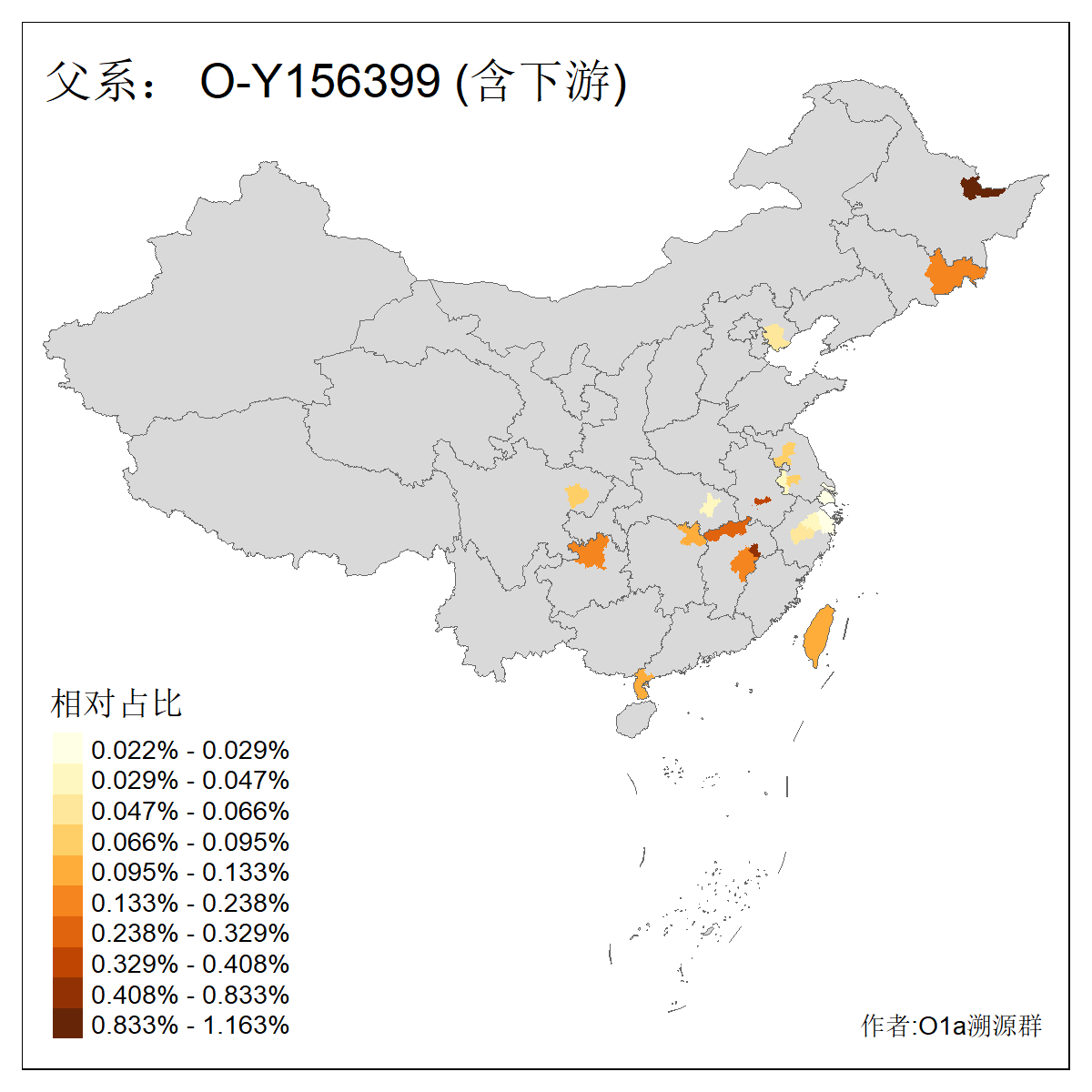 | O-M119_O-F1_O-Z23193_O-CTS5726_O-SK1590_O-F1476_O-F2818 | 6810 | 0.064% | 153人(含下游) 王:17 刘:12 张:10 杨:10 陈:10 宋:8 崔:8 周:6 赵:6 姚:4 李:4 朱:3 许:3 高:3 ![]() | 11人(不含下游) 崔:3 张:2 殷:2 姚:1 杨:1 赵:1 马:1 ![]() |
