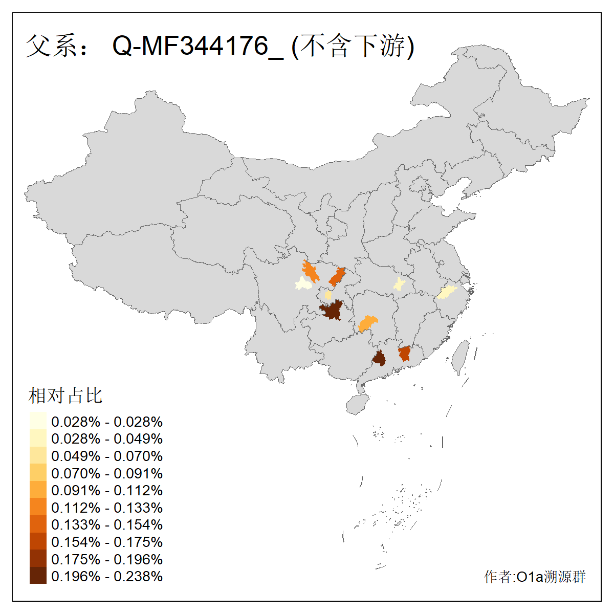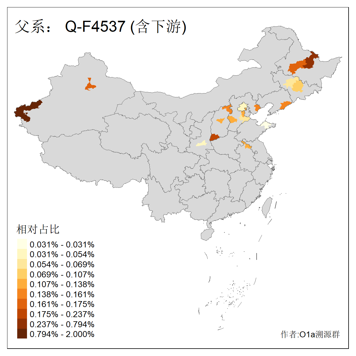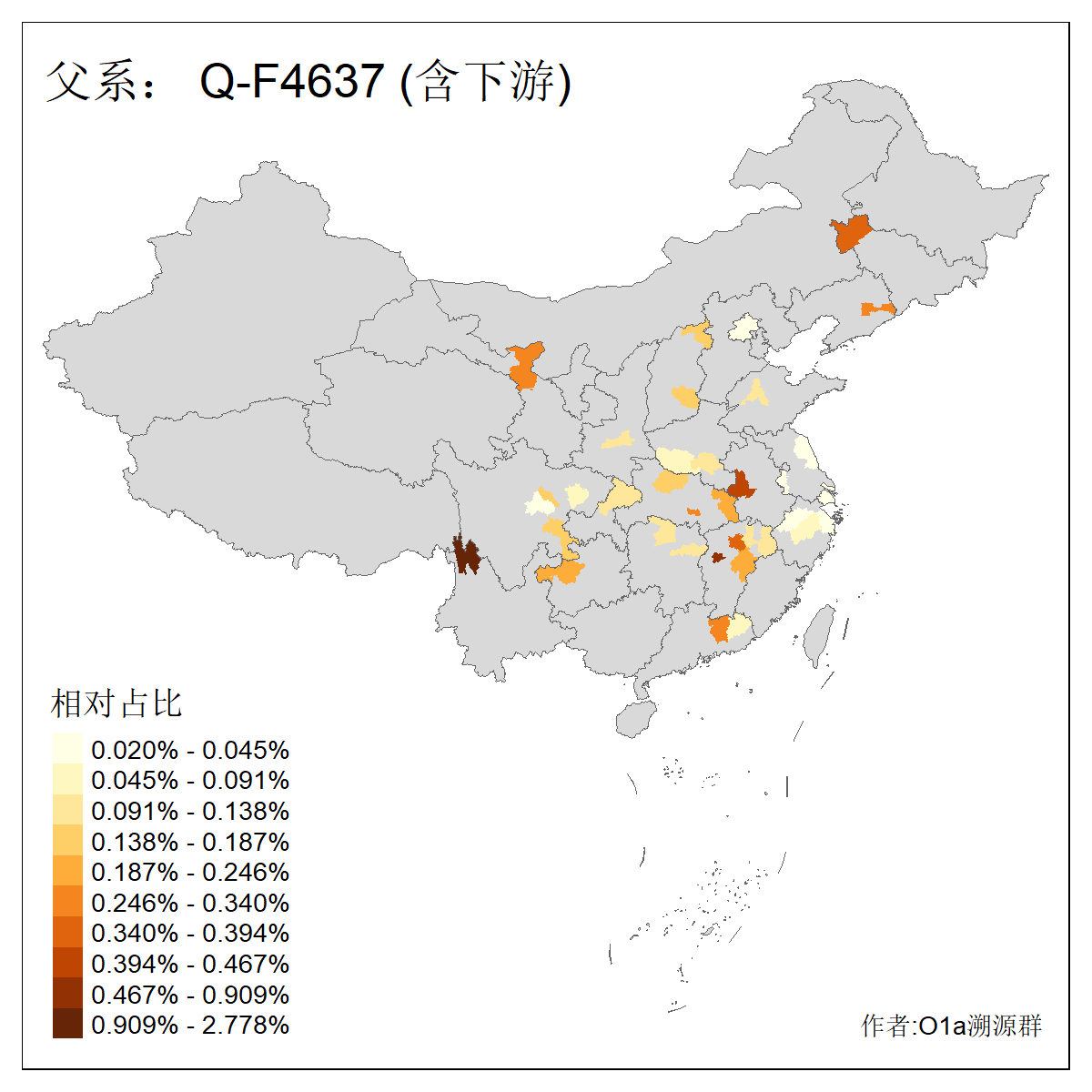 | Q_Q-L472_Q-M346_Q-Y2659_Q-F4674_Q-F4774 | 15960 | 0.023% | 42人(含下游) 张:8 洪:6 王:4 陈:3 亚:2 杨:2 艾:2 何:1 凯:1 刘:1 包:1 奴:1 木:1 李:1 ![]() | 16人(不含下游) 洪:6 张:2 凯:1 包:1 奴:1 秦:1 艾:1 连:1 陈:1 ![]() |