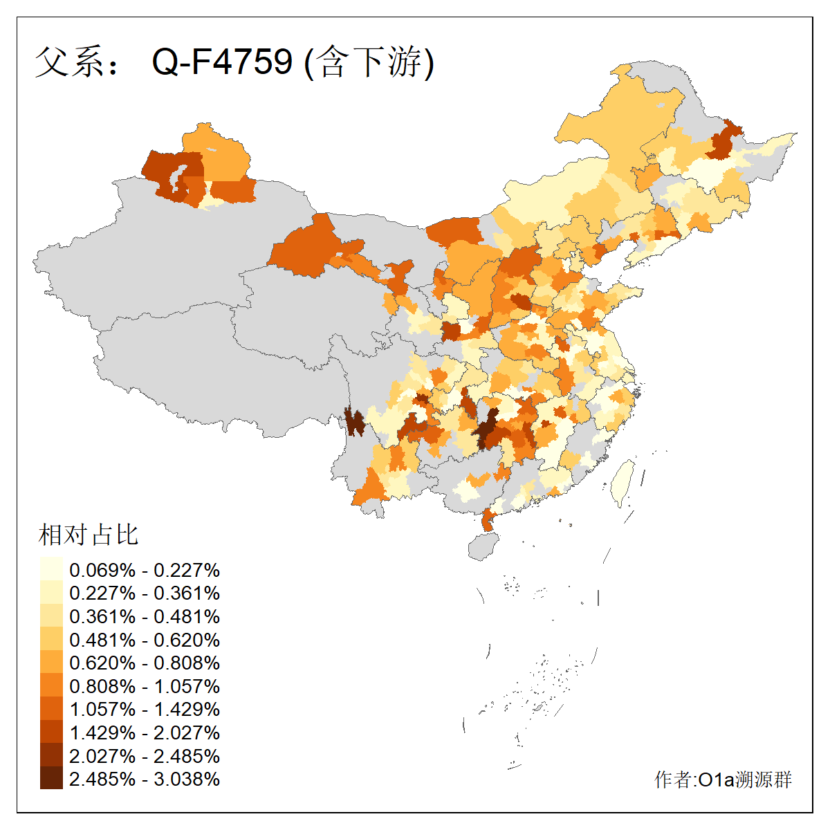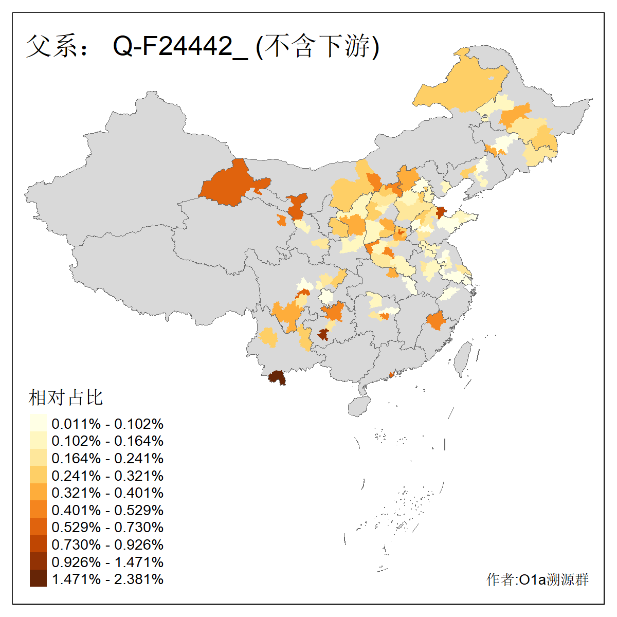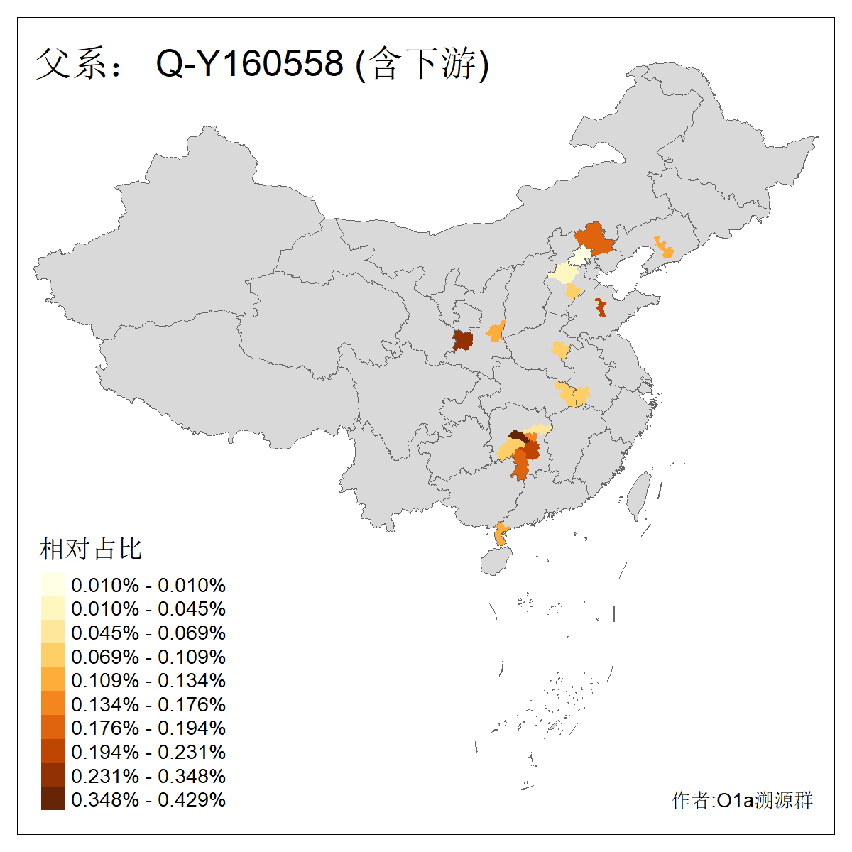 | Q_Q-L472_Q-M346_Q-Y2659_Q-F4674_Q-F4774 | 15960 | 0.023% | 42人(含下游) 张:8 洪:6 王:4 陈:3 亚:2 杨:2 艾:2 何:1 凯:1 刘:1 包:1 奴:1 木:1 李:1 ![]() | 16人(不含下游) 洪:6 张:2 凯:1 包:1 奴:1 秦:1 艾:1 连:1 陈:1 ![]() |