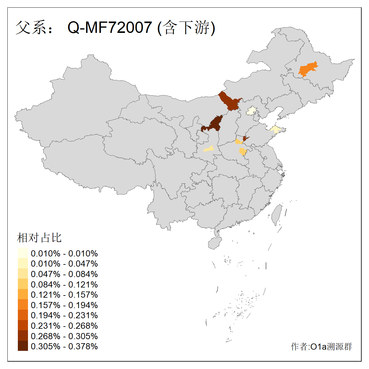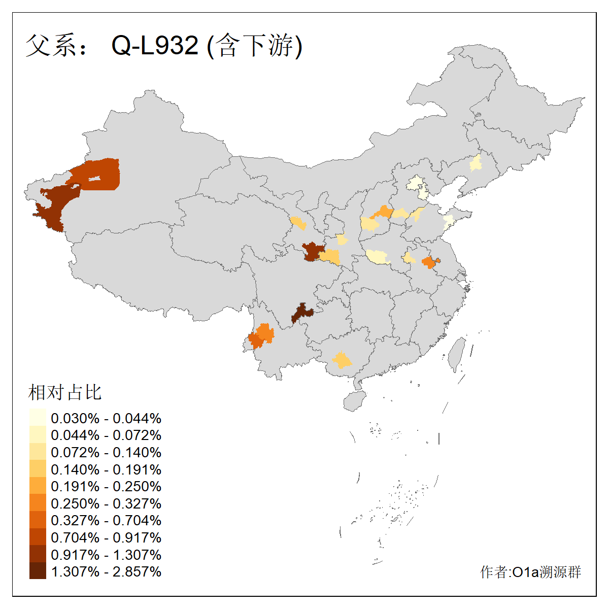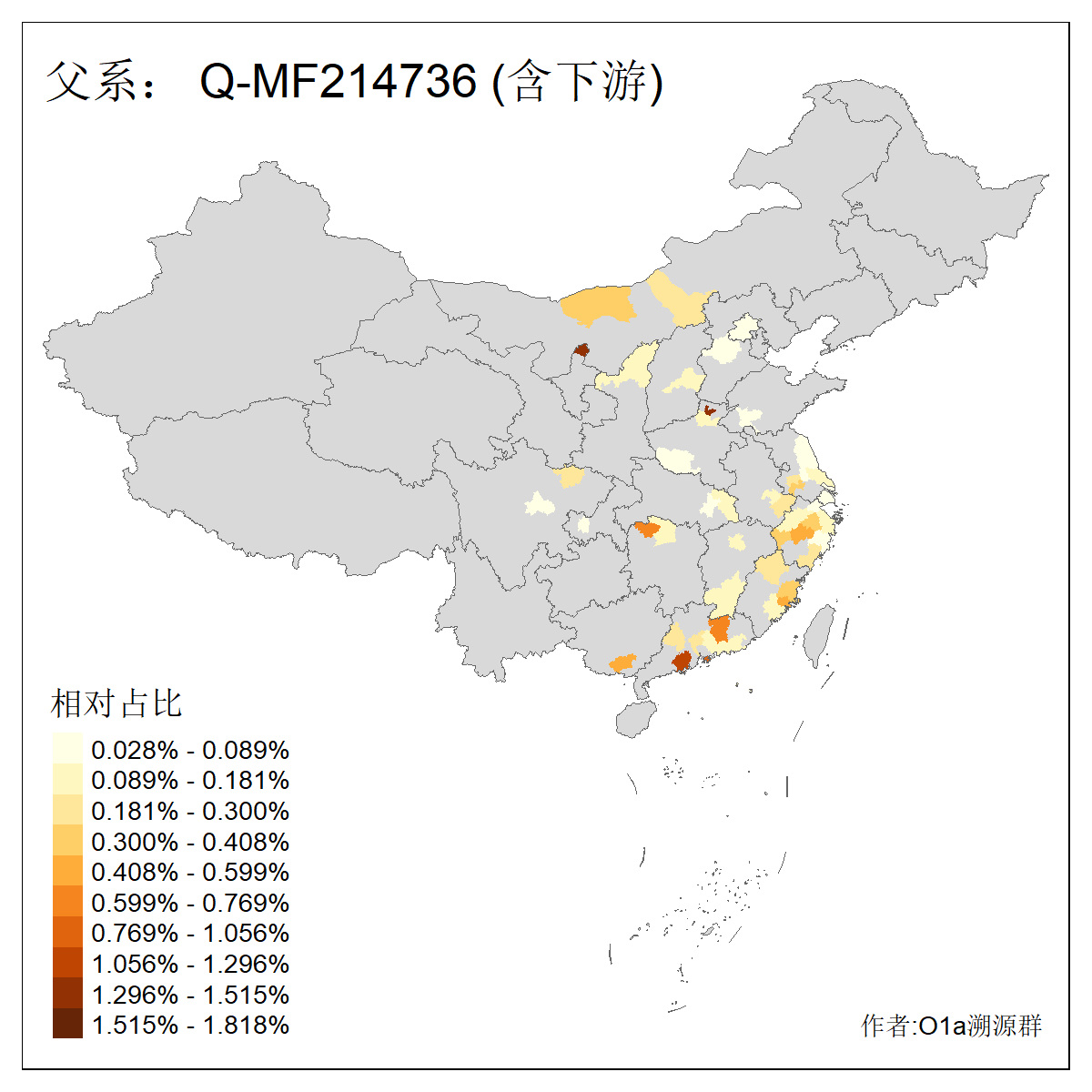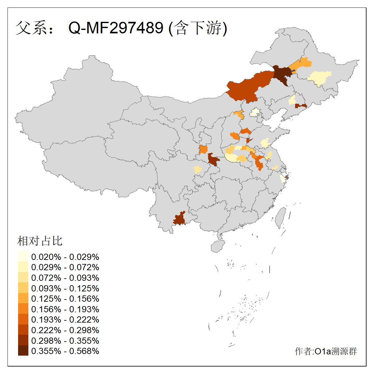 | Q_Q-L275_Q-F1213_Q-Y2076_Q-M378 | 8280 | 0.032% | 57人(含下游) 李:9 马:5 杨:4 高:3 余:2 康:2 张:2 艾:2 金:2 阿:2 陈:2 任:1 傅:1 刘:1 ![]() | 1人(不含下游) 阿:1 ![]() |