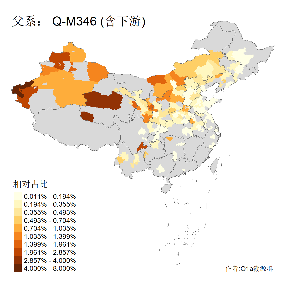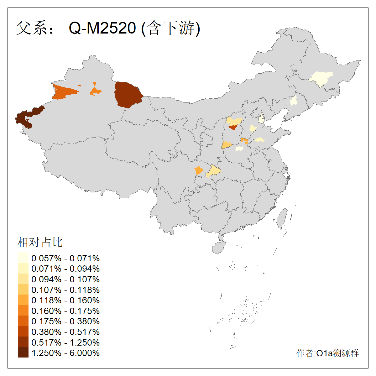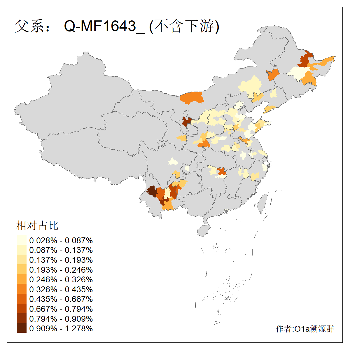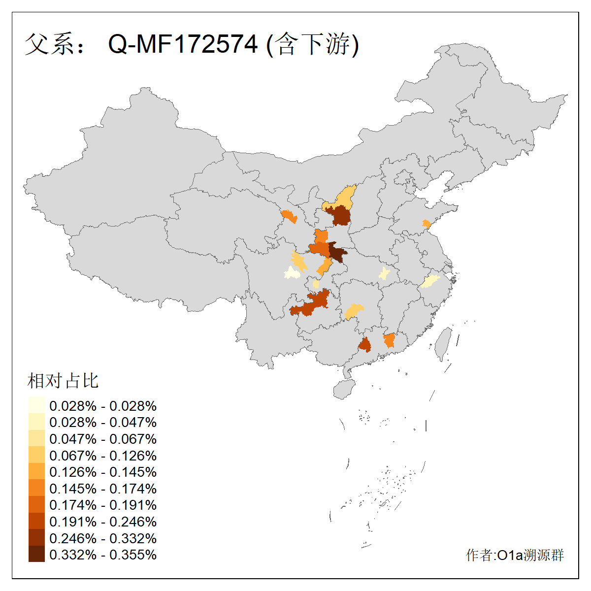 | Q_Q-L275_Q-F1213_Q-Y2076_Q-M378 | 8280 | 0.032% | 57人(含下游) 李:9 马:5 杨:4 高:3 余:2 康:2 张:2 艾:2 金:2 阿:2 陈:2 任:1 傅:1 刘:1 ![]() | 1人(不含下游) 阿:1 ![]() |